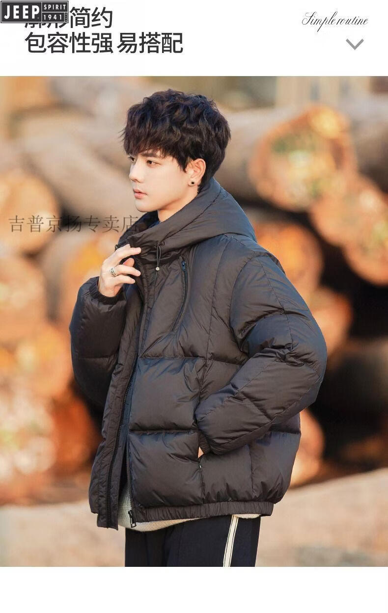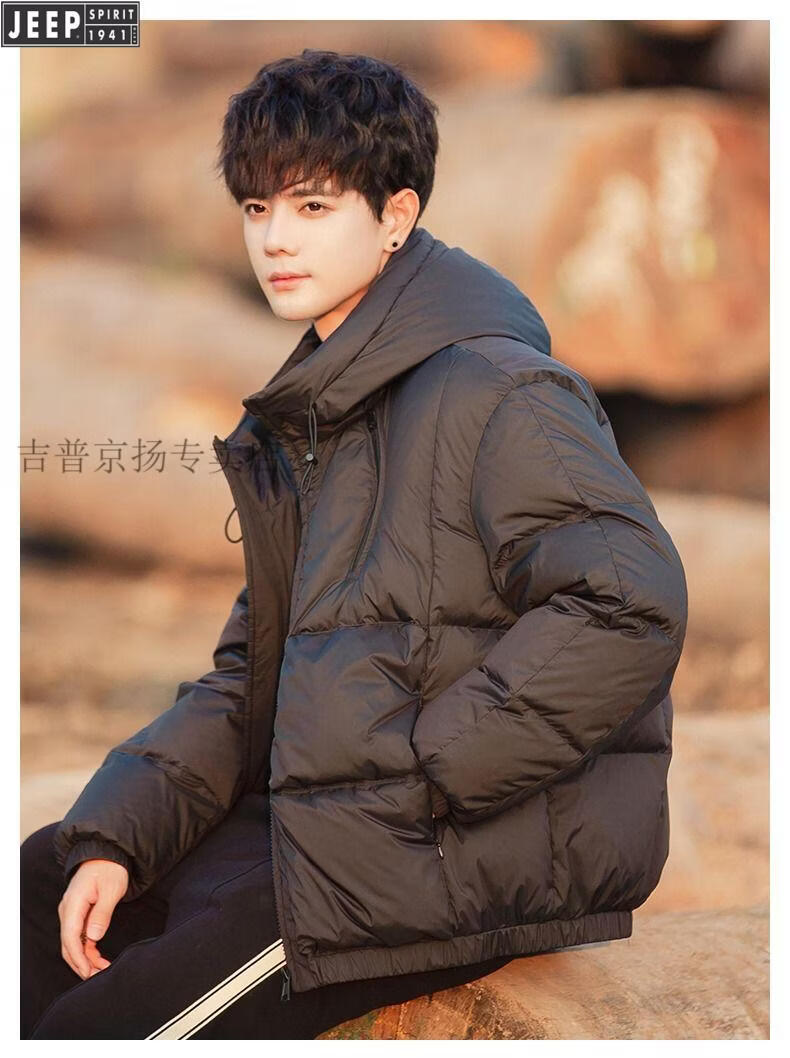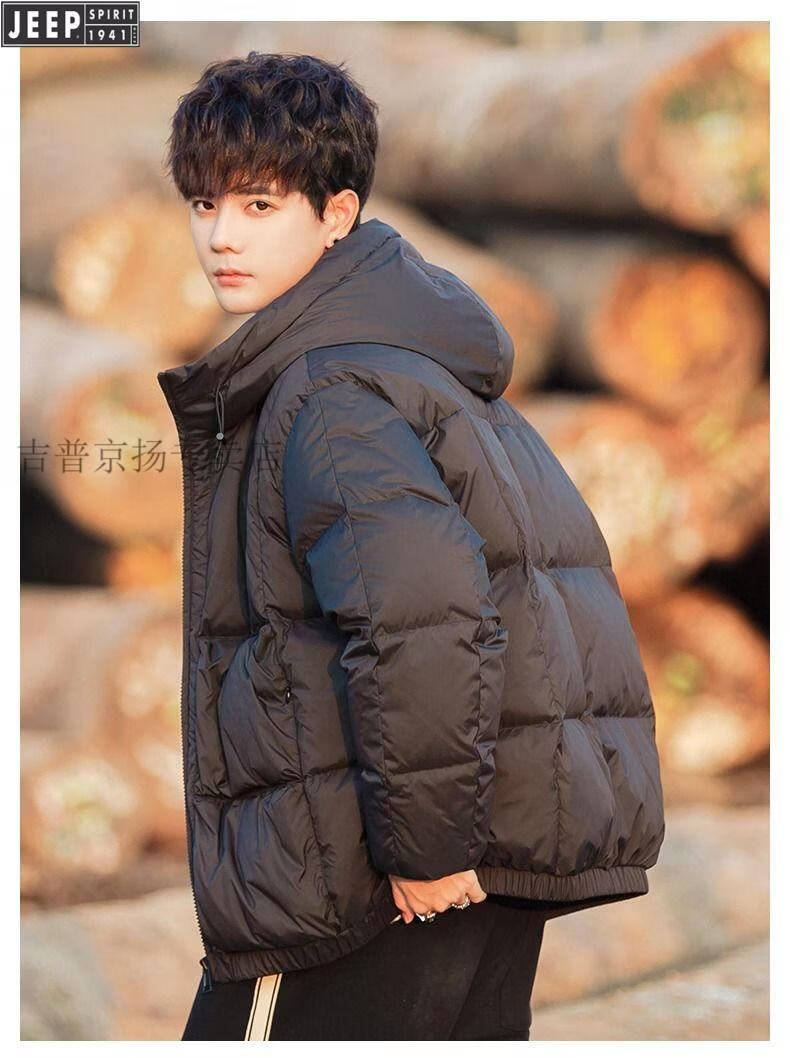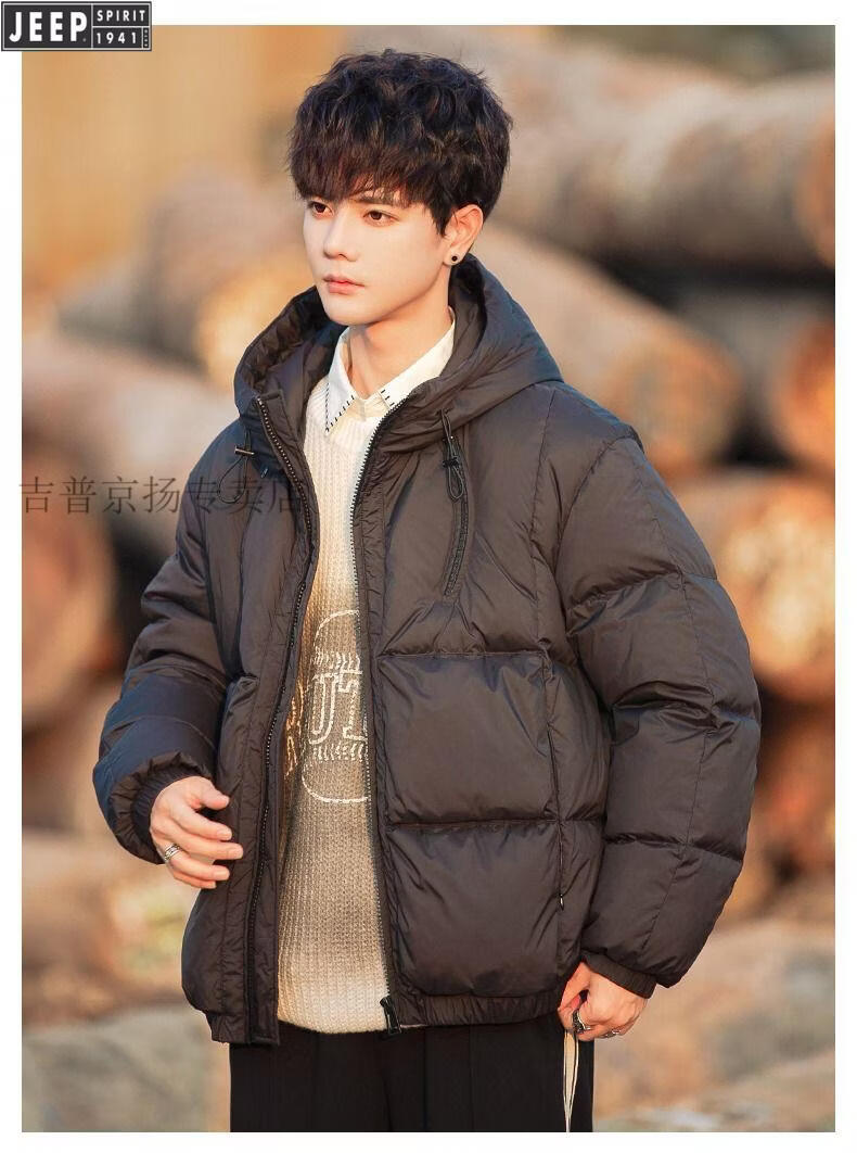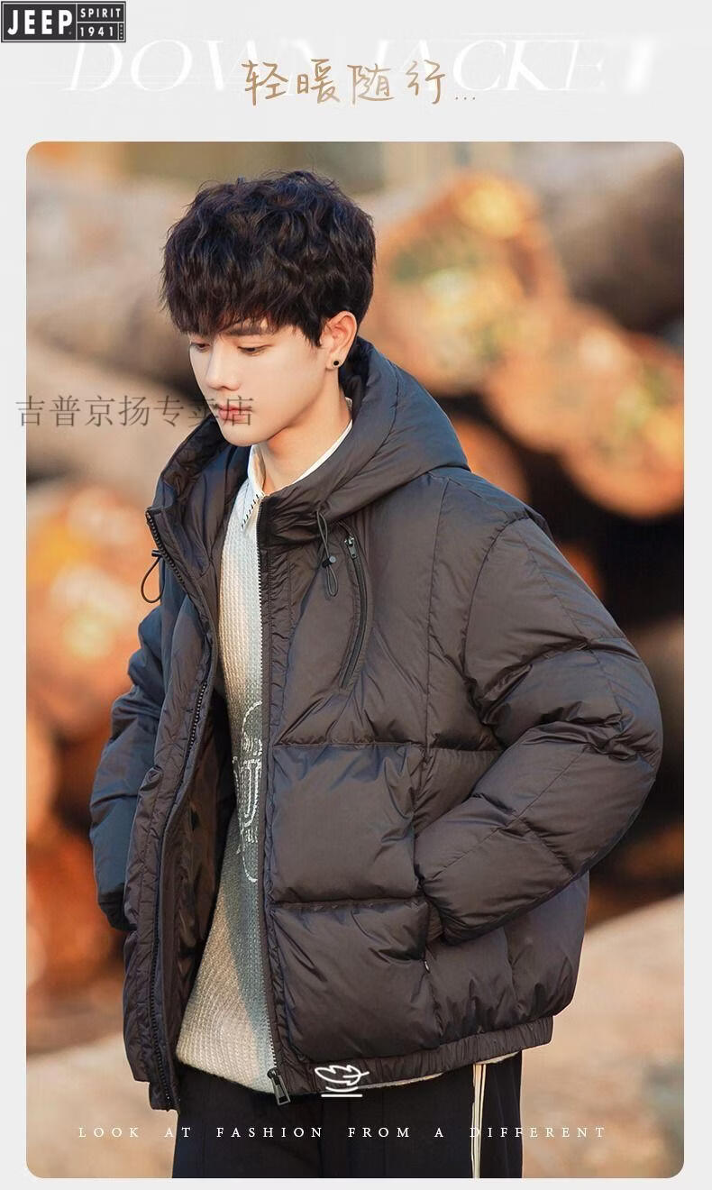 JEEP International Brand Down Jacket Men's Winter Lightweight Youth Student Short Hooded White Duck Down Casual Jacket Black Premium Edition L Recommended 100-120Jin Jin equals 0.5 kg