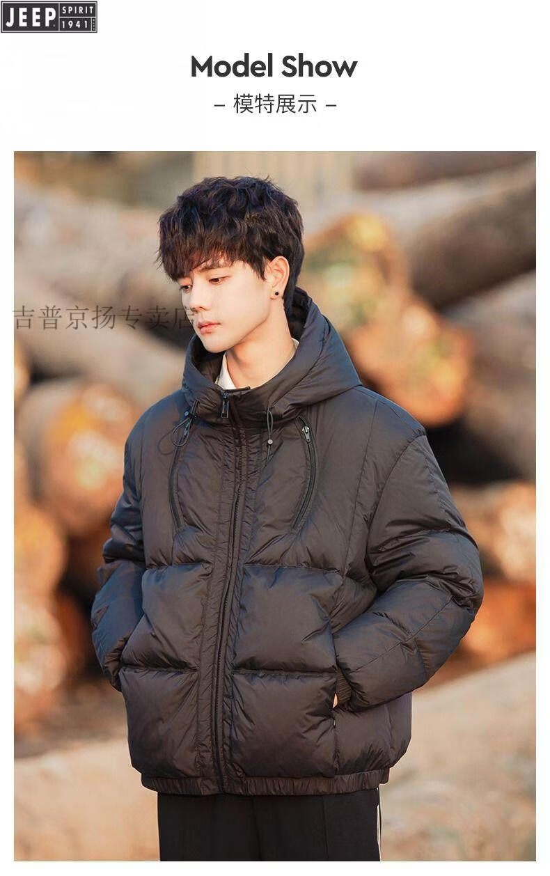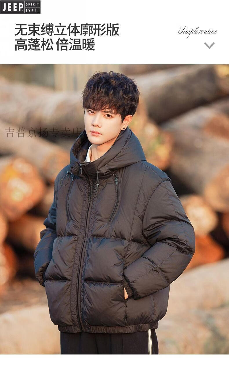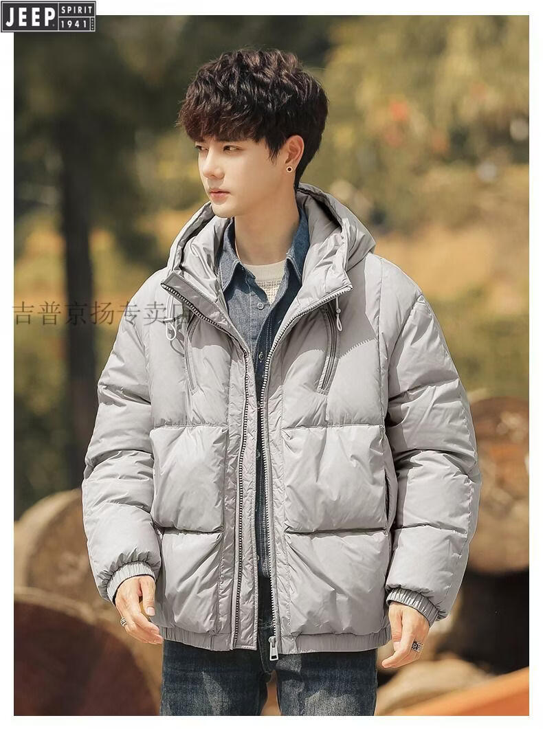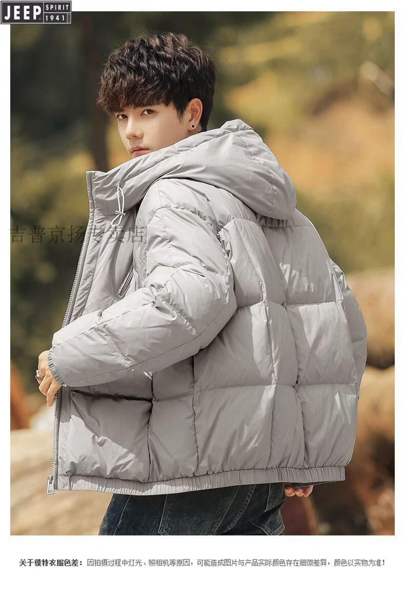 JEEP International Brand Down Jacket Men's Winter Lightweight Youth Student Short Hooded White Duck Down Casual Jacket Black Premium Edition L Recommended 100-120Jin Jin equals 0.5 kg