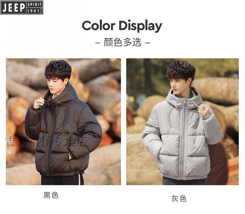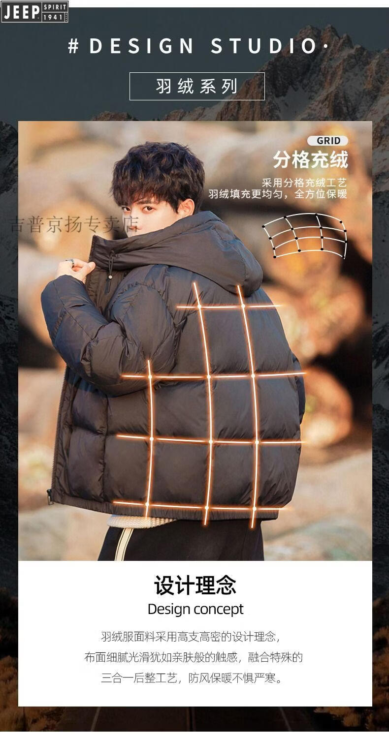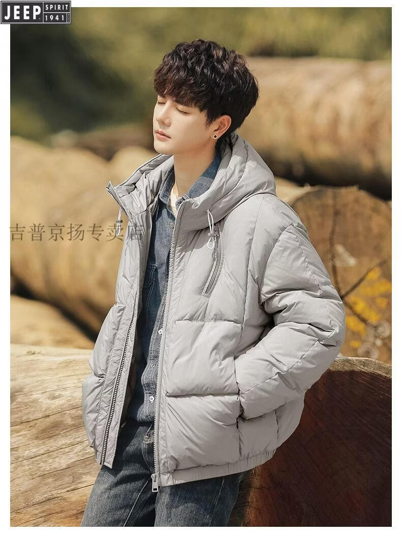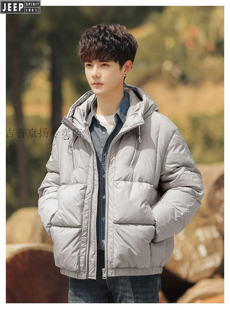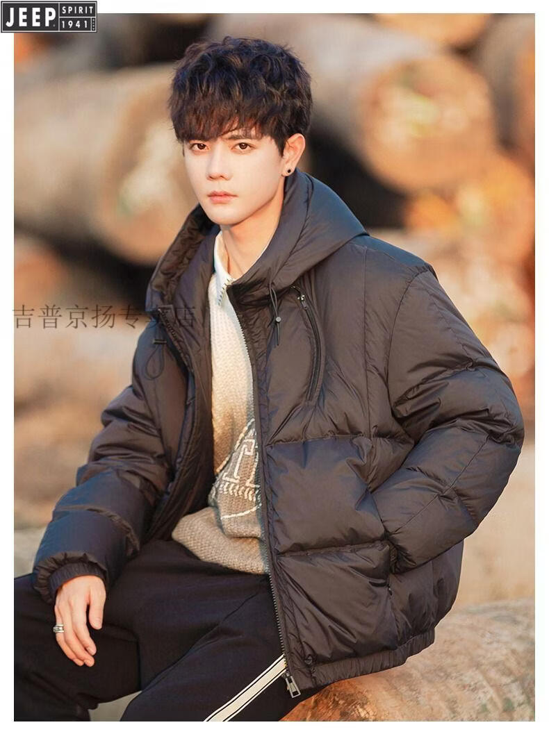 JEEP International Brand Down Jacket Men's Winter Lightweight Youth Student Short Hooded White Duck Down Casual Jacket Black Premium Edition L Recommended 100-120Jin Jin equals 0.5 kg