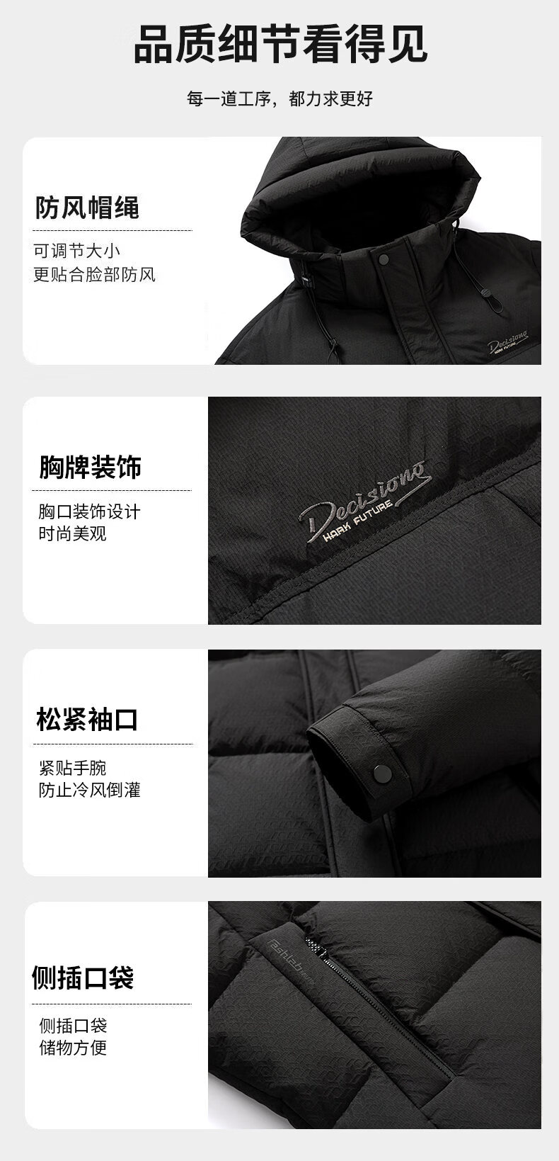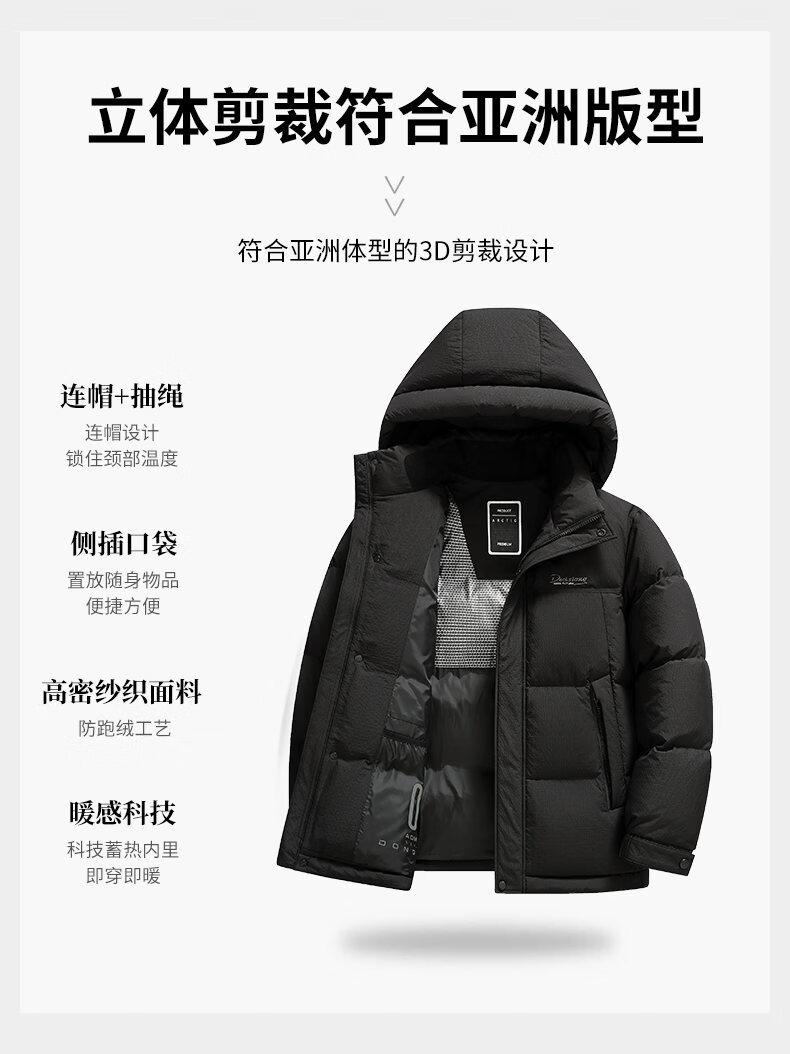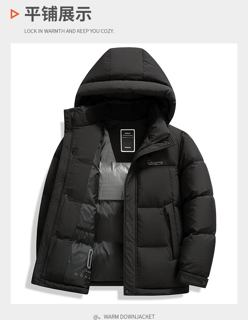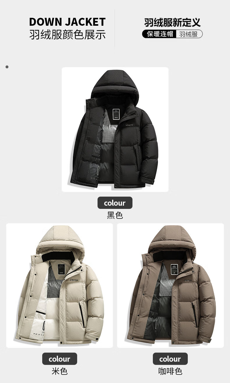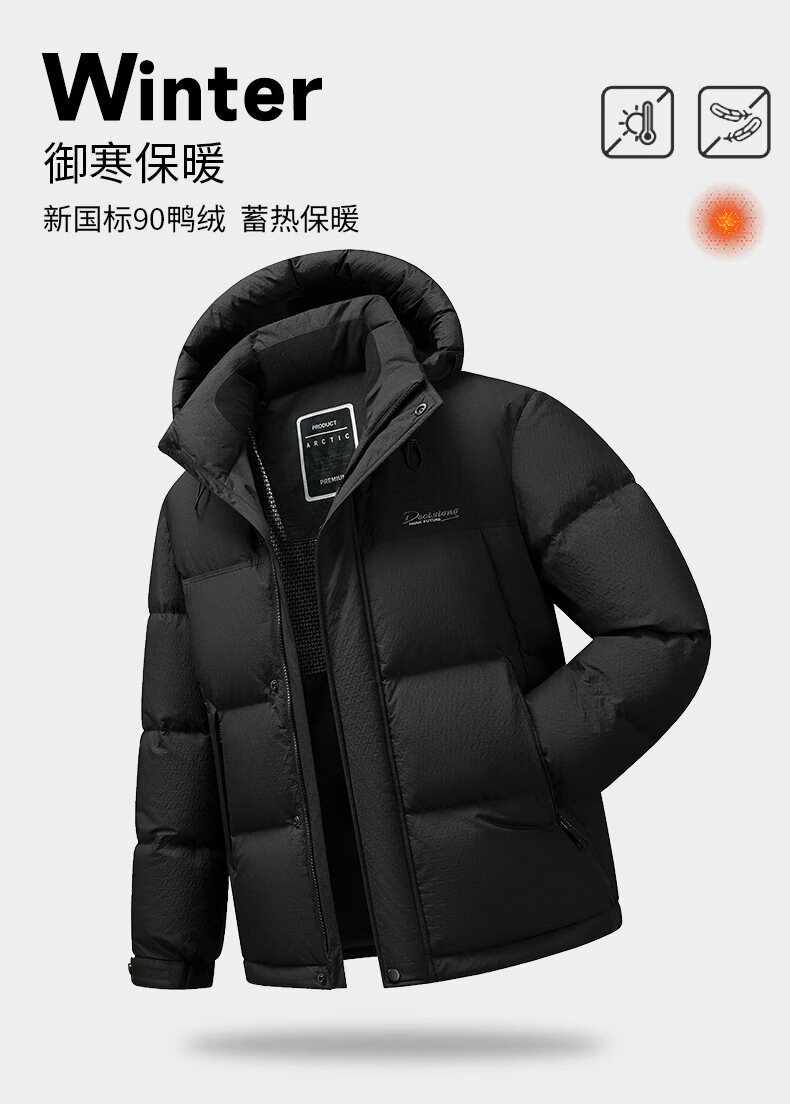 JEEP SPIRIT kältebeständige, verdickte und warme weiße Entendaunen-Daunenjacke für Herren im Winter 2025, neue winddichte Outdoor-Freizeitjacke mit Kapuze für Herren, schwarze Entendaunen, kältebeständig minus 20 S (165) 90–100 Jin Jin entspricht 0,5 kg / 125 g Daunenfüllung