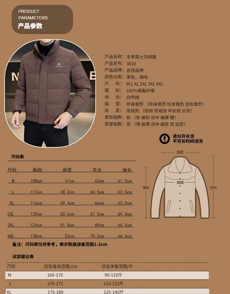 China (cm) 165 / 88-90 170 / 96-98 175 / 108-110 180 / 118-122 185 / 126-130