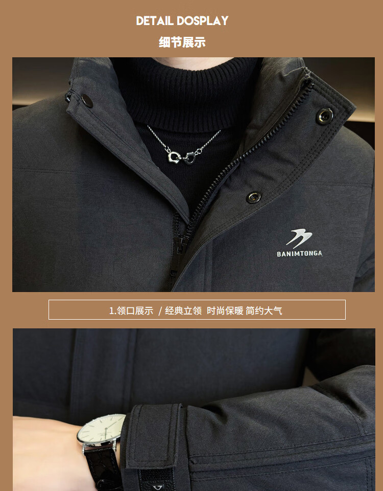 Woodpecker (TUCANO) down jacket men's thickened jacket 2025 new winter trendy brand style fashionable stand-up collar warm winter jacket black M