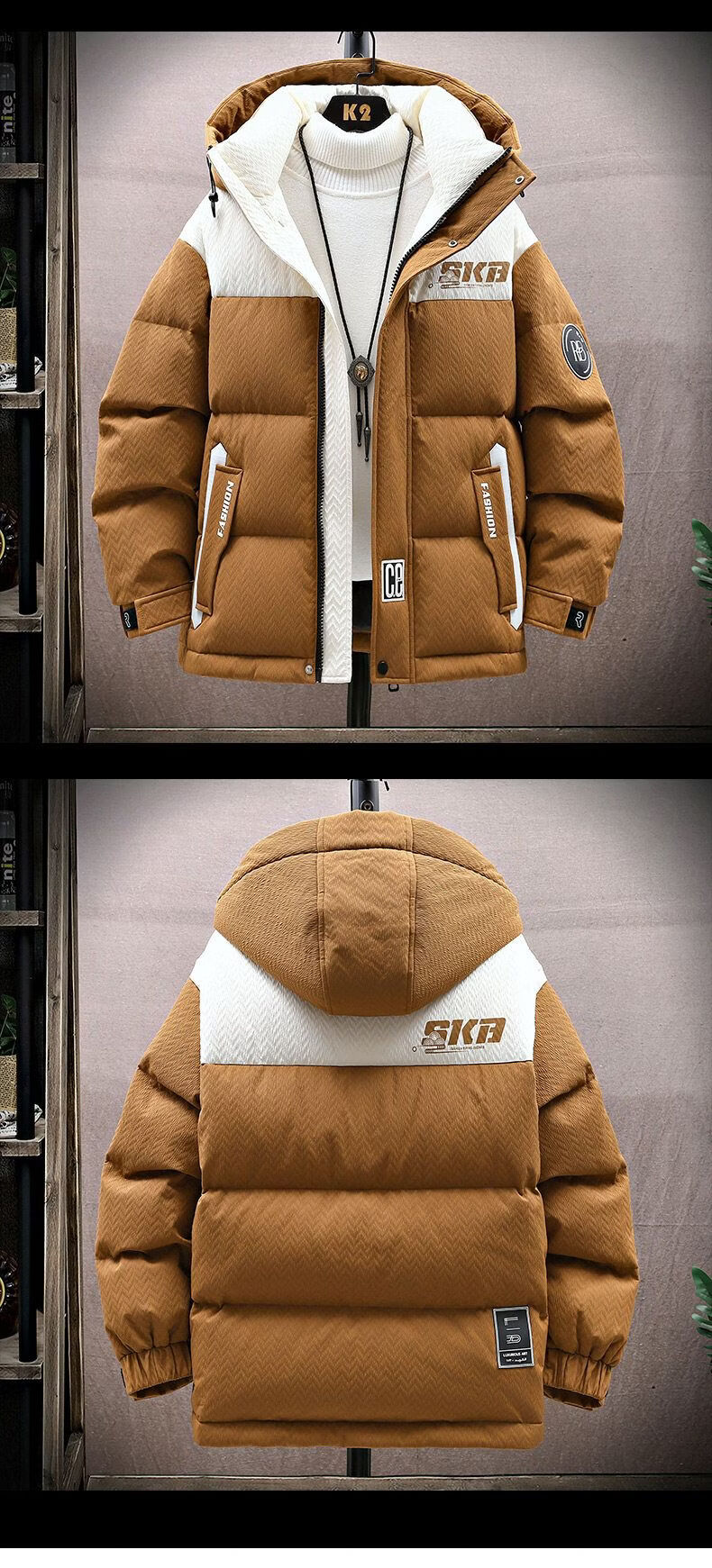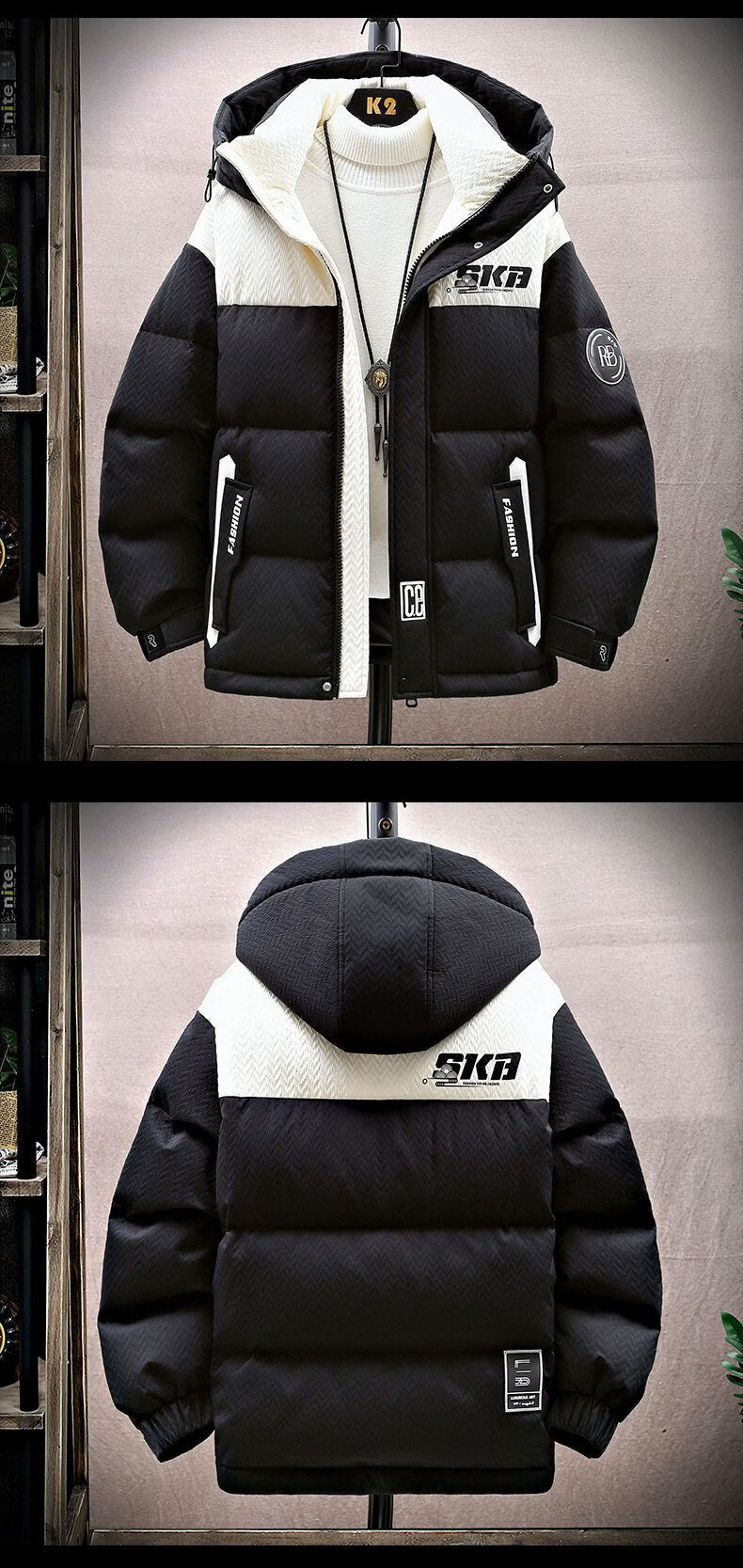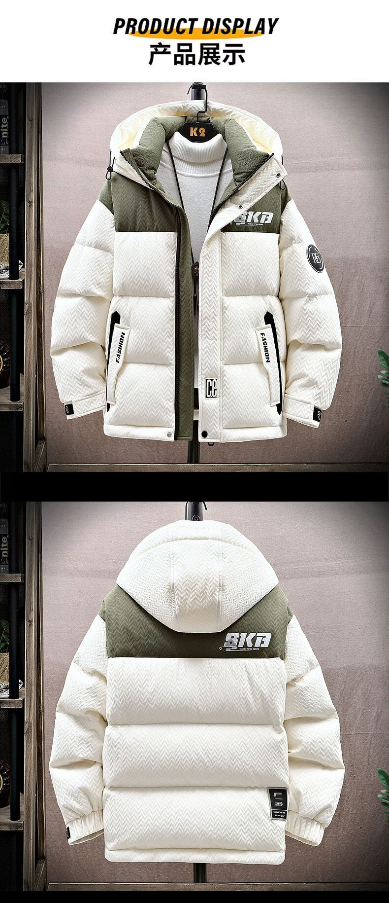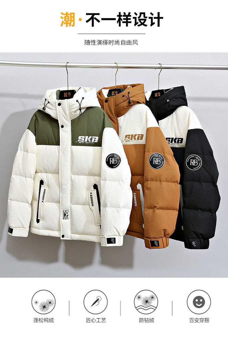 Playboy (PLAYBOY) Contrast Color Down Jacket Youth 2025 New 90 Duck Down Thickened Winter Jacket Men and Women Popular Couple Wear Beige New National Standard 90% White Duck Down M About 85-105Jin Jin is equal to 0.5 kg