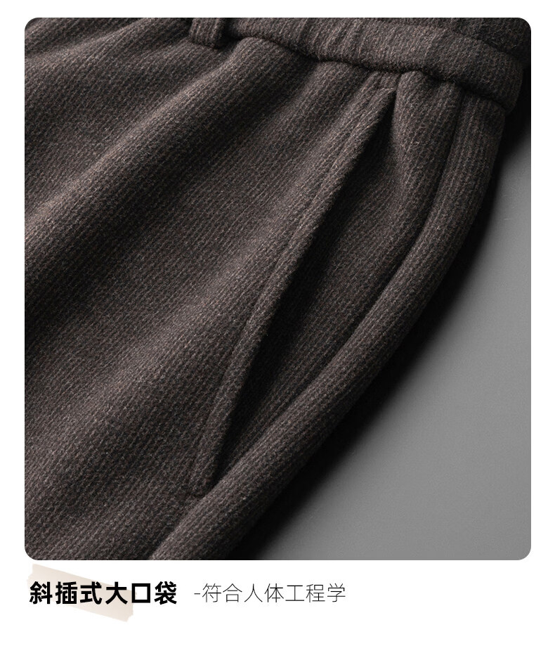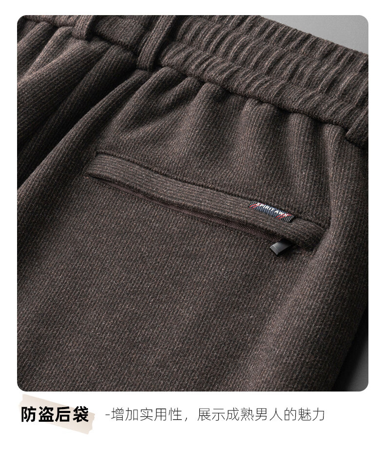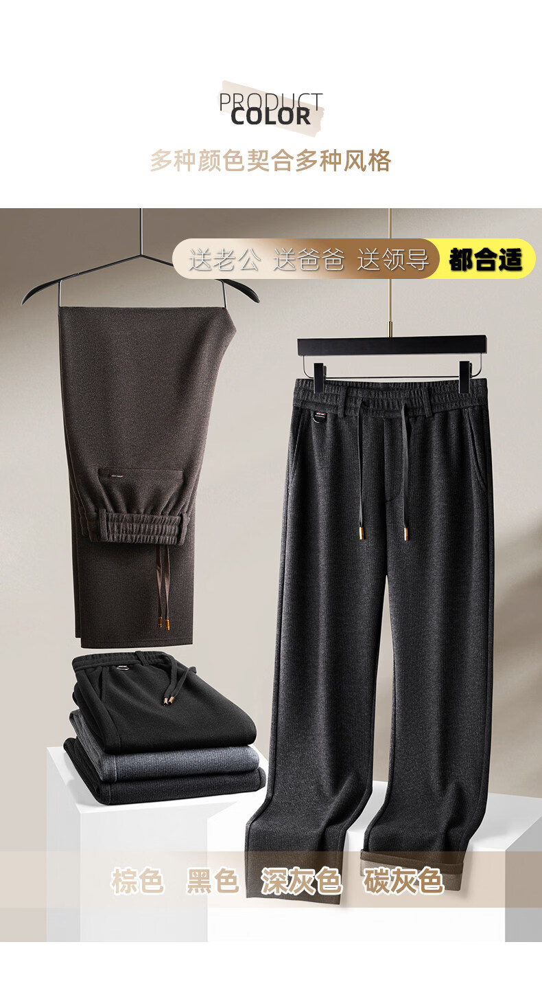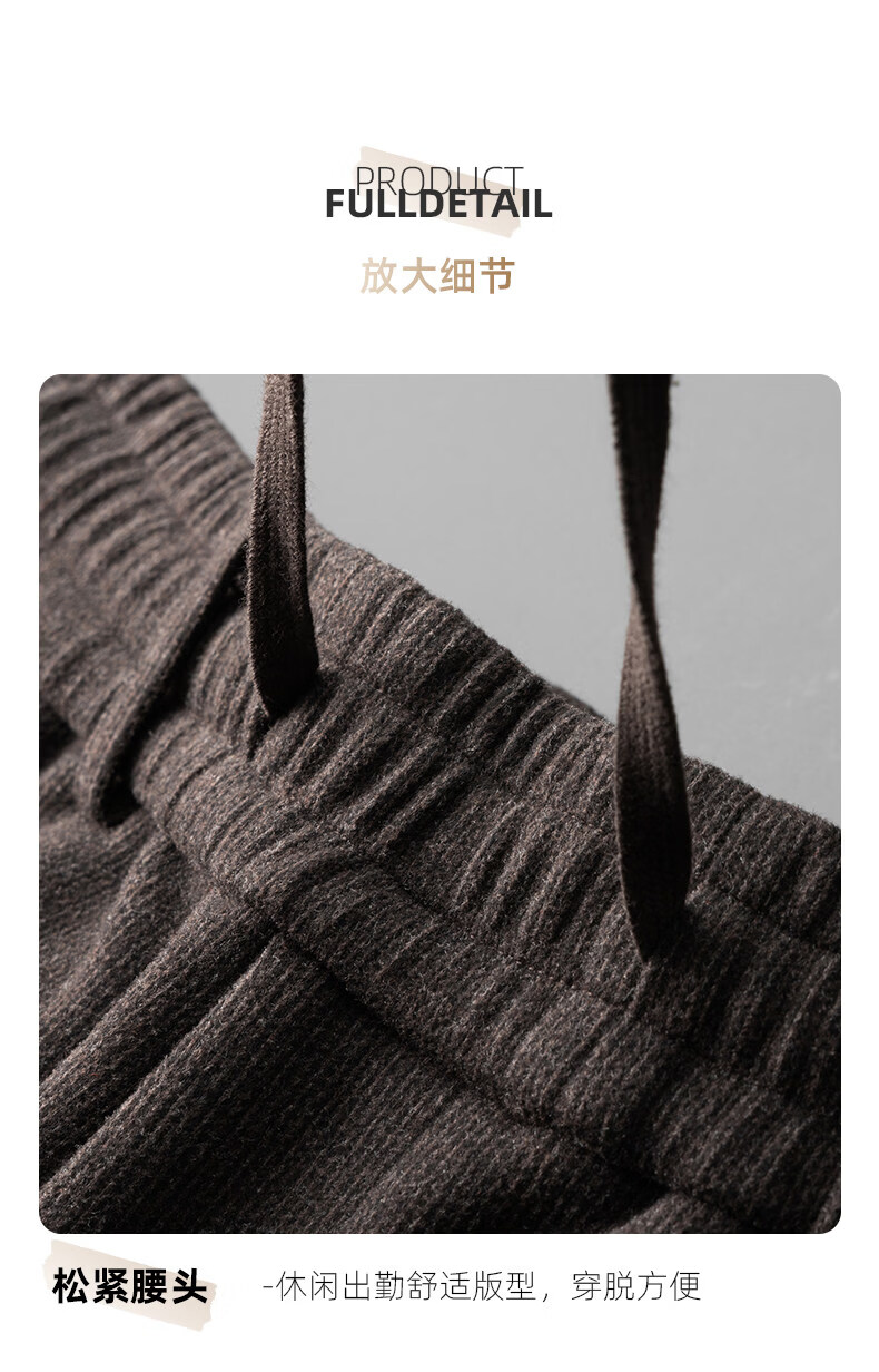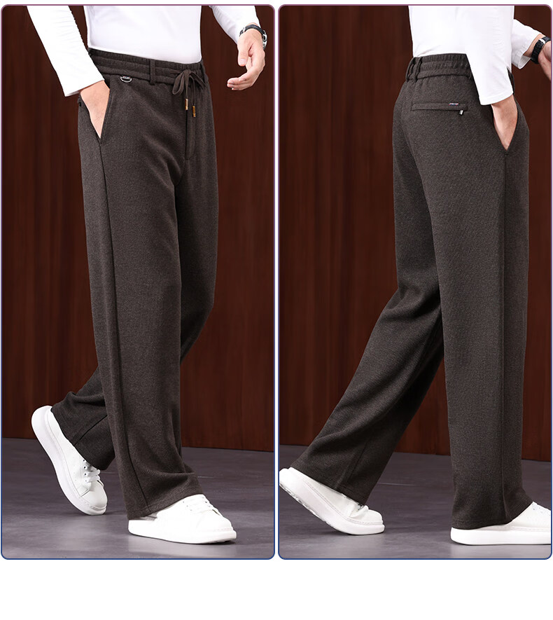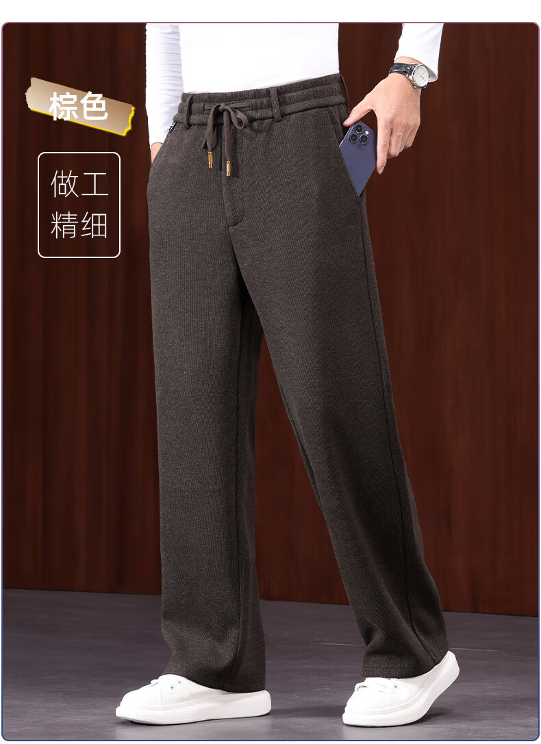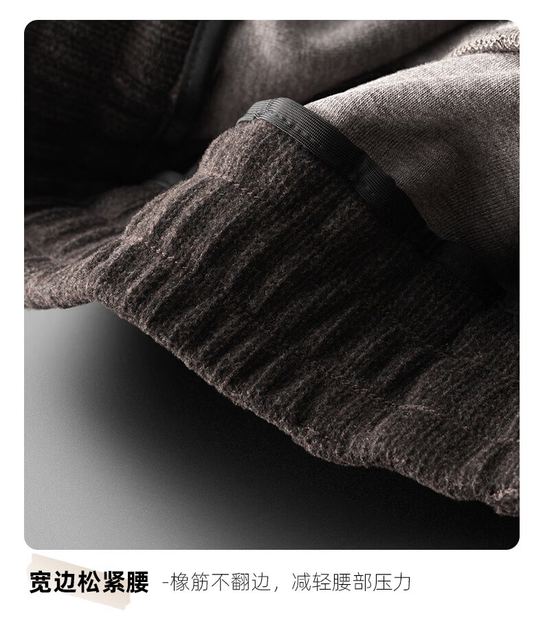 恒源祥羊毛混纺秋冬款男士休闲裤直筒宽松运动休闲裤松紧腰加厚男裤子 棕色 L 建议127-140斤左右