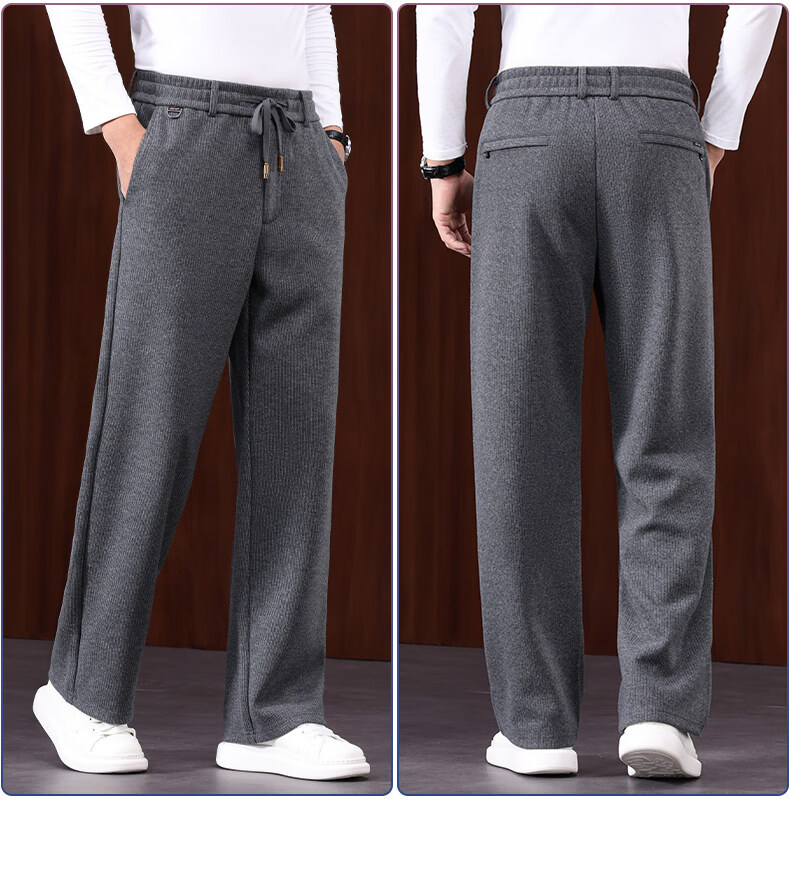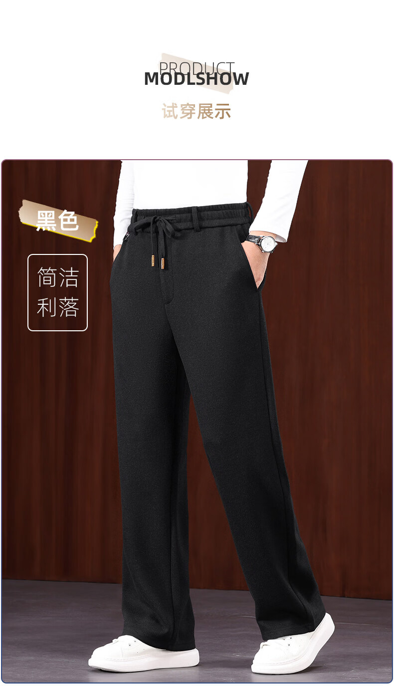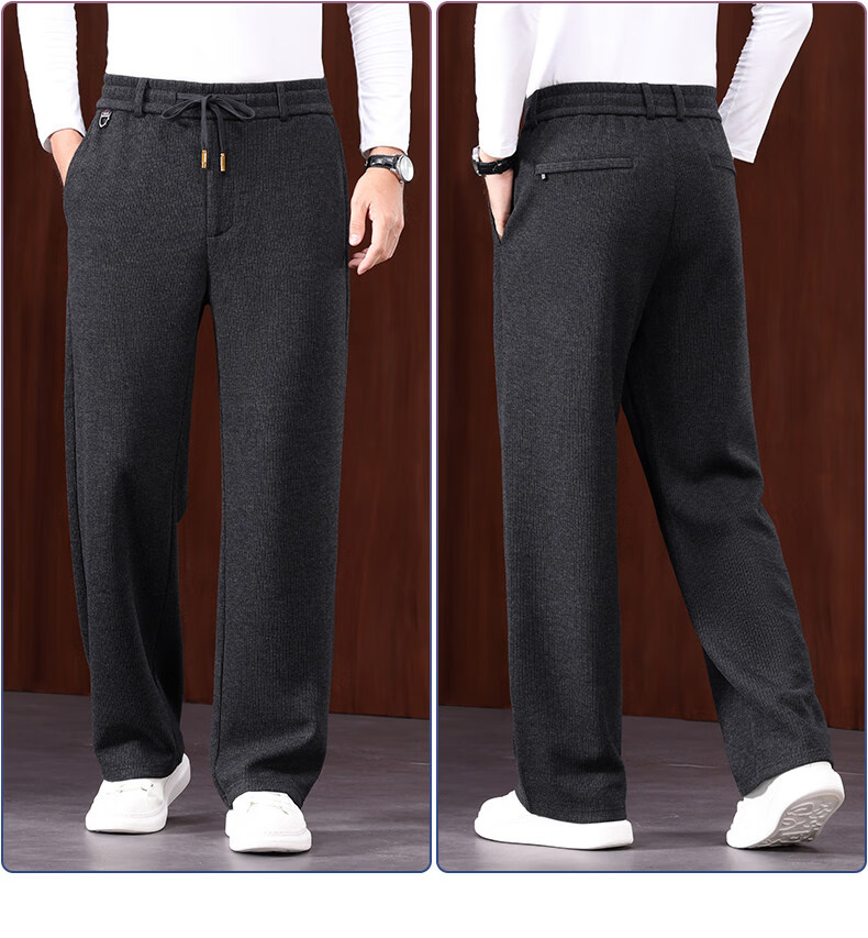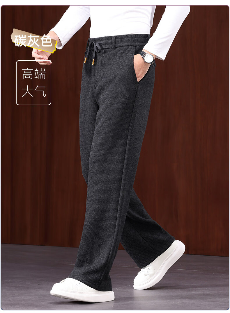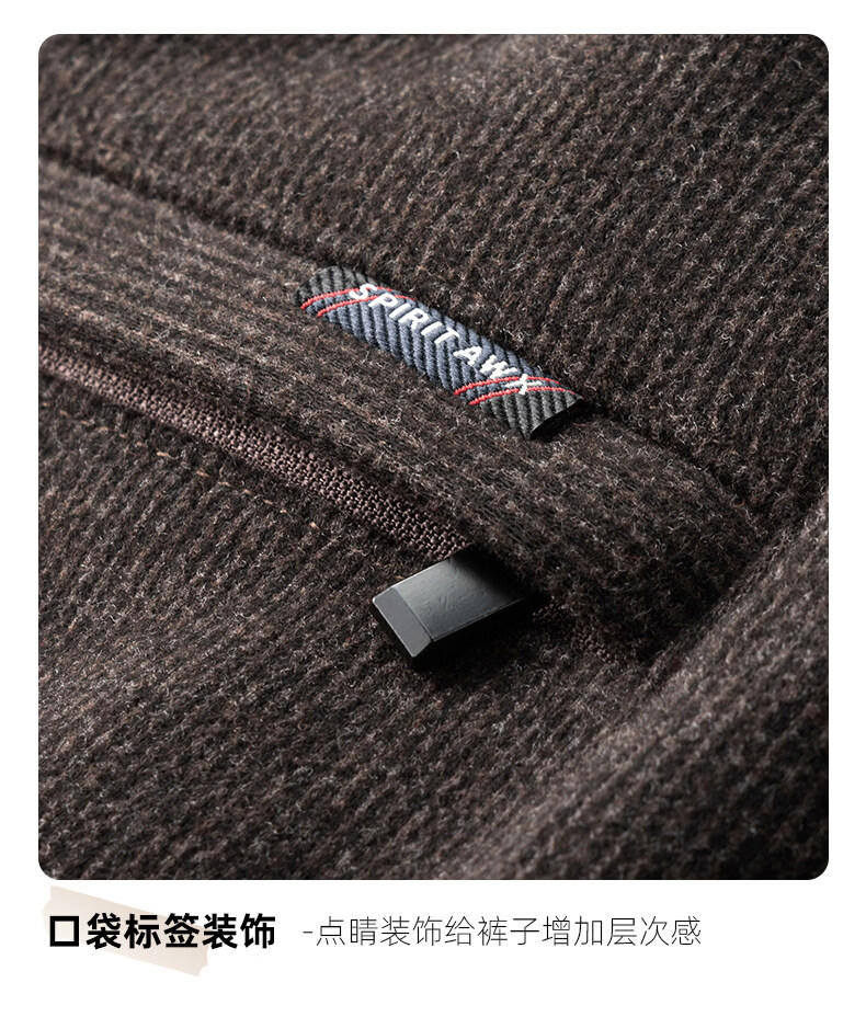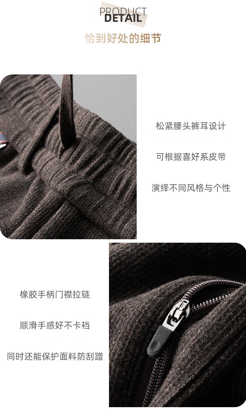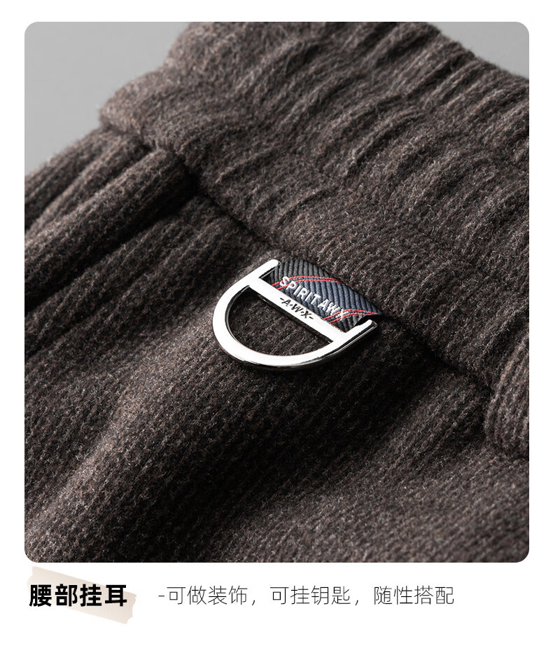 恒源祥羊毛混纺秋冬款男士休闲裤直筒宽松运动休闲裤松紧腰加厚男裤子 棕色 L 建议127-140斤左右