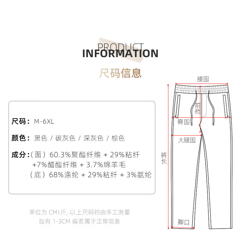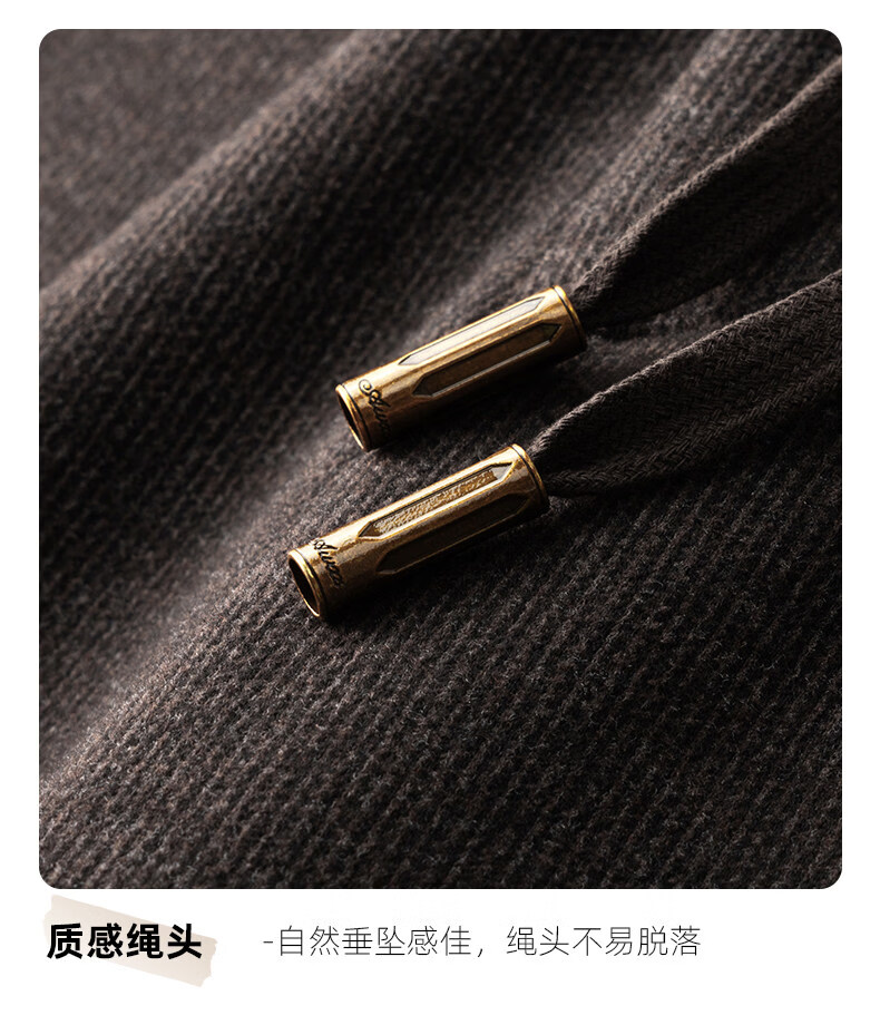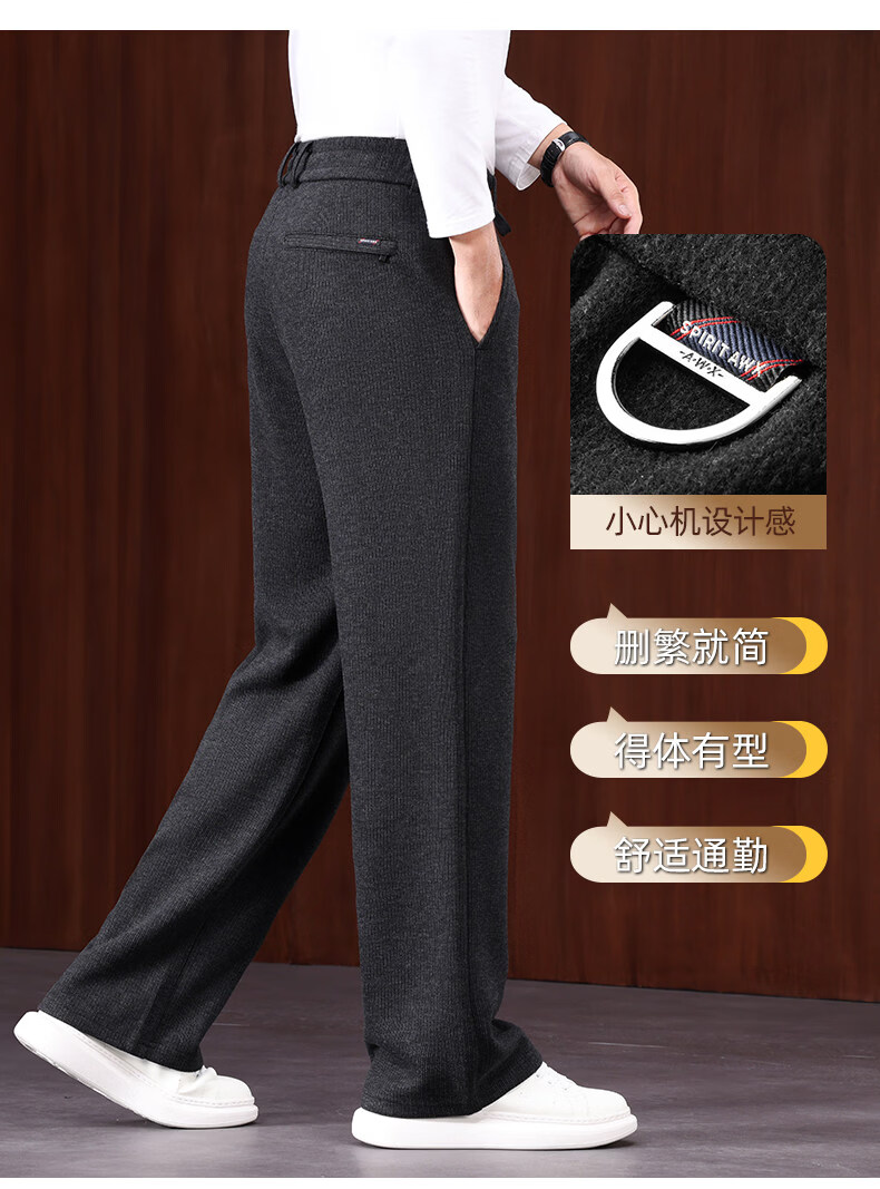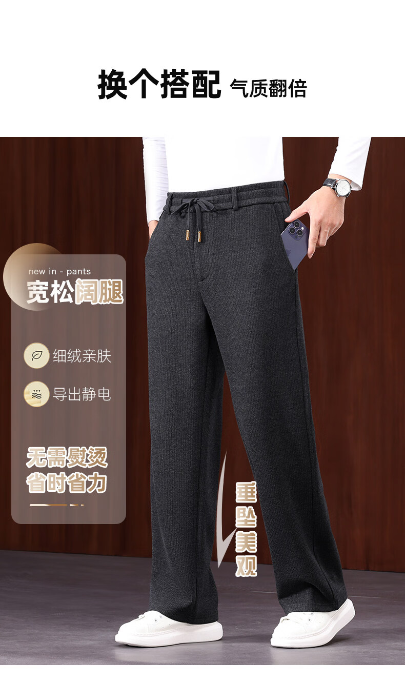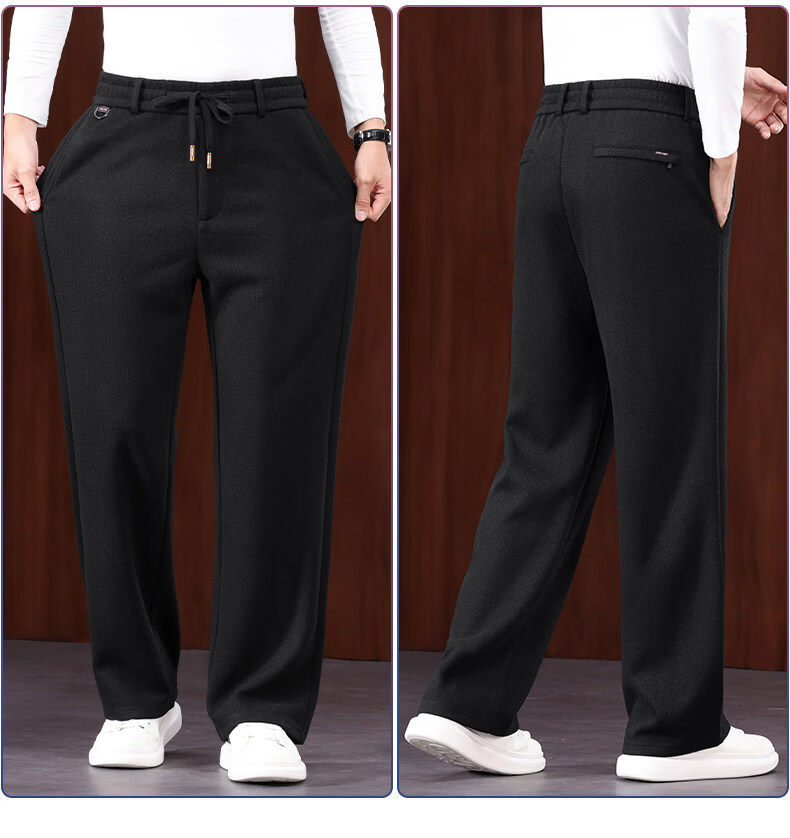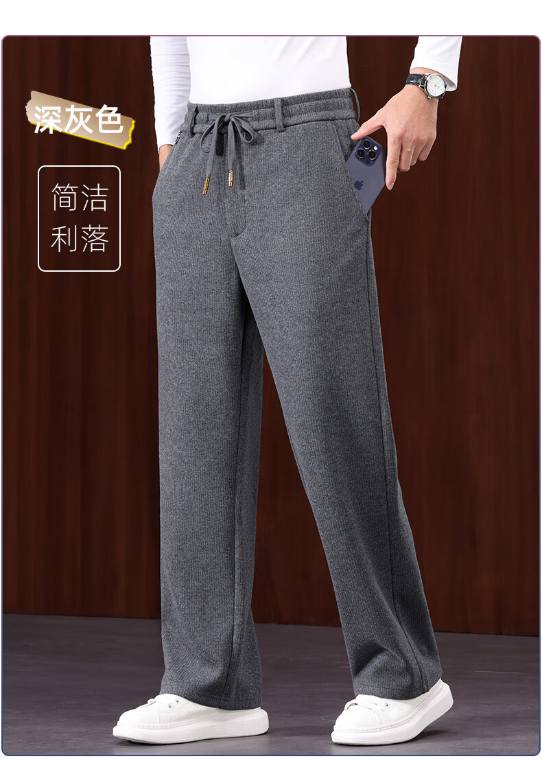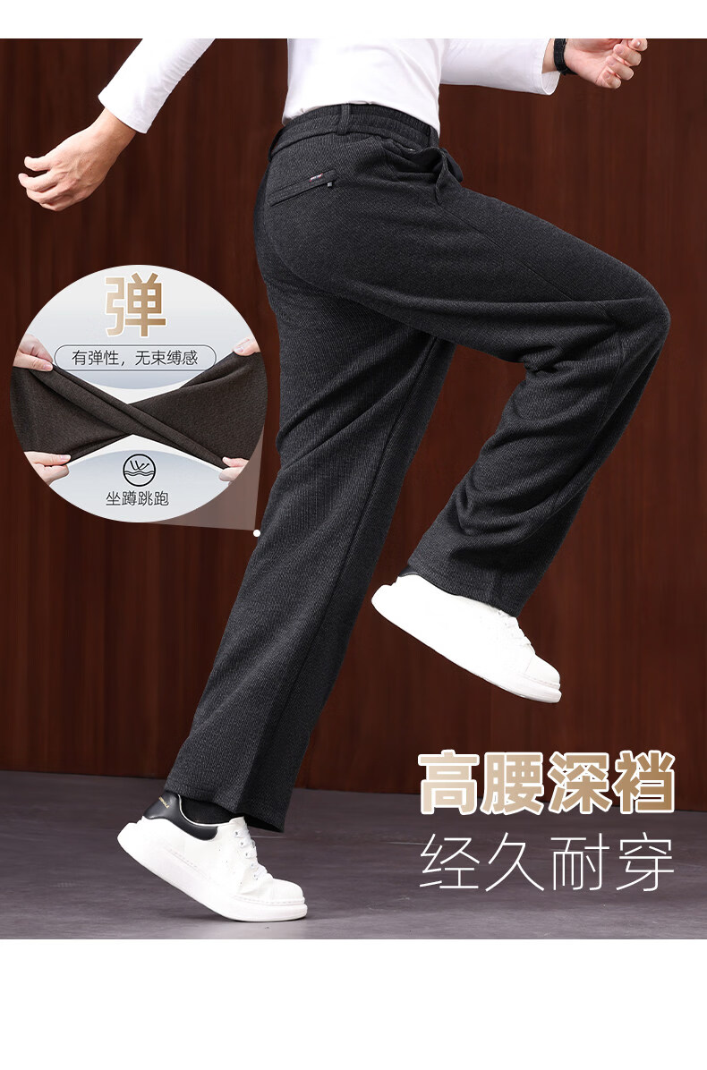 恒源祥羊毛混纺秋冬款男士休闲裤直筒宽松运动休闲裤松紧腰加厚男裤子 棕色 L 建议127-140斤左右
