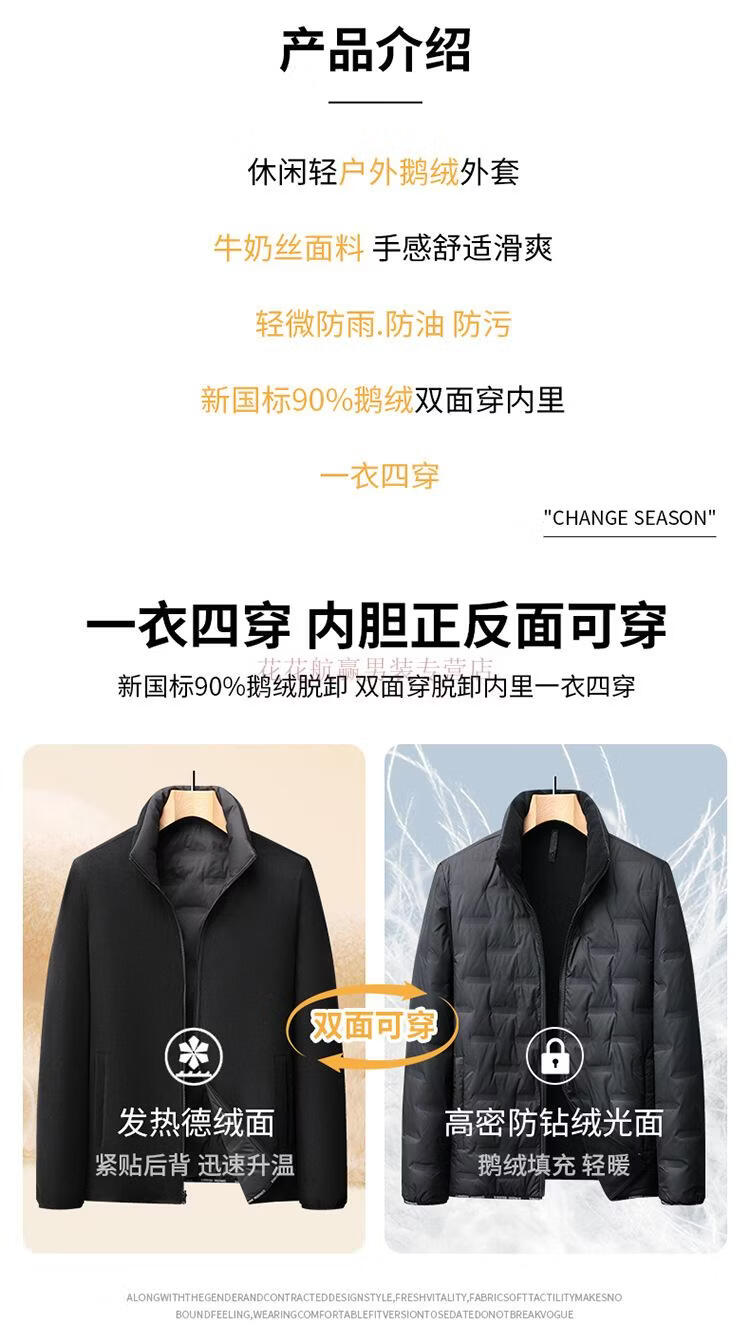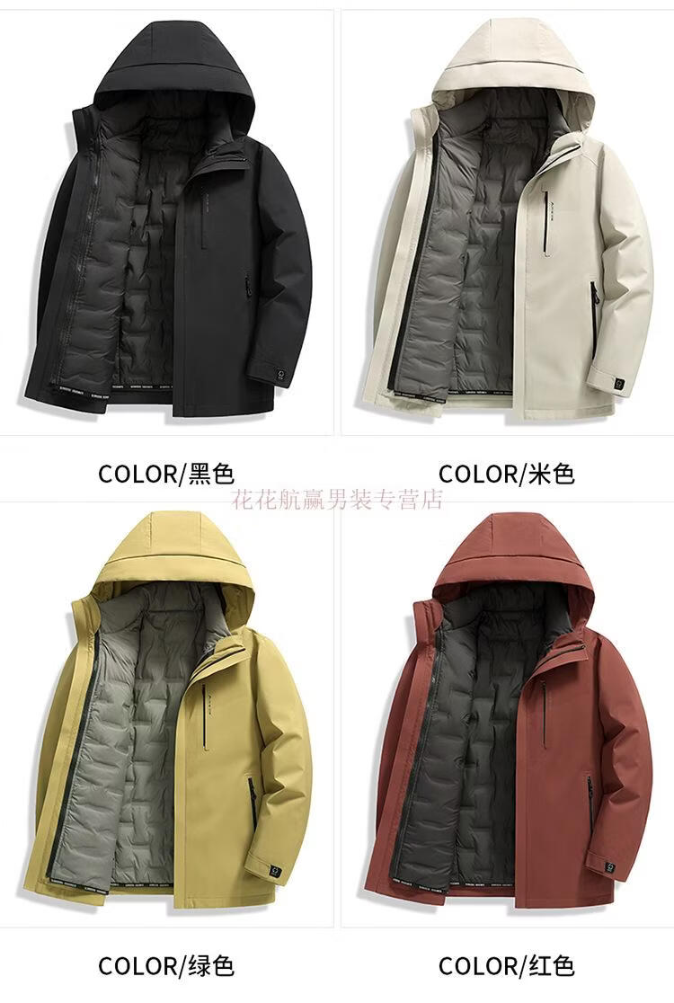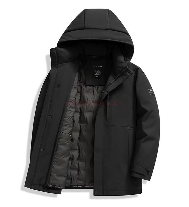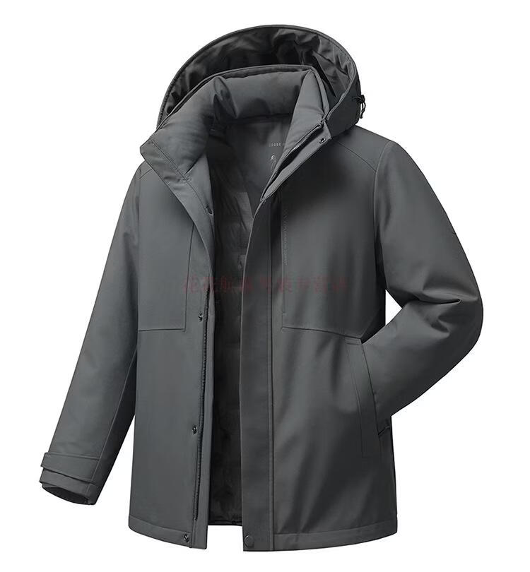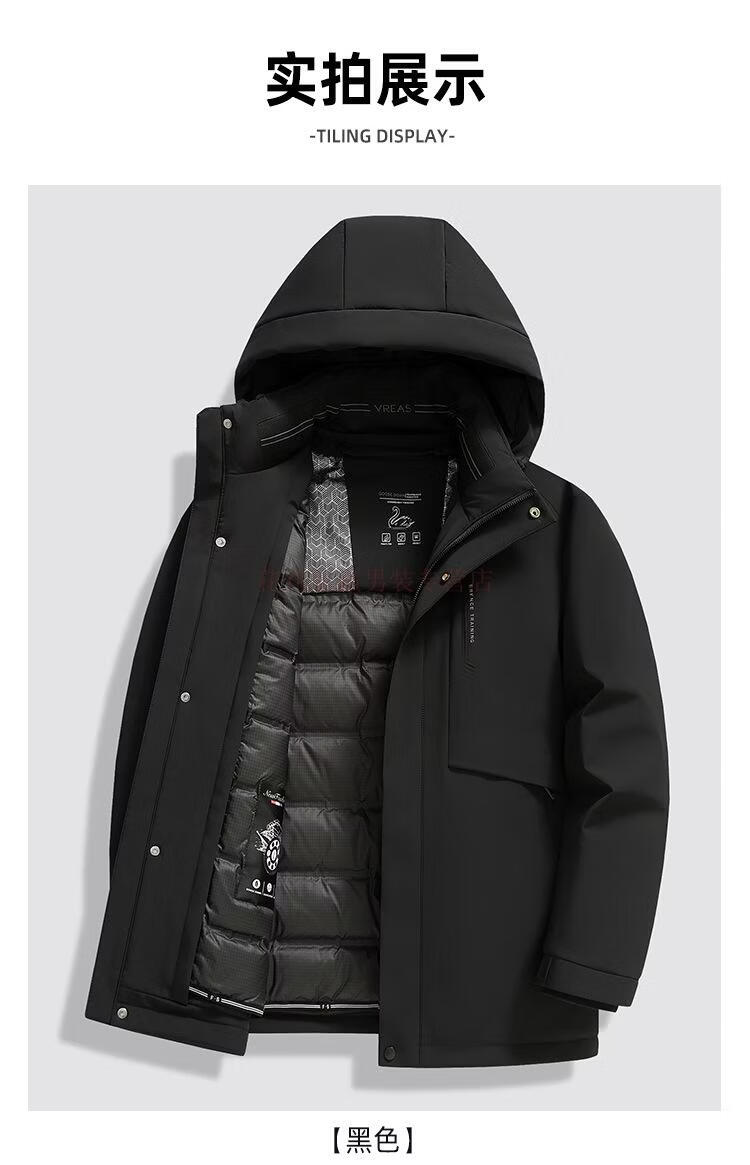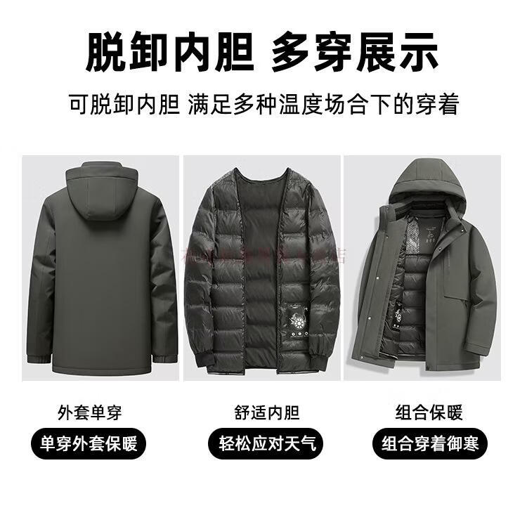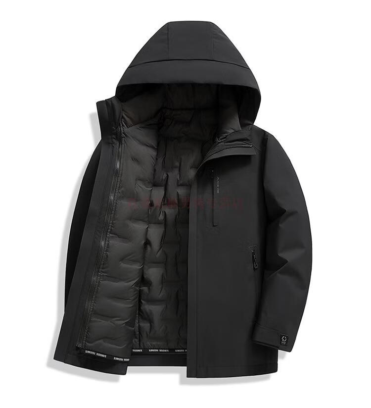 花花公子(PLAYBOY)三合一鹅绒服男士保暖中长款外套脱卸内胆中老年爸爸休闲羽绒服男 MSN9606黑色【可脱卸内胆】 M 170(推荐120斤以内穿)
