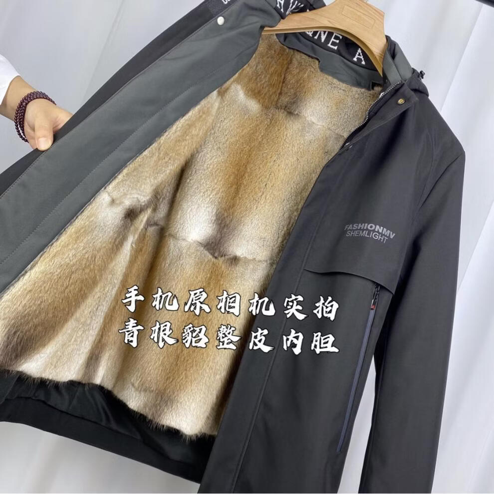 Hengyuan Xiang Parker Мужская новинка 2026 года, новинка 2026 года, норка со съемной подкладкой, меховая зимняя короткая парка, черная натуральная подкладка из шерсти с рукавами M 100-115Jin Jin равна 0,5 кг