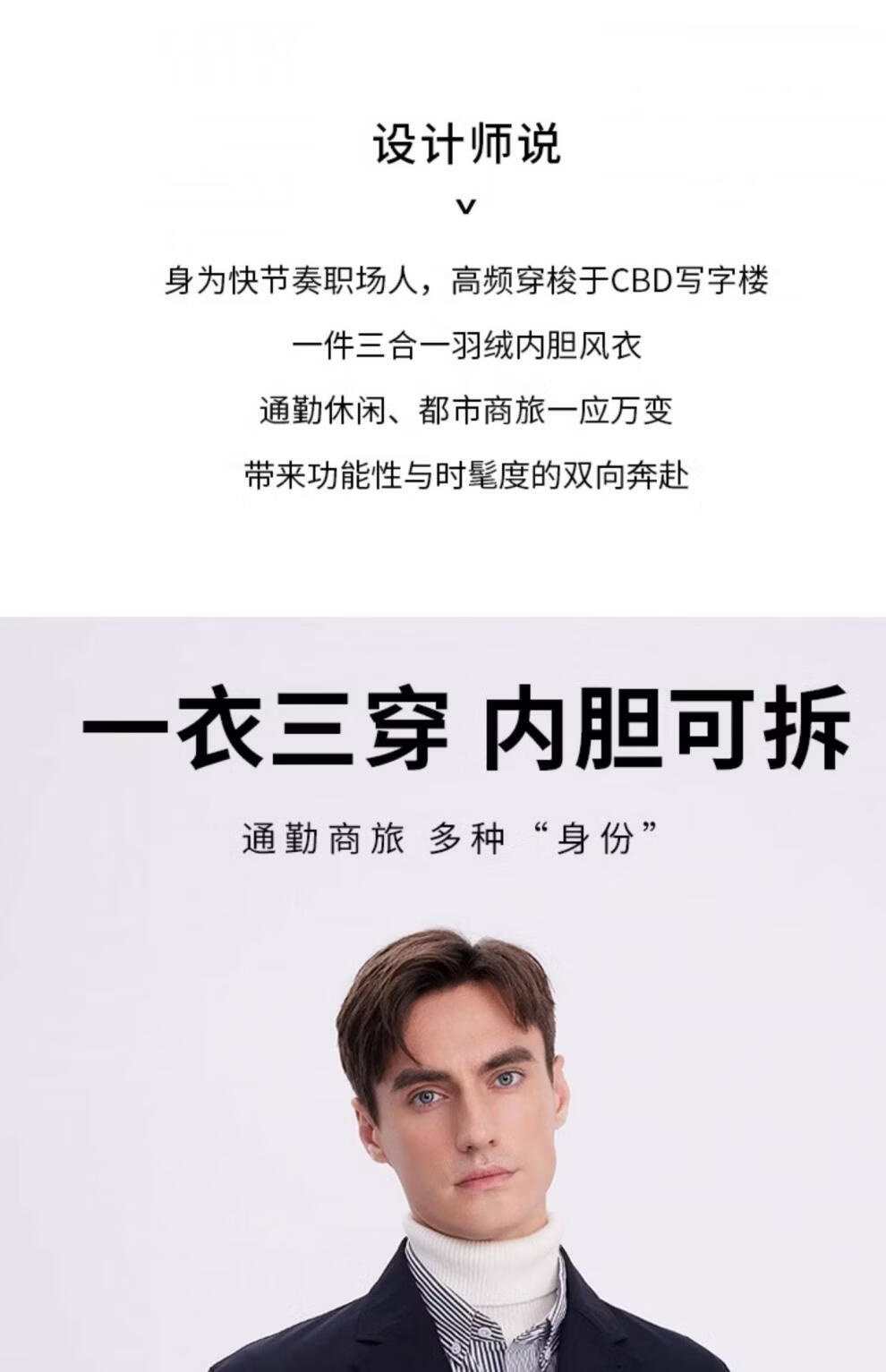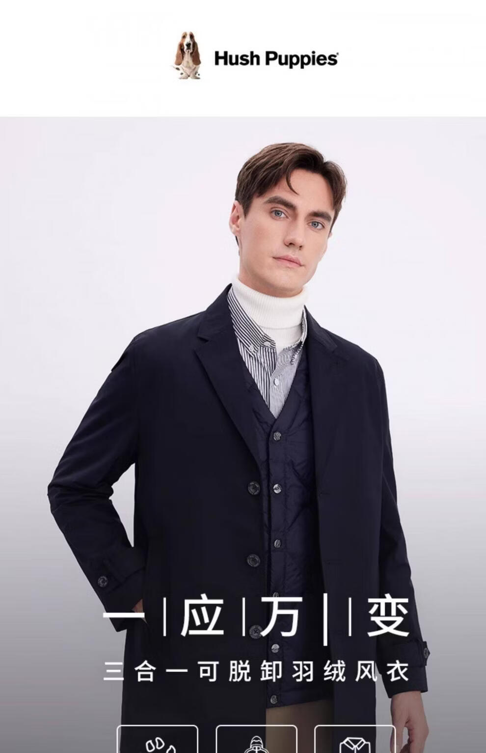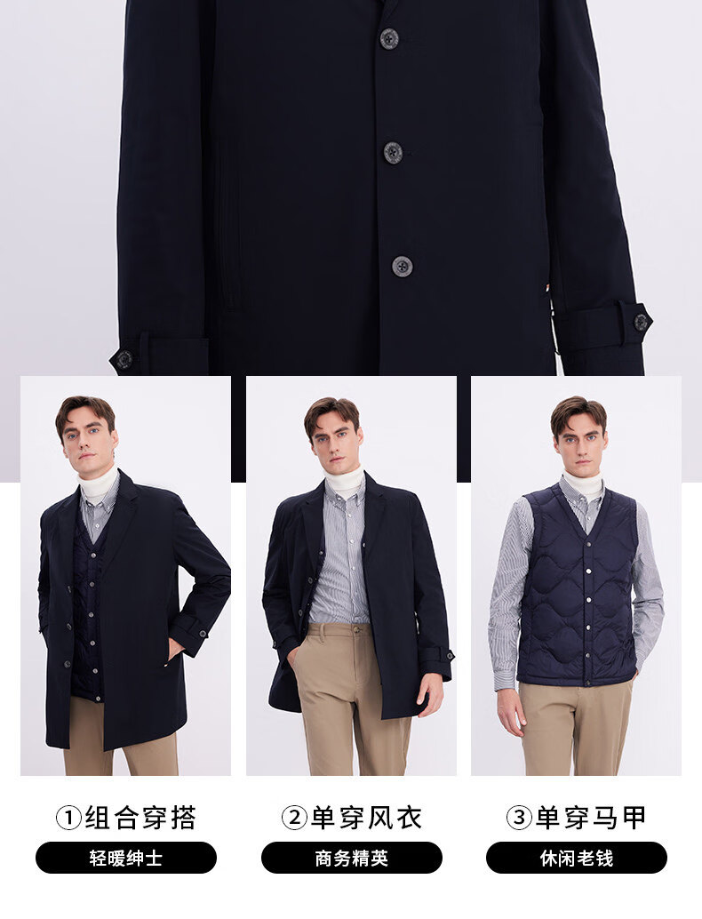 暇步士(Hush Puppies)【一衣三穿】男装冬季羽绒马甲三合一可脱卸风衣商务通勤 050中啡2 S