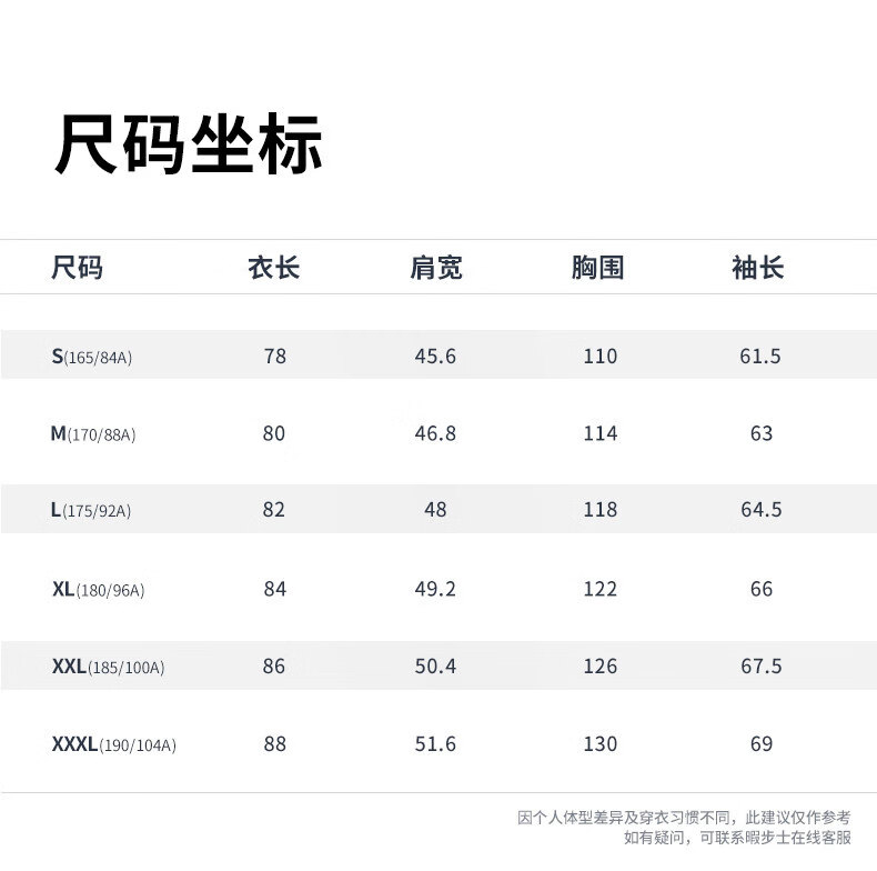 China (cm) 165 / 88-90 170 / 96-98 175 / 108-110 180 / 118-122 185 / 126-130