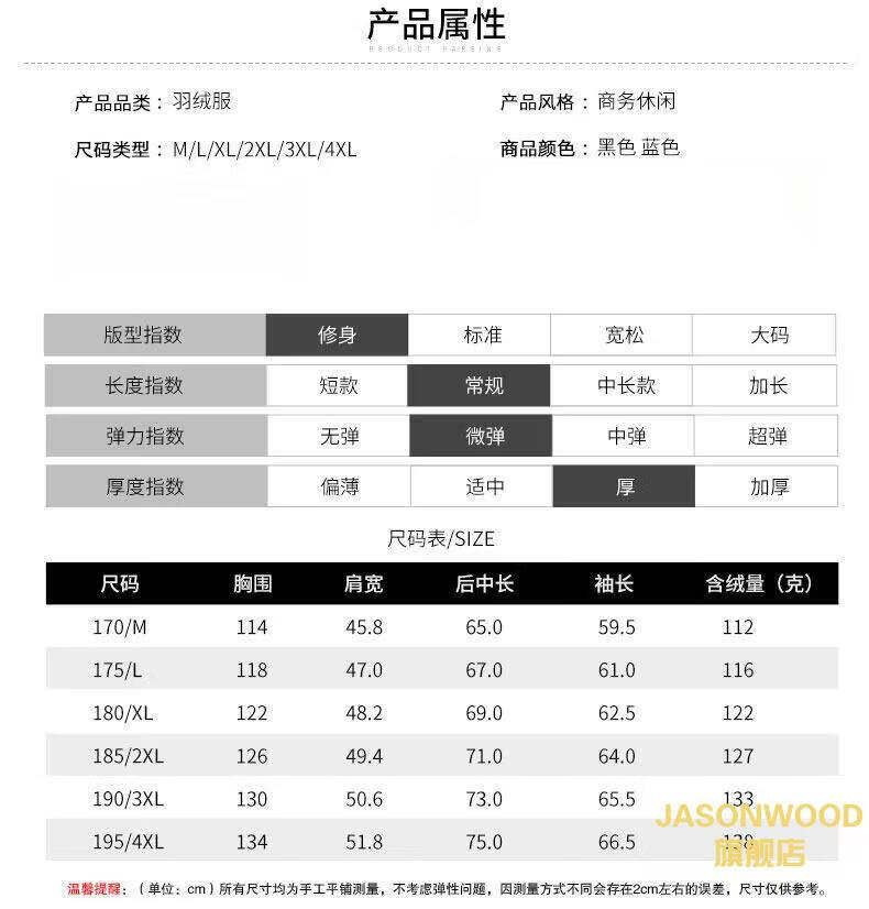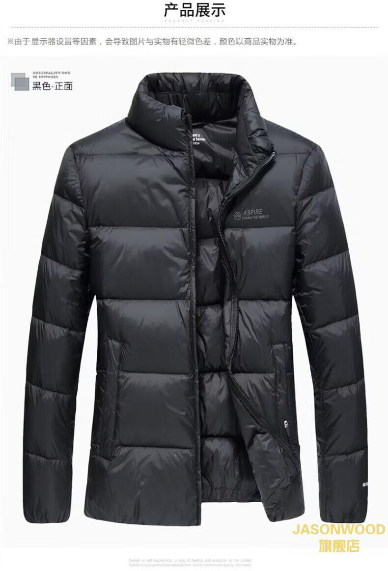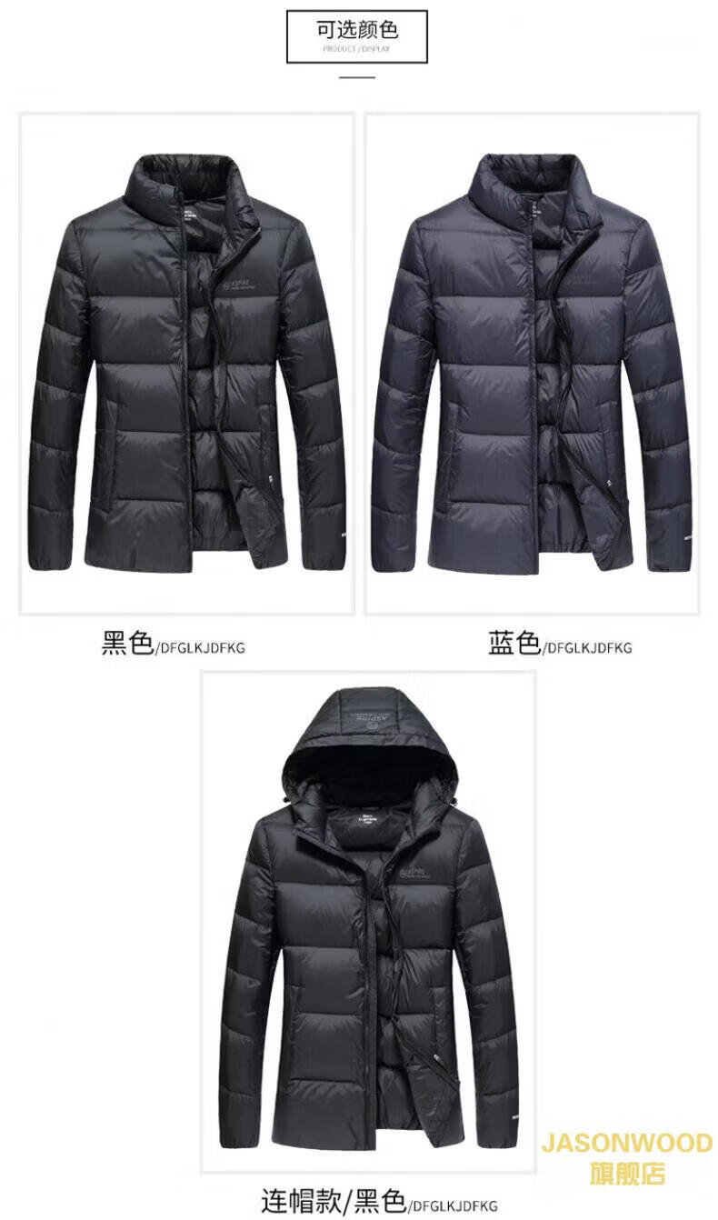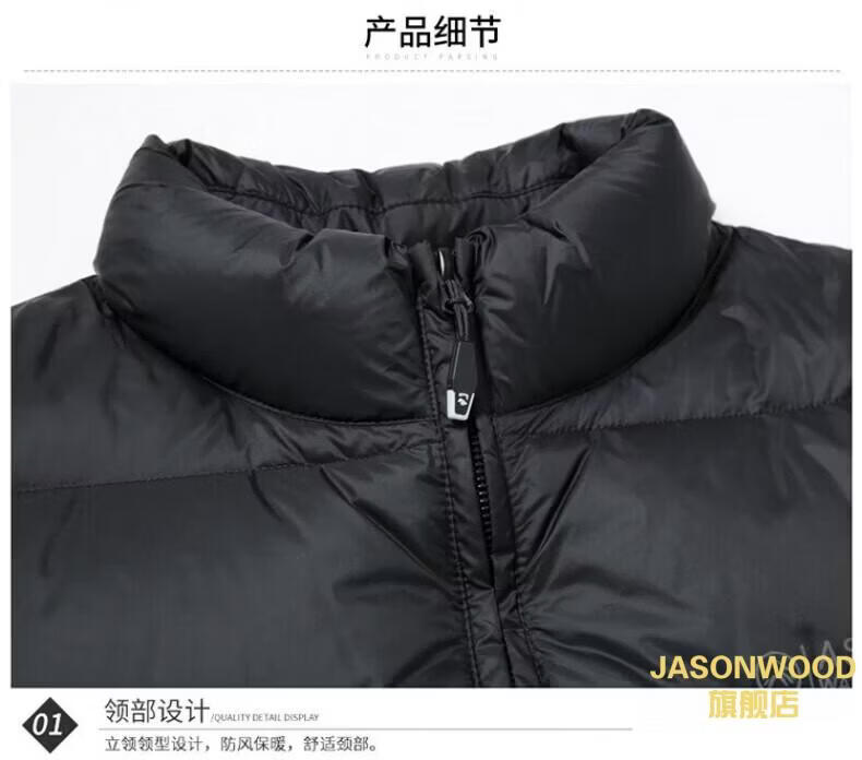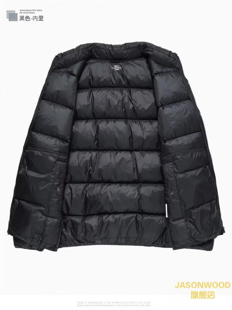 JASONWOOD正品奢侈高端品牌轻薄羽绒服男士2025冬季中年立领面包服保暖外套 高档黑色【现货速达】 冬季 XL