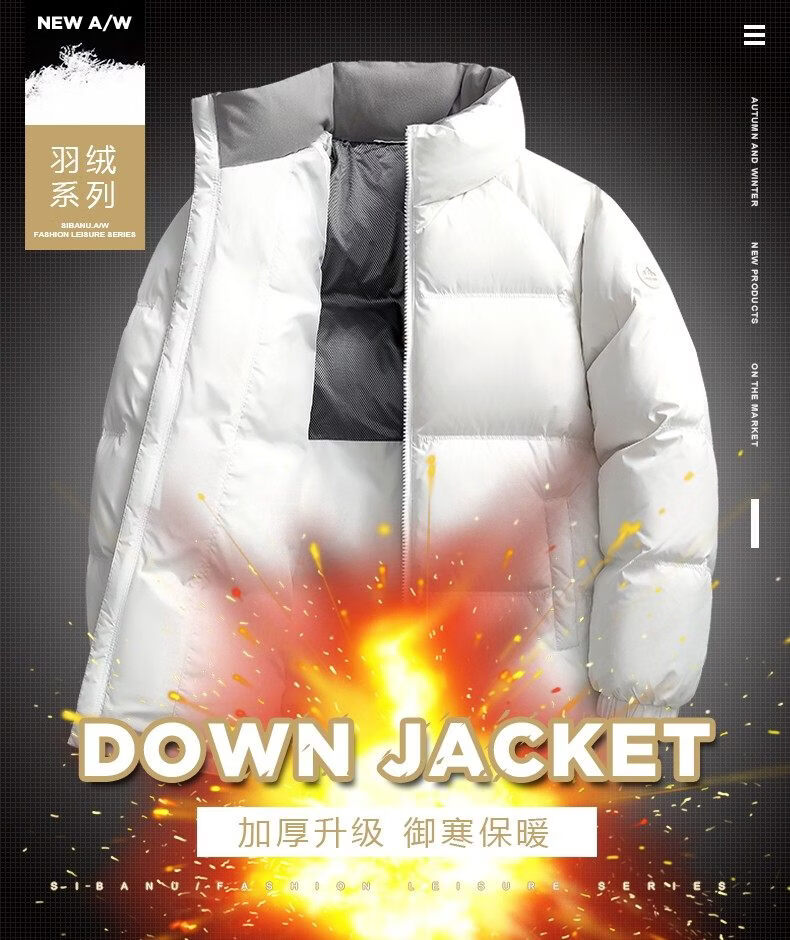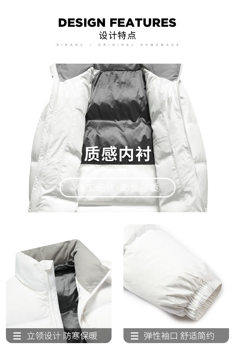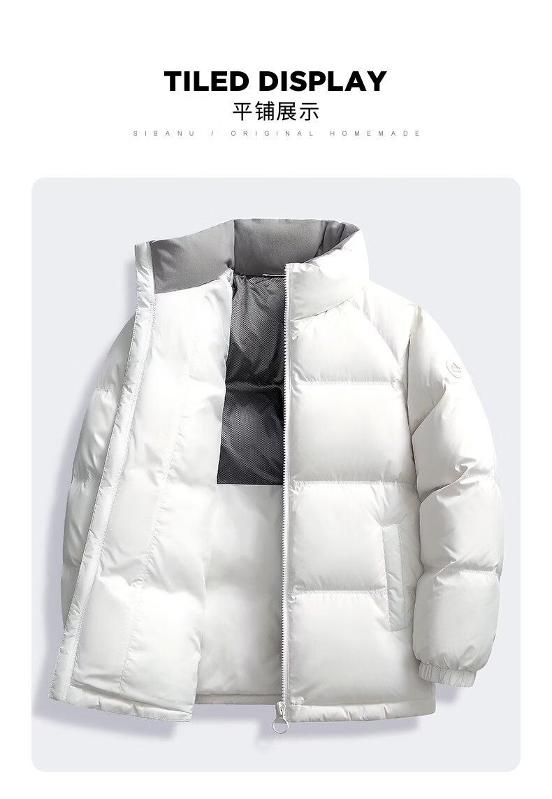 罗蒙(ROMON)加厚面包羽绒服男短款2025冬季新款立领保暖冬装白鸭绒外套 白色丨加厚保暖 新国标90%白鸭绒 L 175