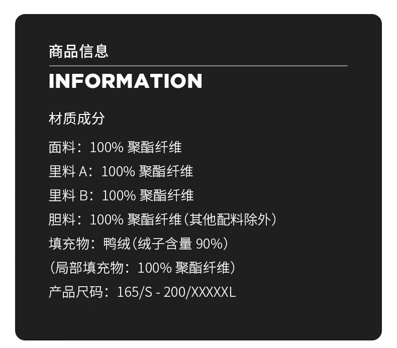 China (cm) 165 / 88-90 170 / 96-98 175 / 108-110 180 / 118-122 185 / 126-130