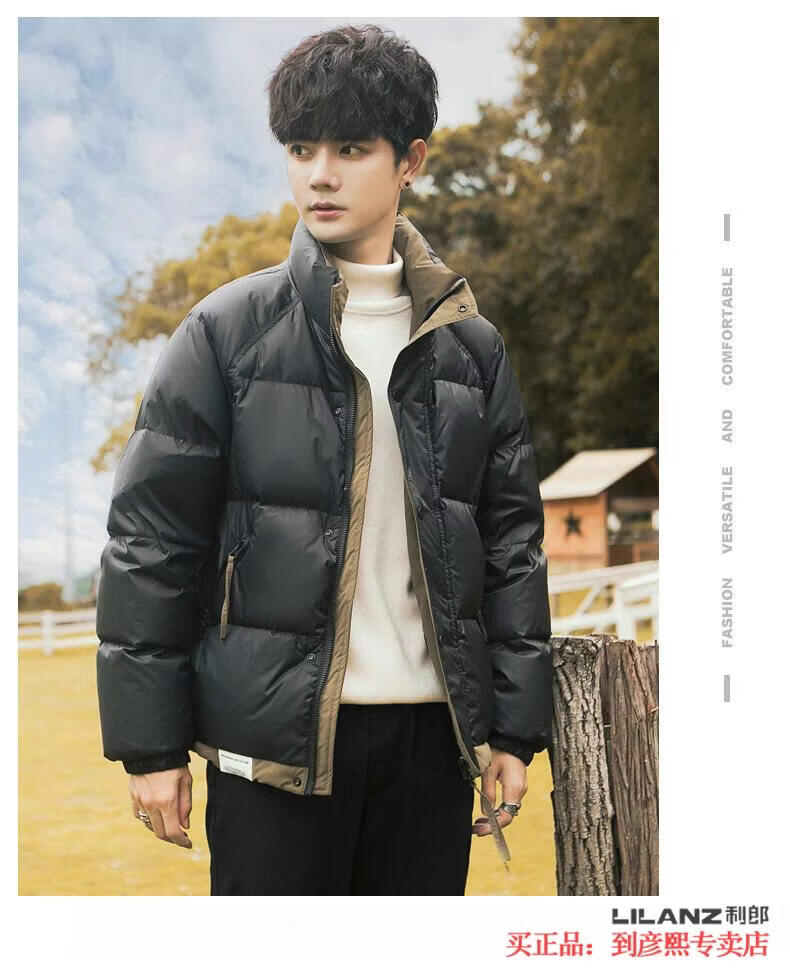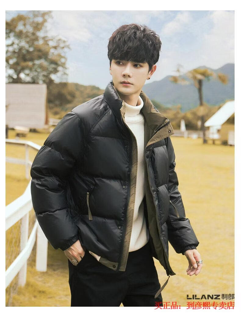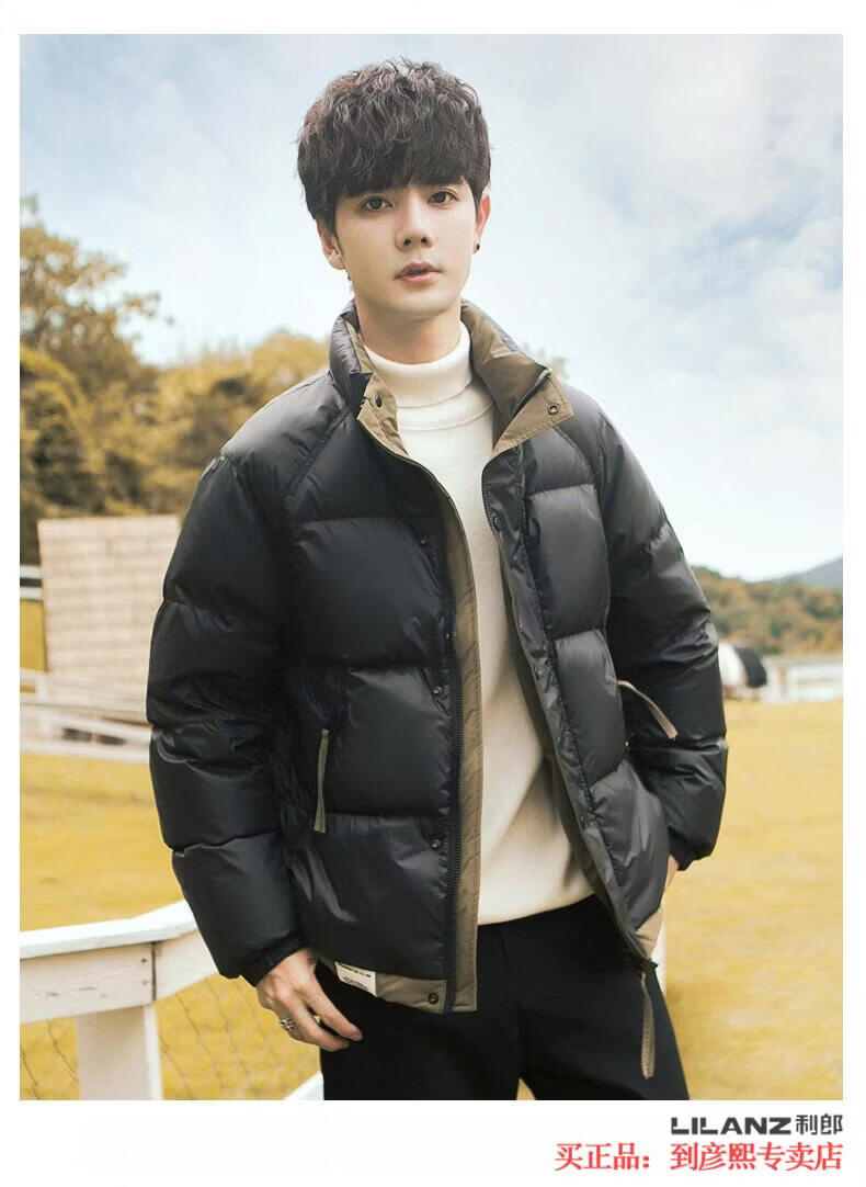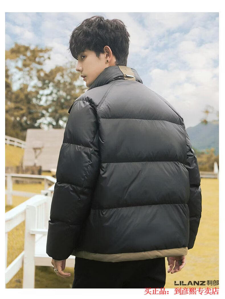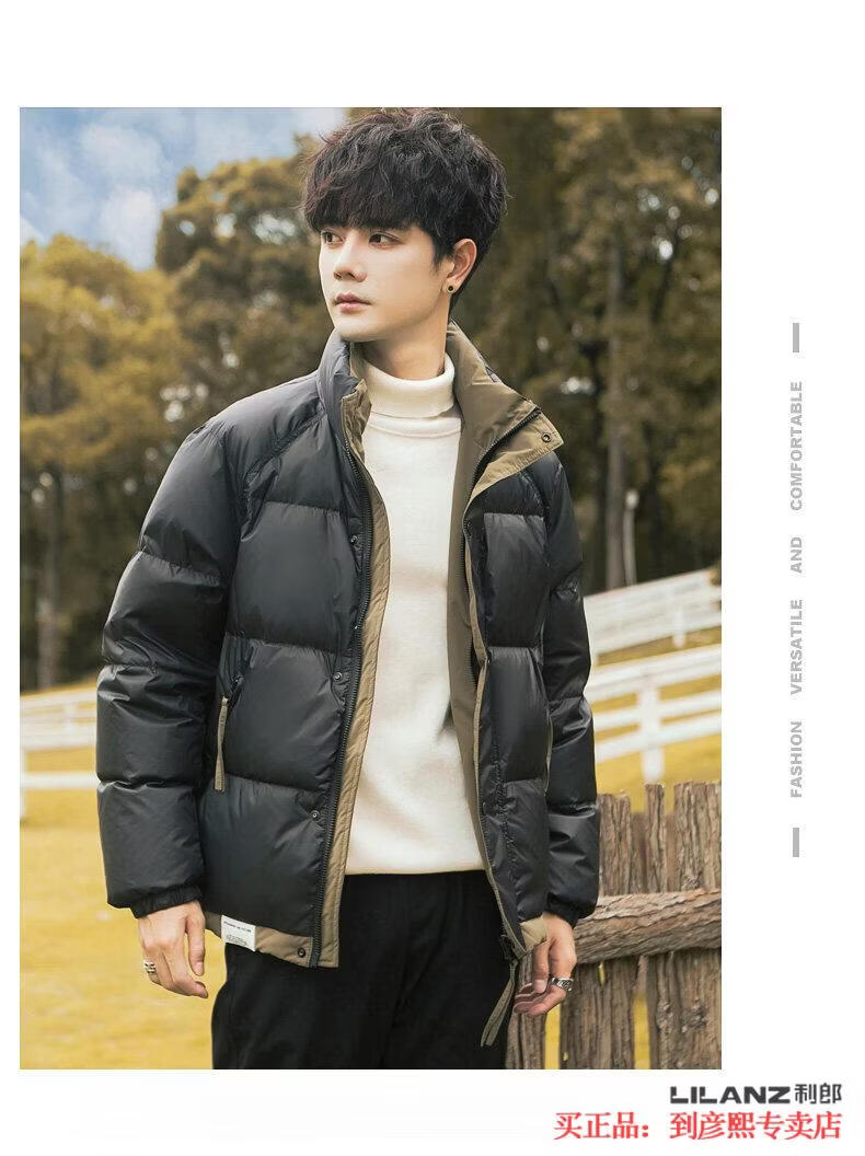 利郎(LILANZ)官方90白鸭绒羽绒服男冬季拼色立领2025年新款时尚面包服加厚冬装 黑色-旗舰款 M 【110斤以内】