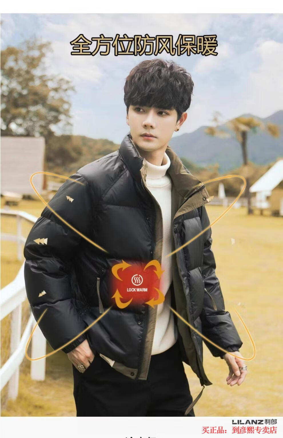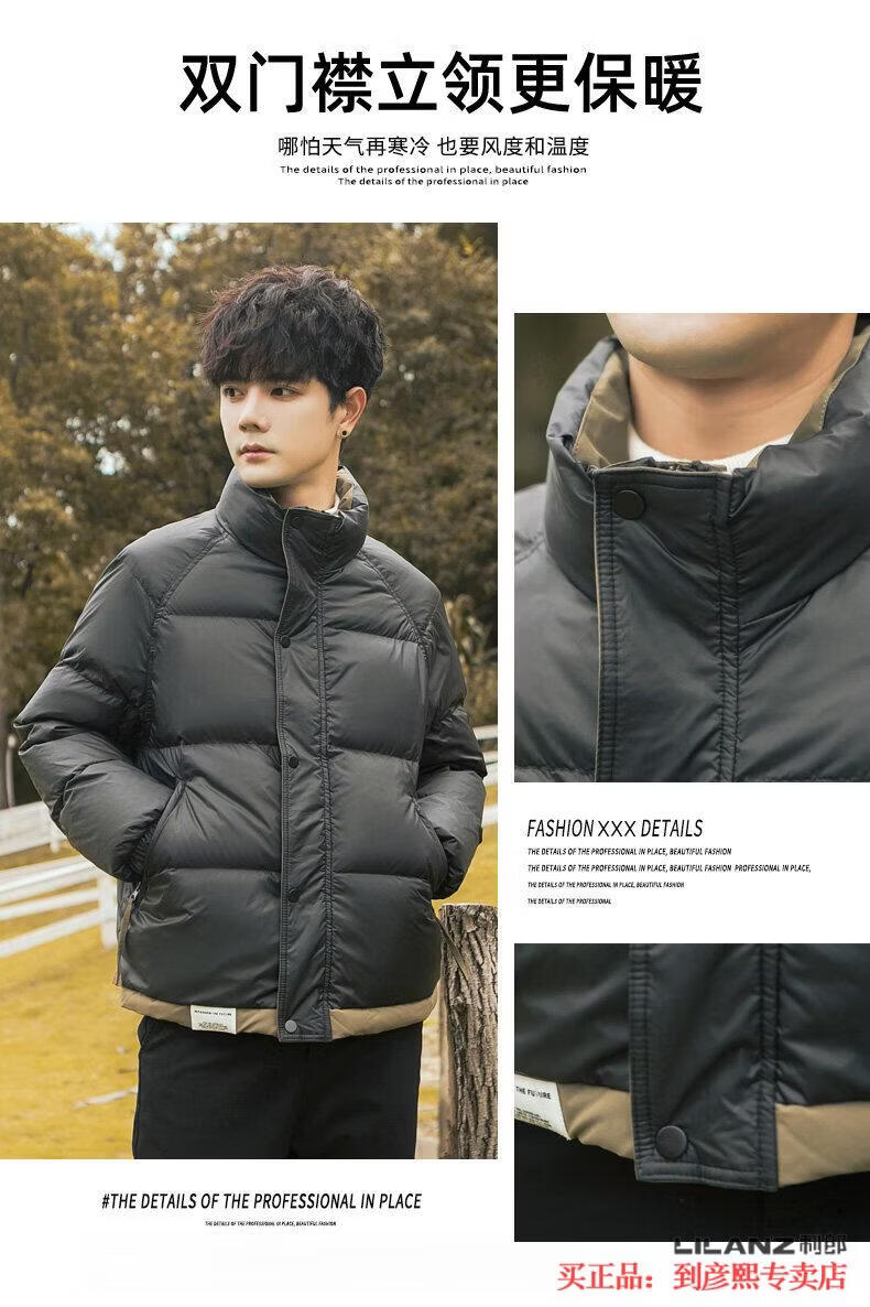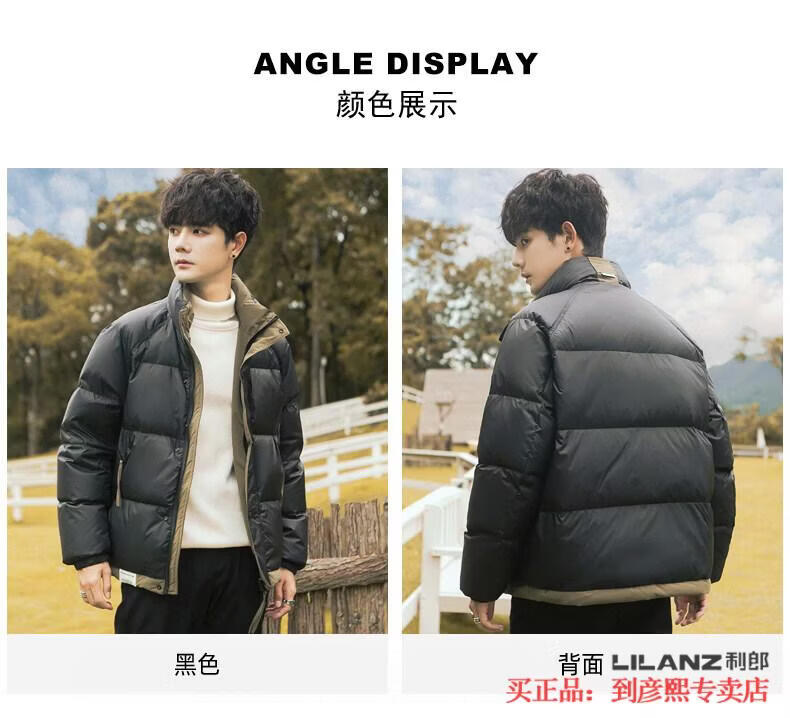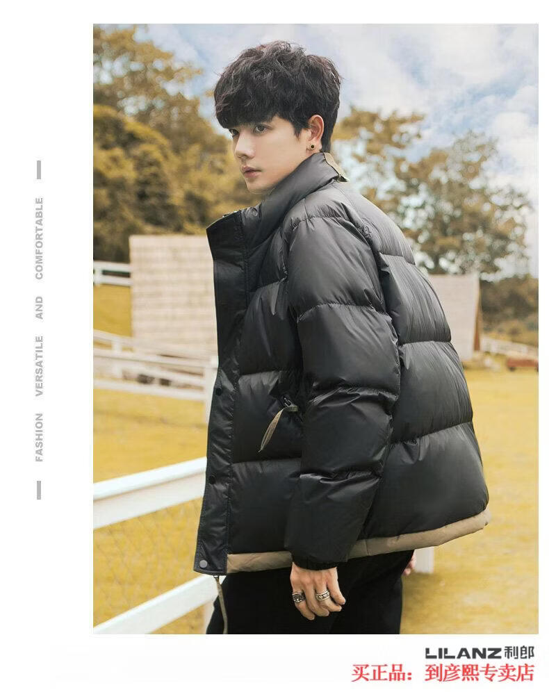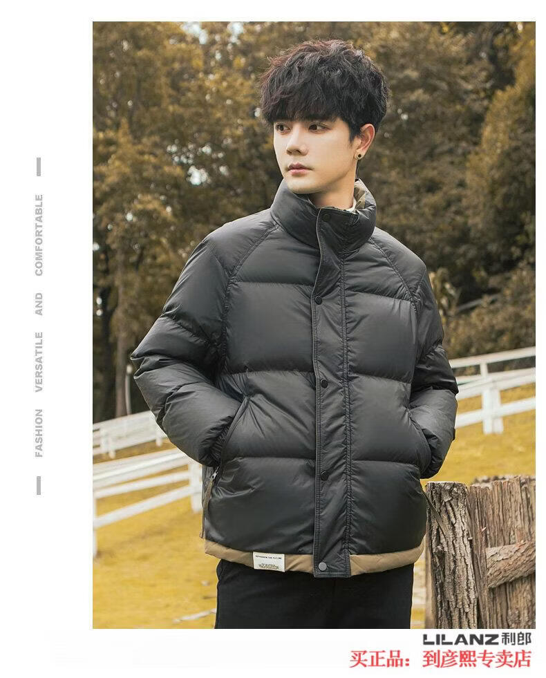 利郎(LILANZ)官方90白鸭绒羽绒服男冬季拼色立领2025年新款时尚面包服加厚冬装 黑色-旗舰款 M 【110斤以内】