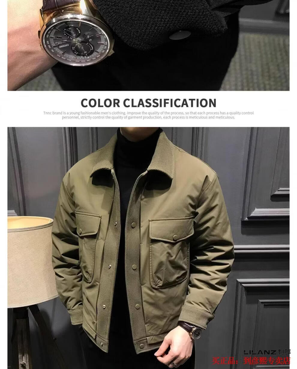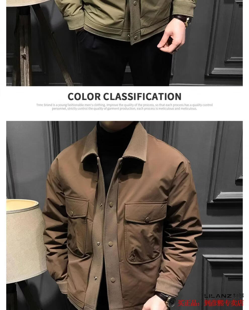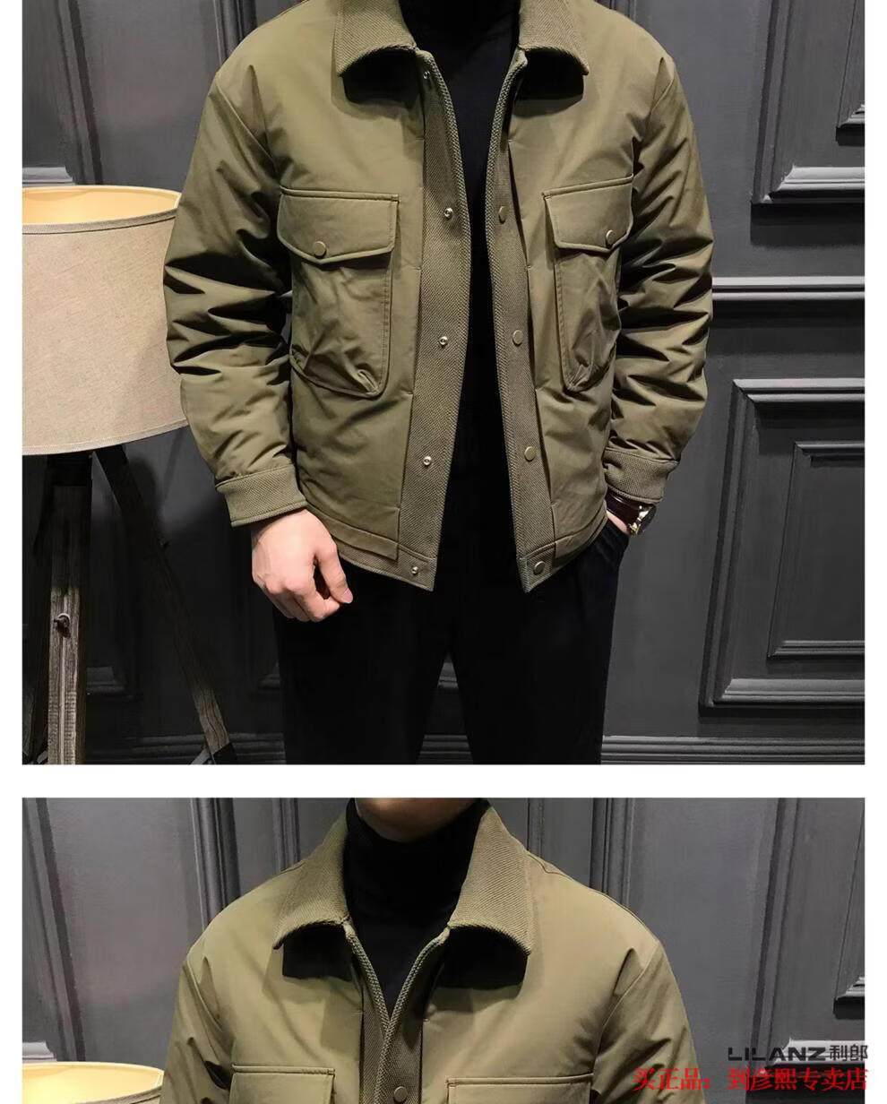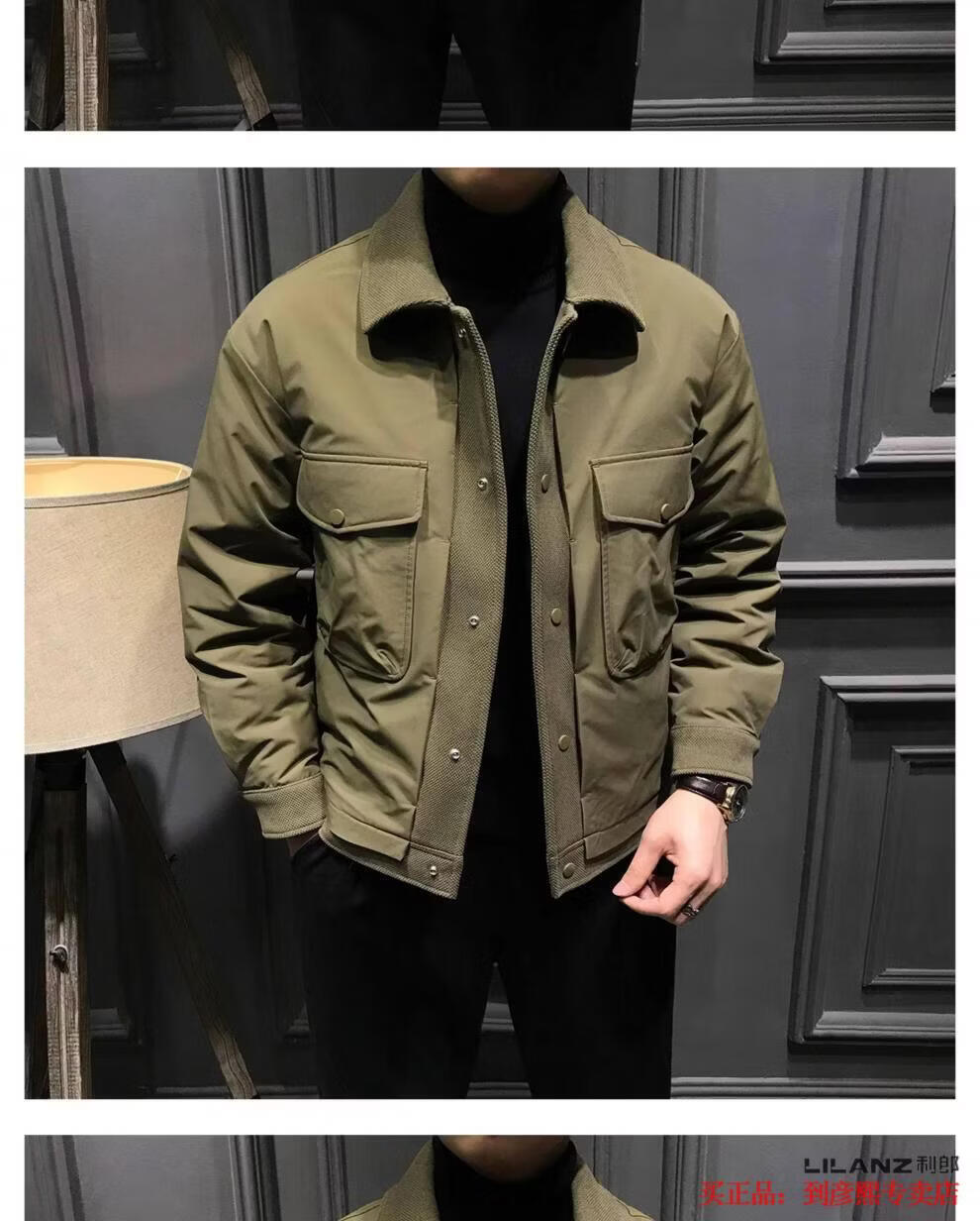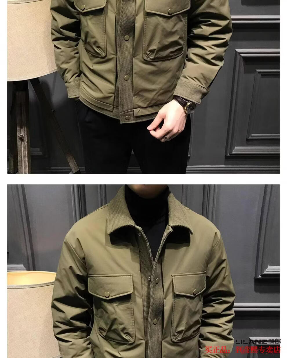 利郎(LILANZ)官方冬季90鸭绒内胆男士羽绒服秋冬2025新款翻领夹克痞帅商务男装 绿色-旗舰款 L