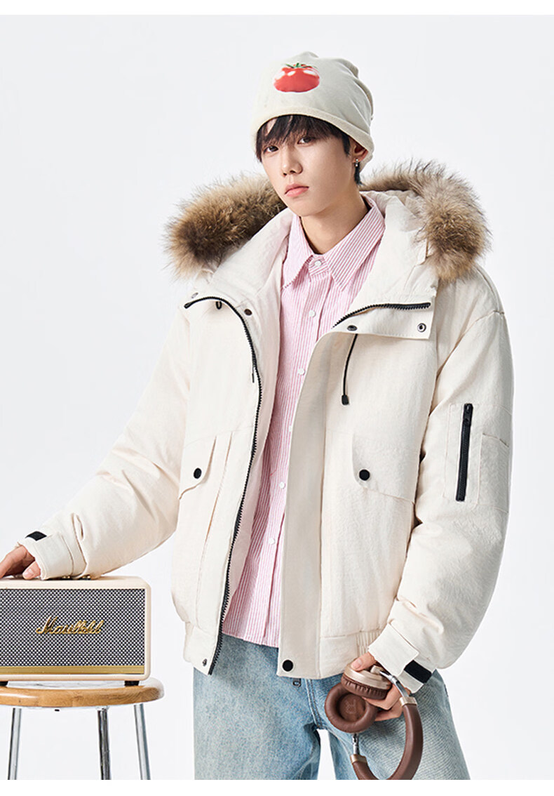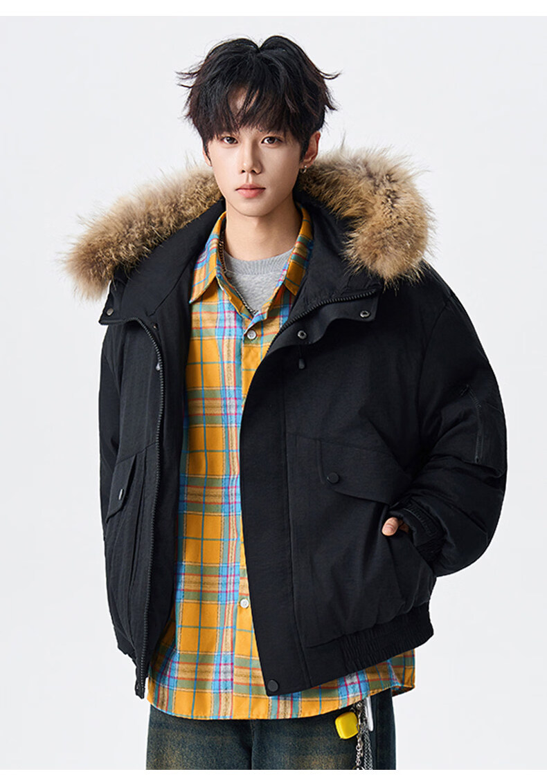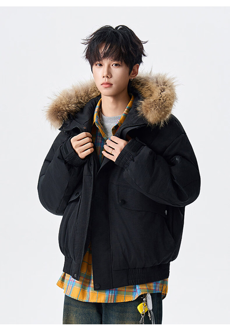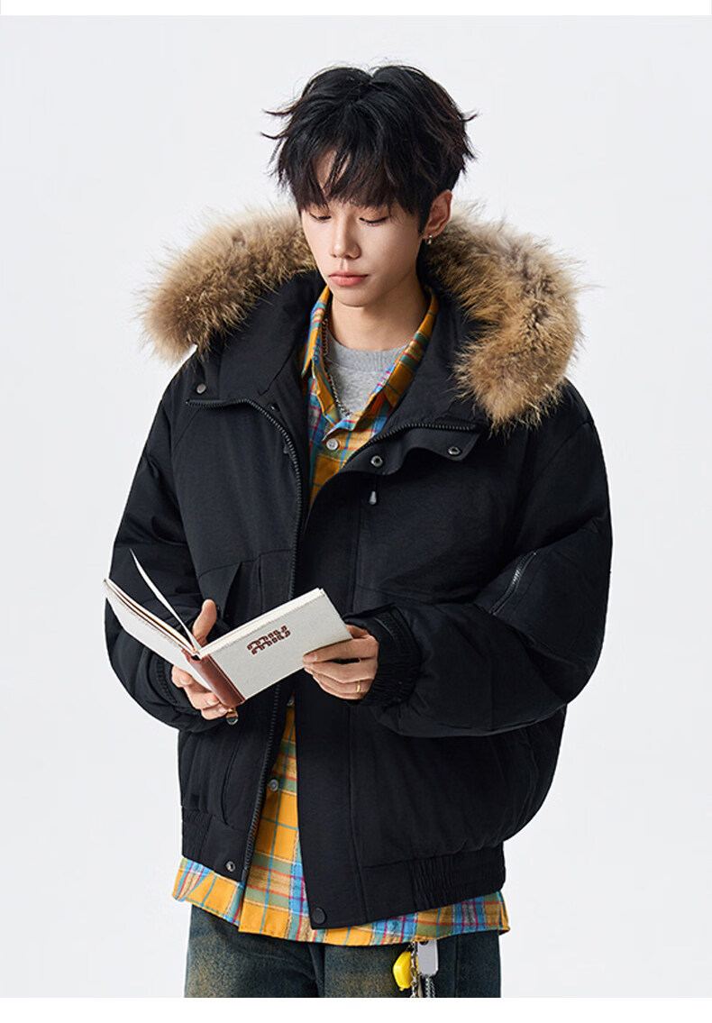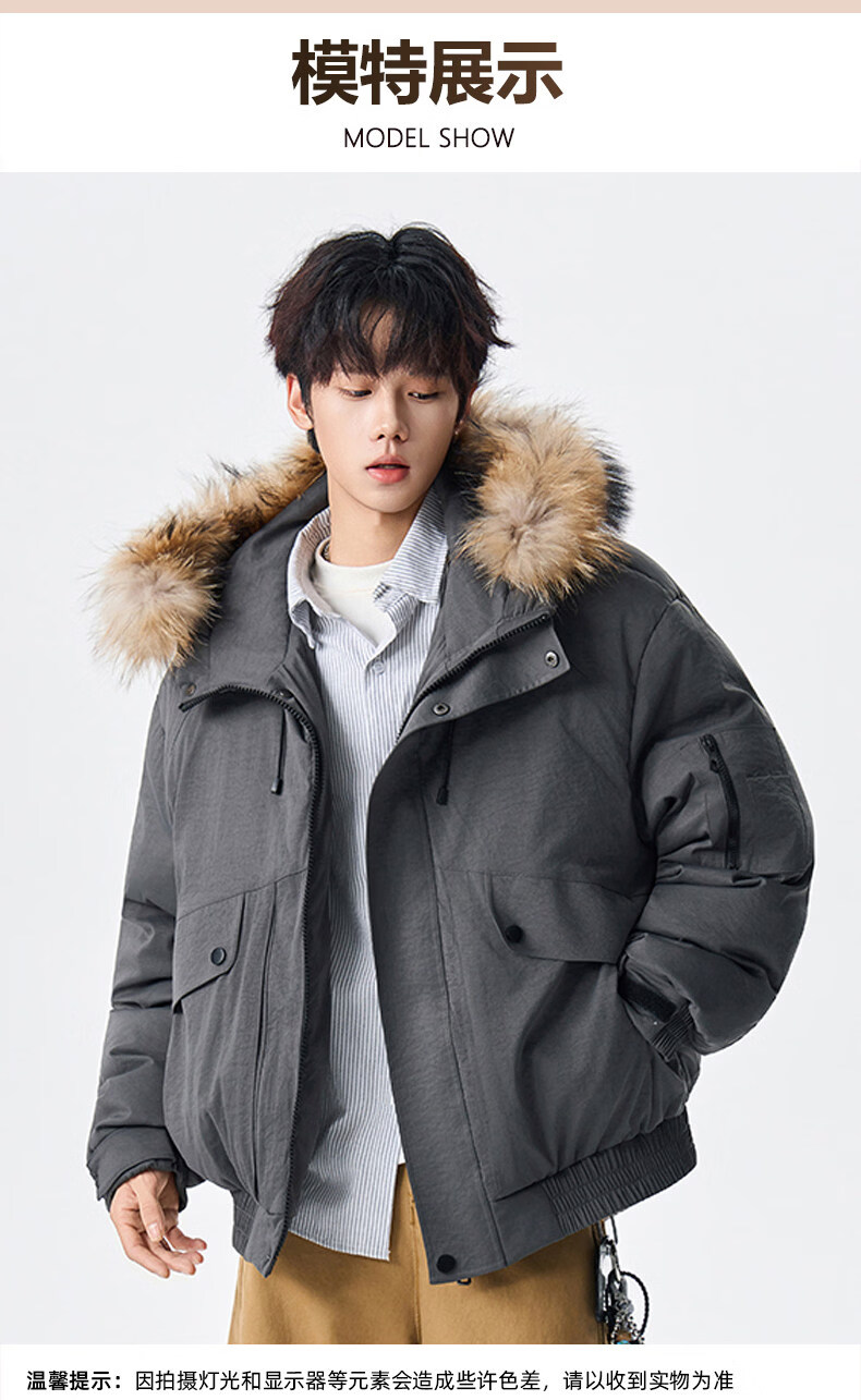 Viishow2025 новый пуховик мужской короткий зимний утолщенный парка со съемным большим меховым воротником рабочая куртка черный XL