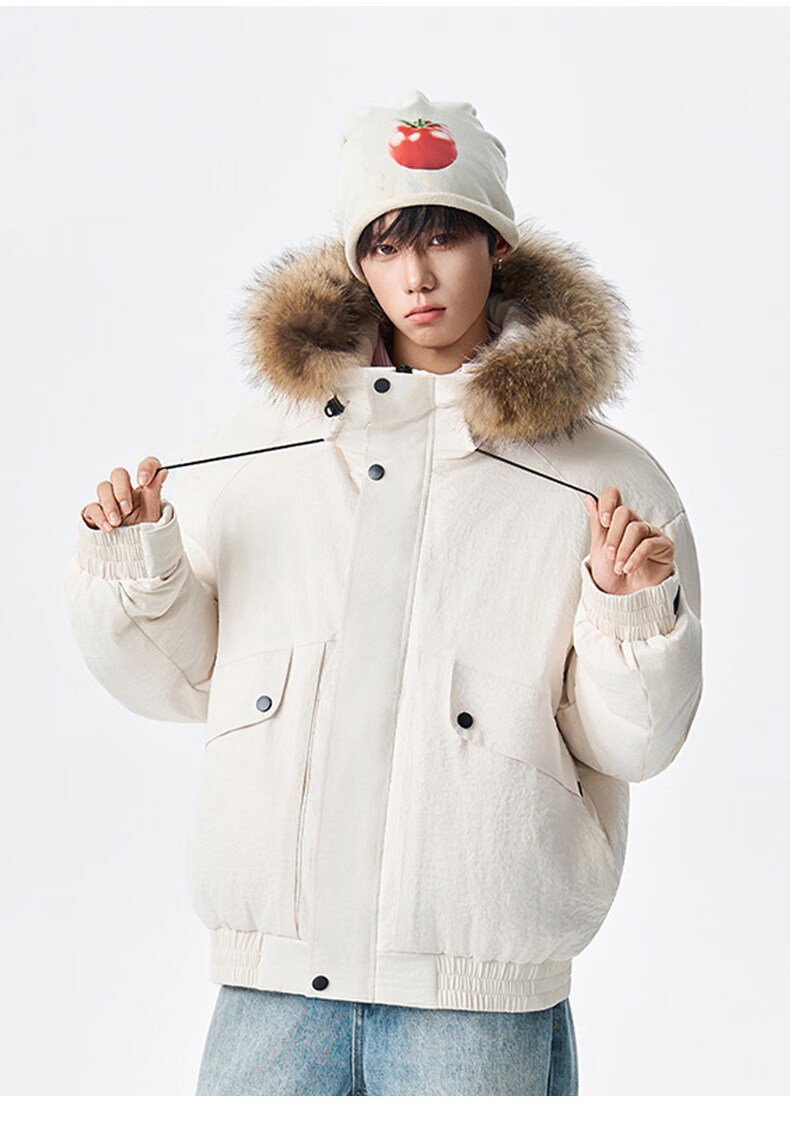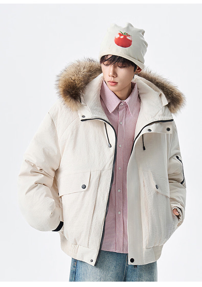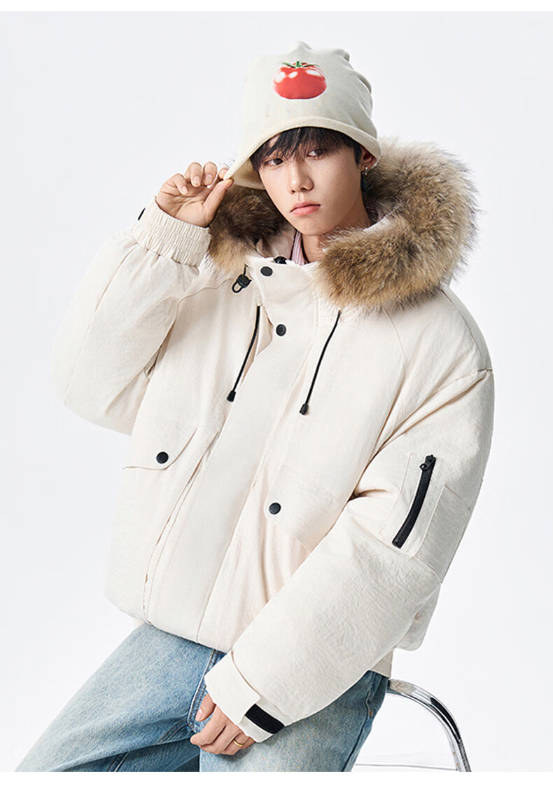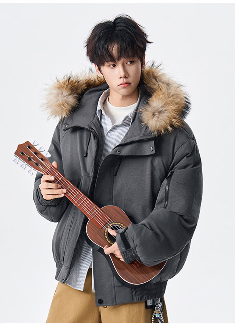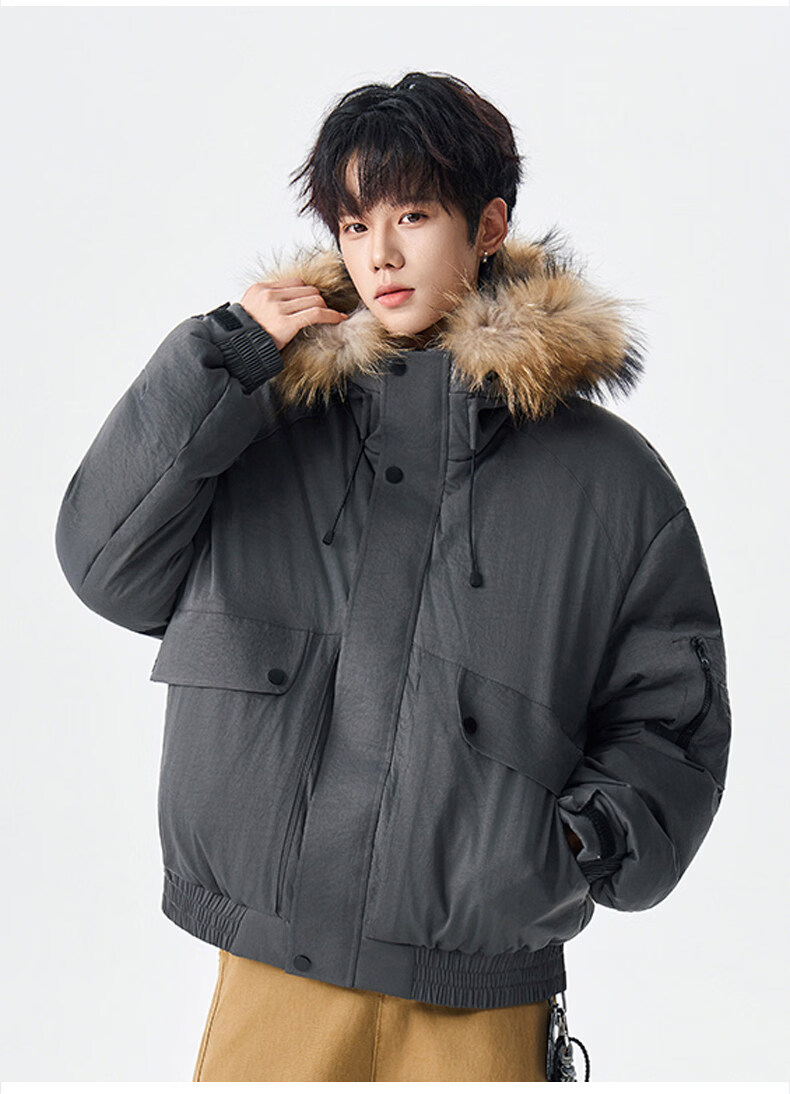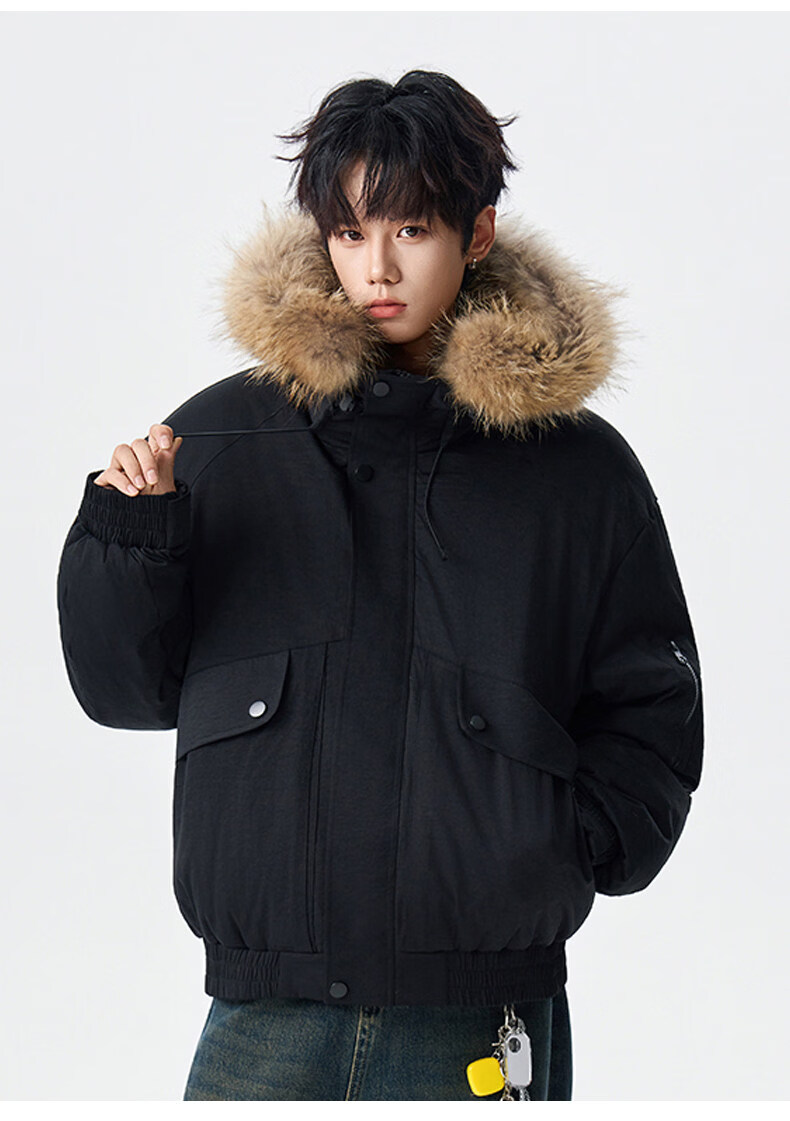 Viishow2025 новый пуховик мужской короткий зимний утолщенный парка со съемным большим меховым воротником рабочая куртка черный XL