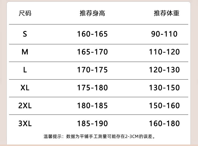 China (cm) 165 / 88-90 170 / 96-98 175 / 108-110 180 / 118-122 185 / 126-130