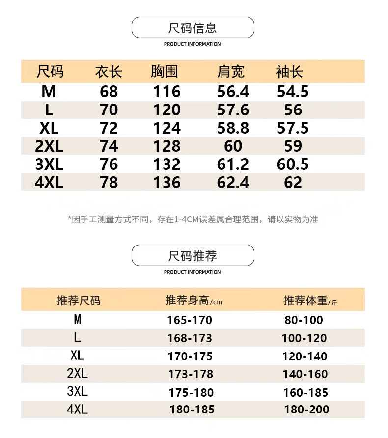 China (cm) 165 / 88-90 170 / 96-98 175 / 108-110 180 / 118-122 185 / 126-130
