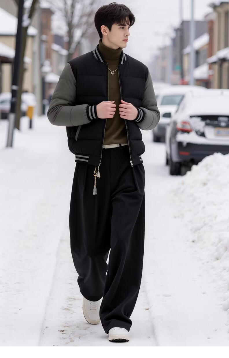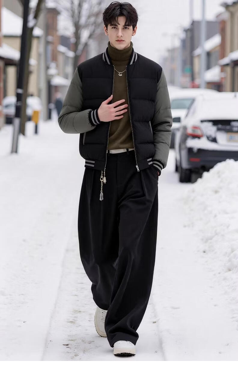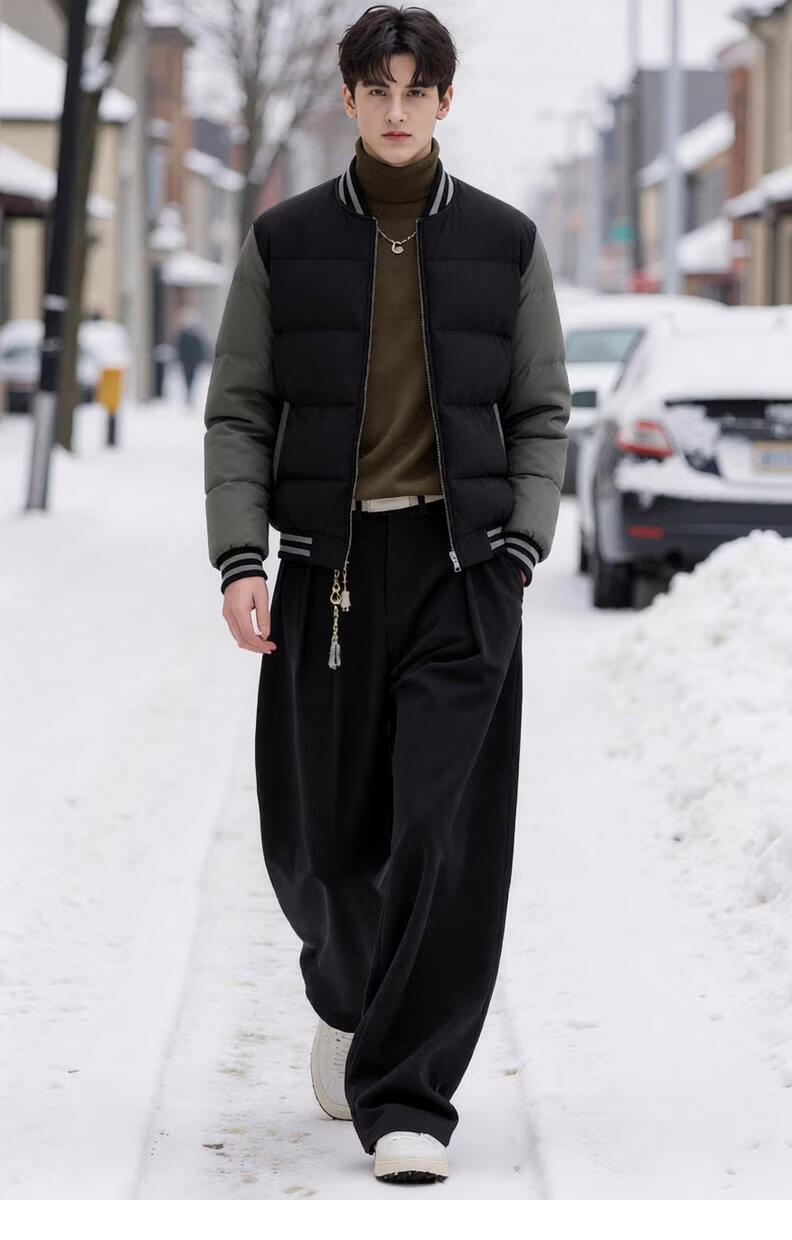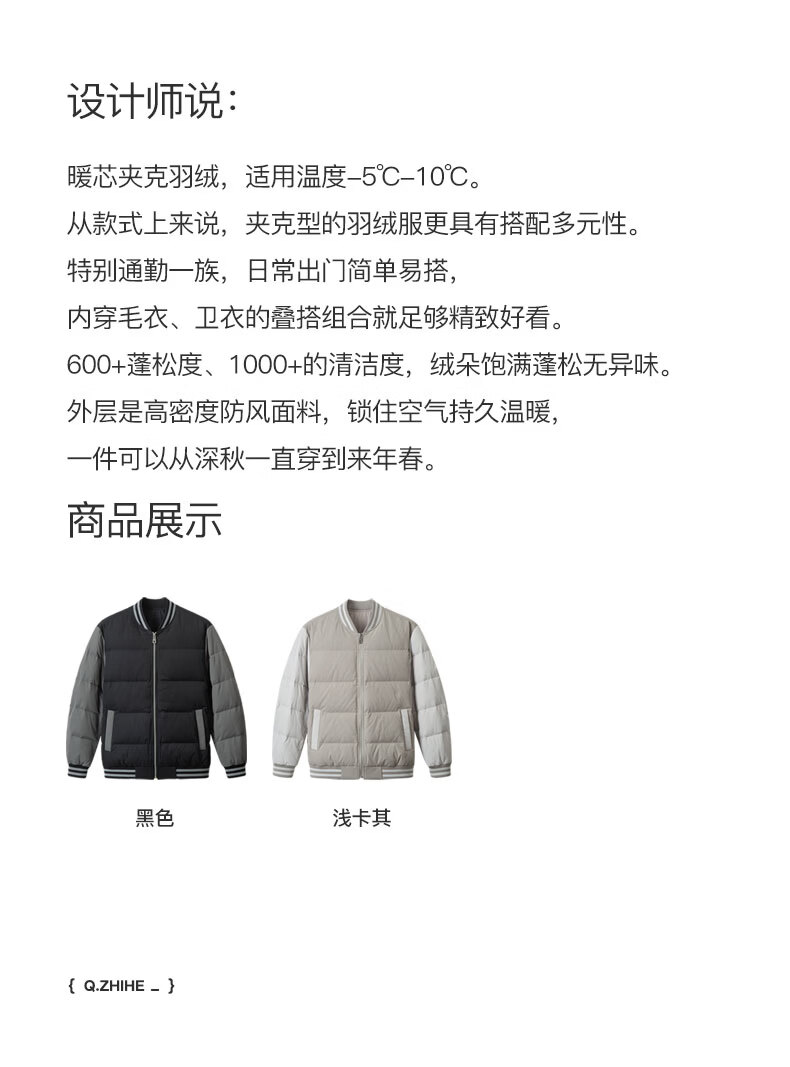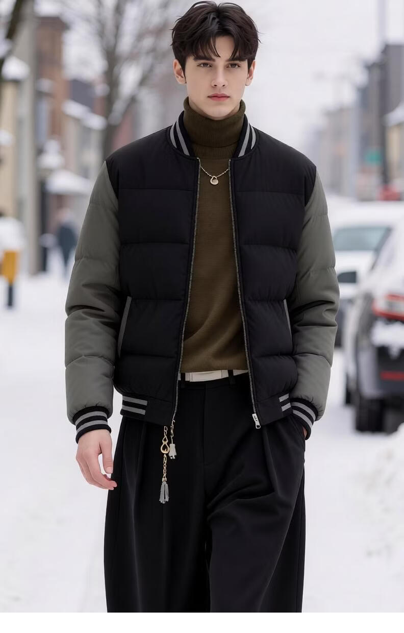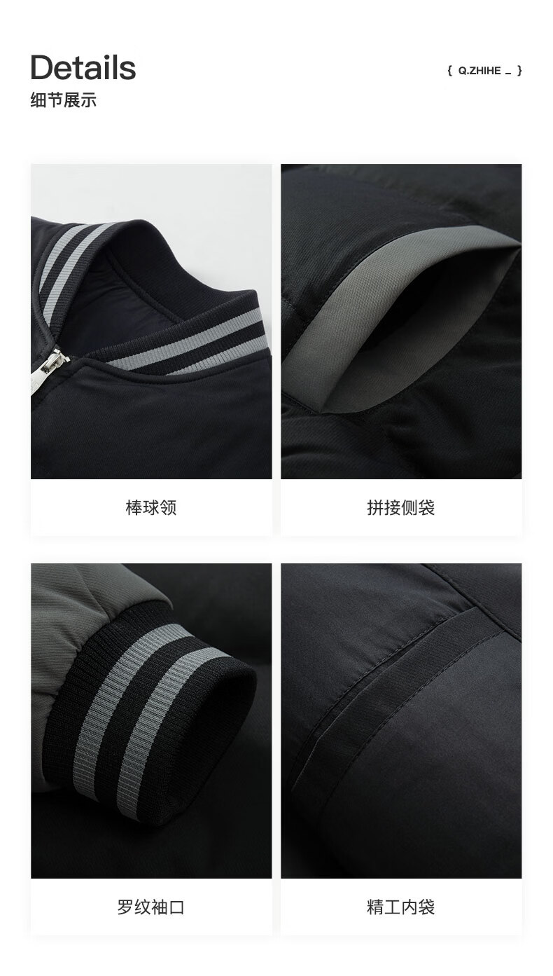 Q ZHIHE短款拼接撞色羽绒服男士2025冬季新款棒球领休闲百搭保暖外套男 01D黑色 XL