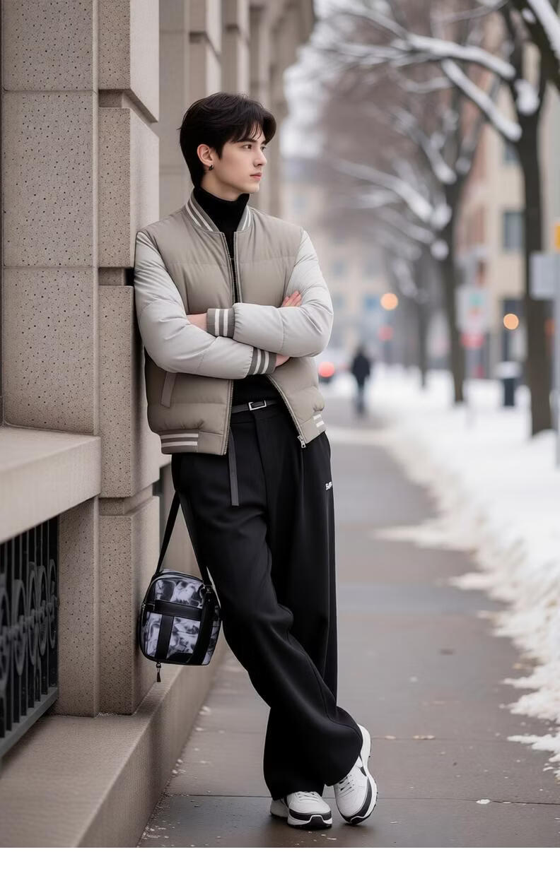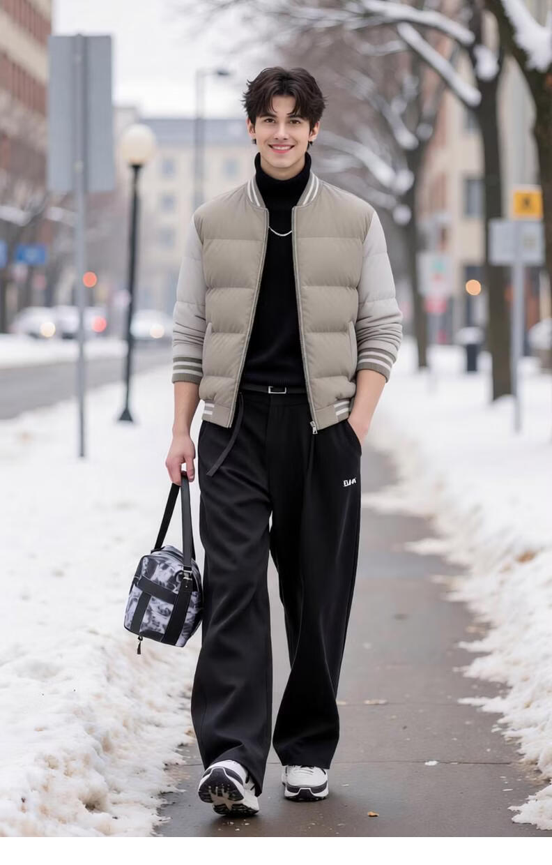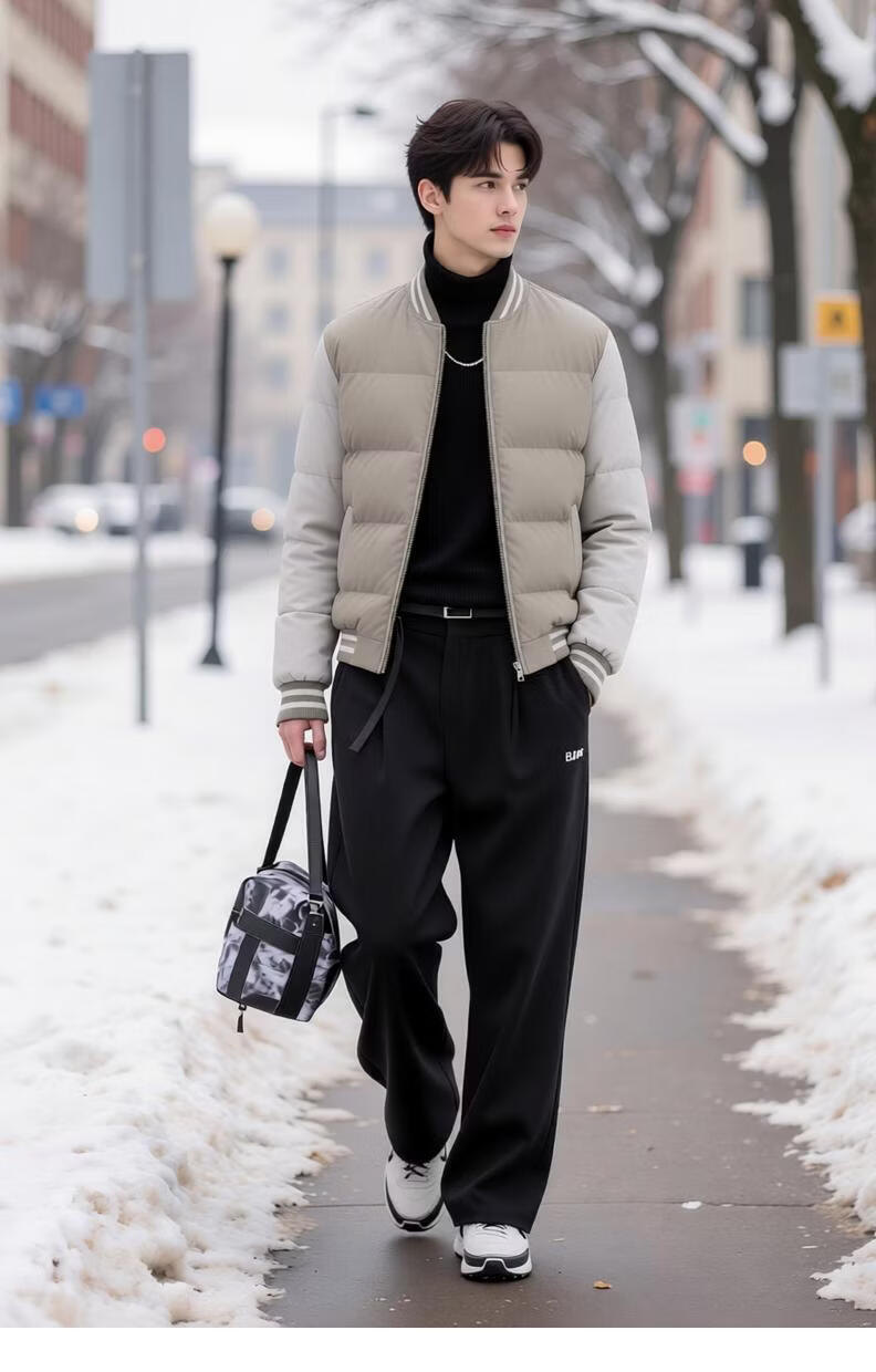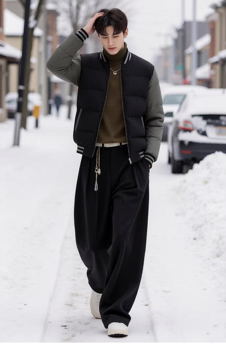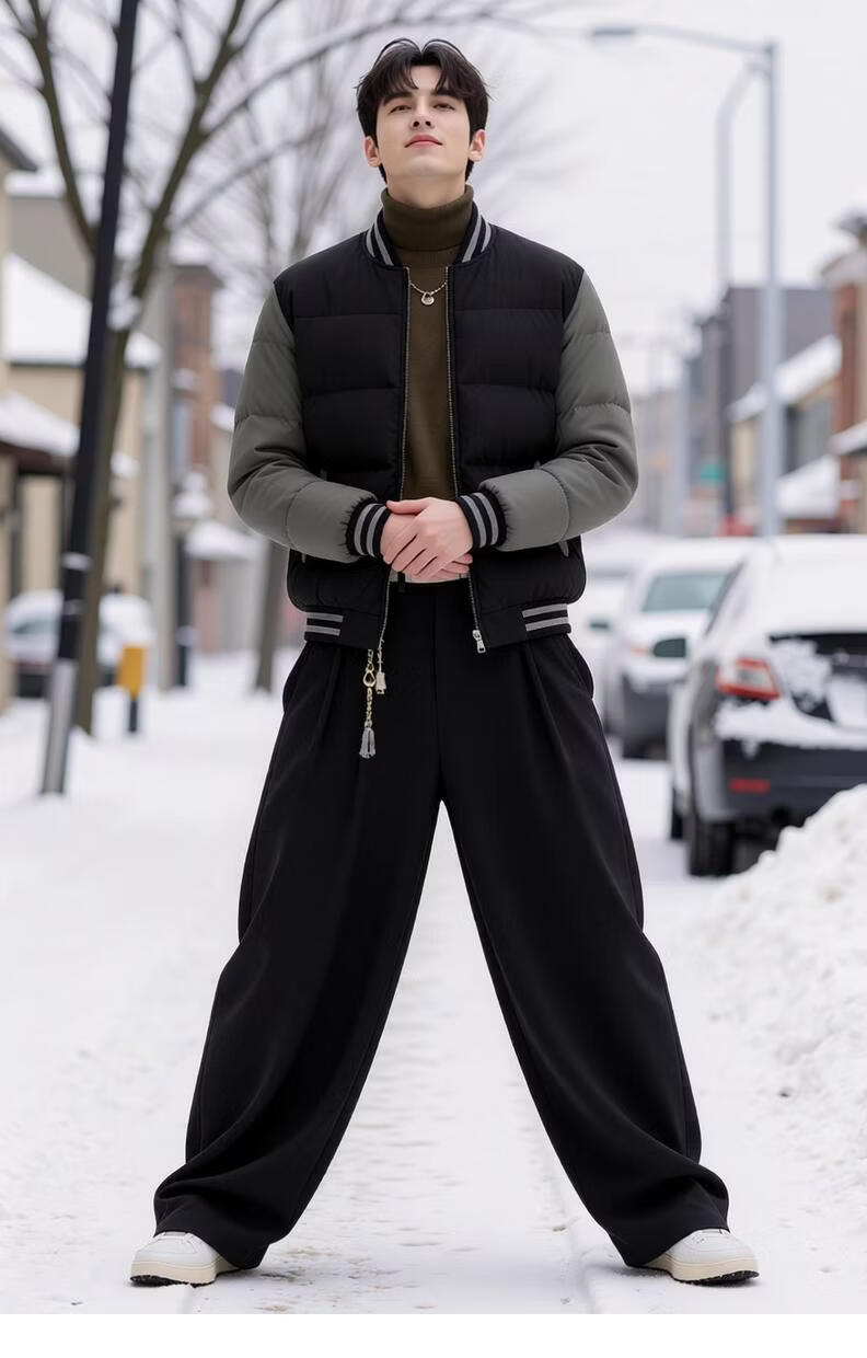 Q ZHIHE短款拼接撞色羽绒服男士2025冬季新款棒球领休闲百搭保暖外套男 01D黑色 XL