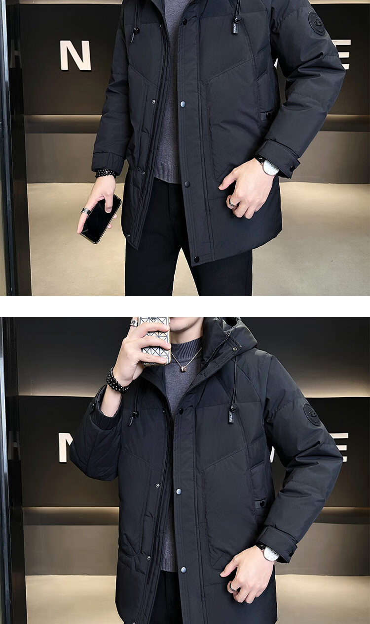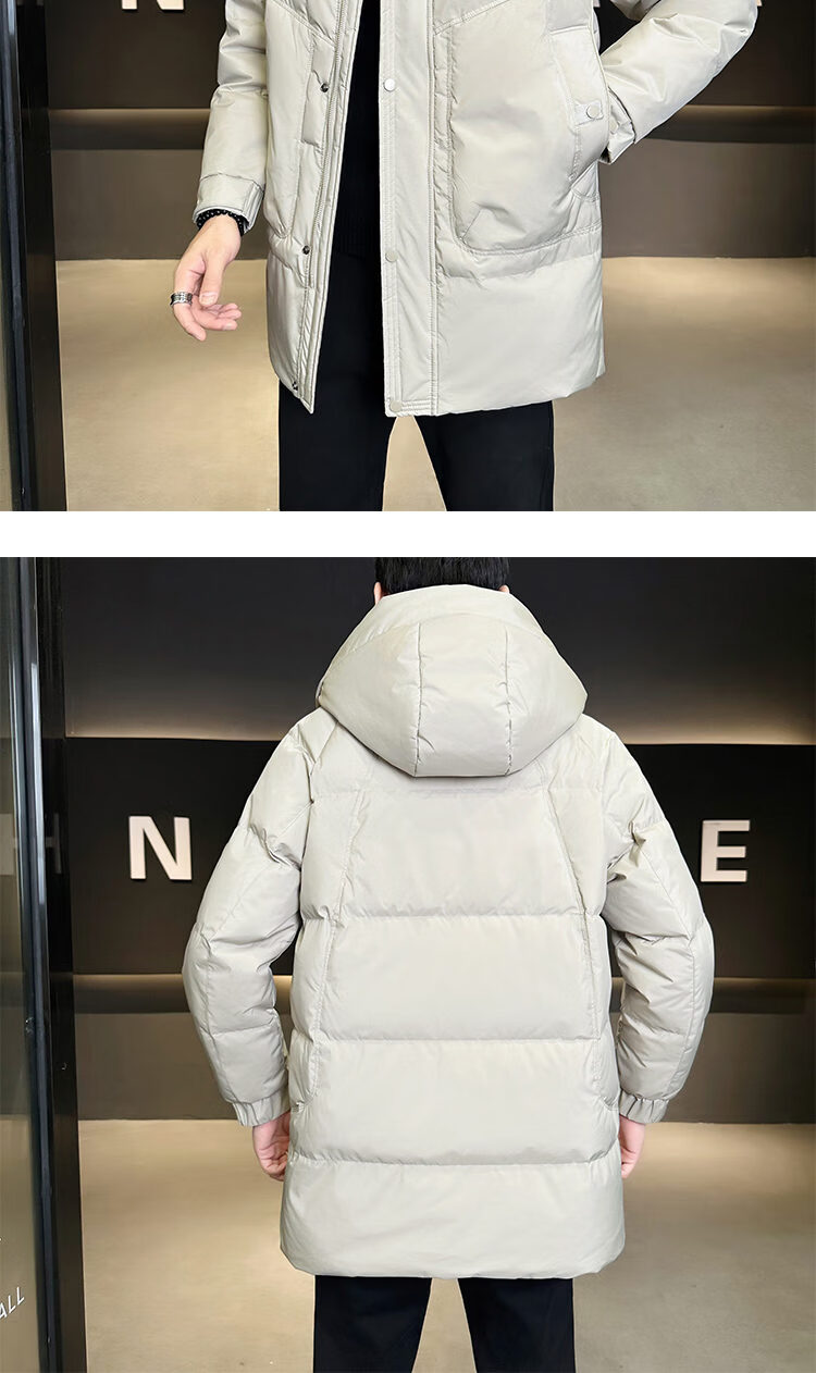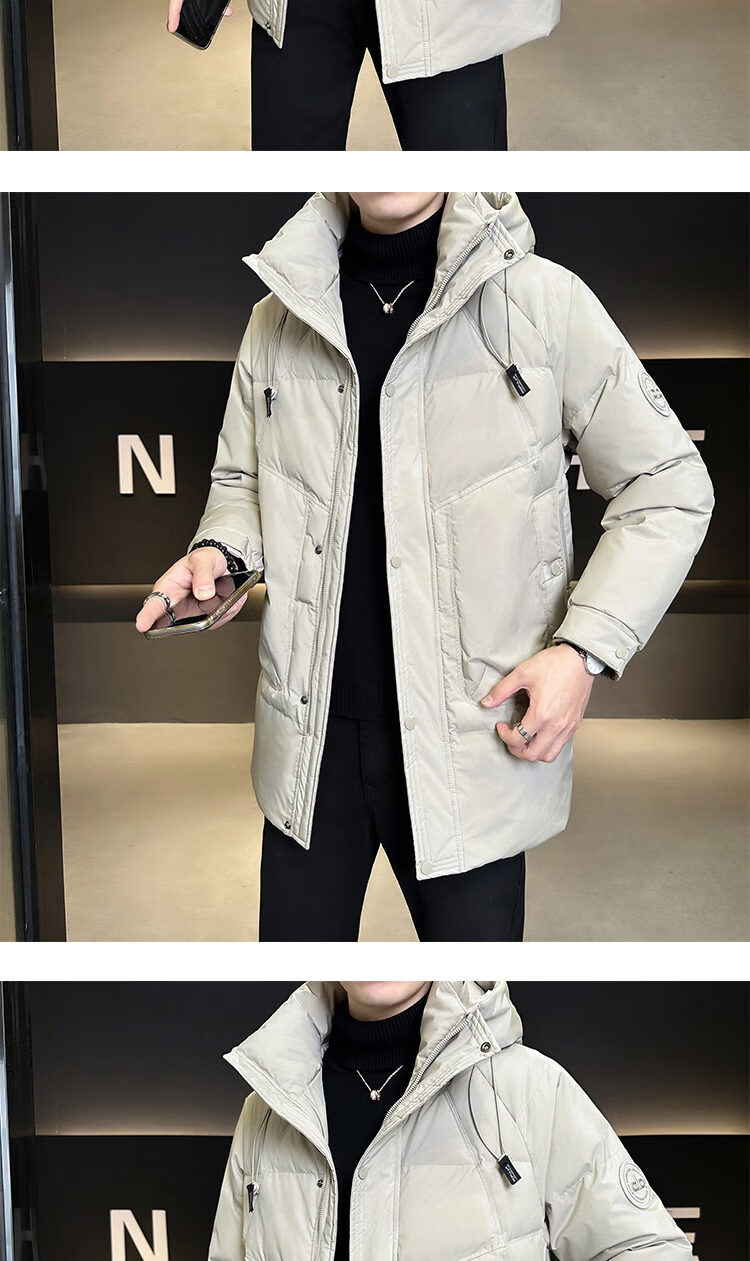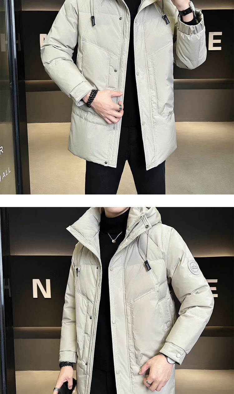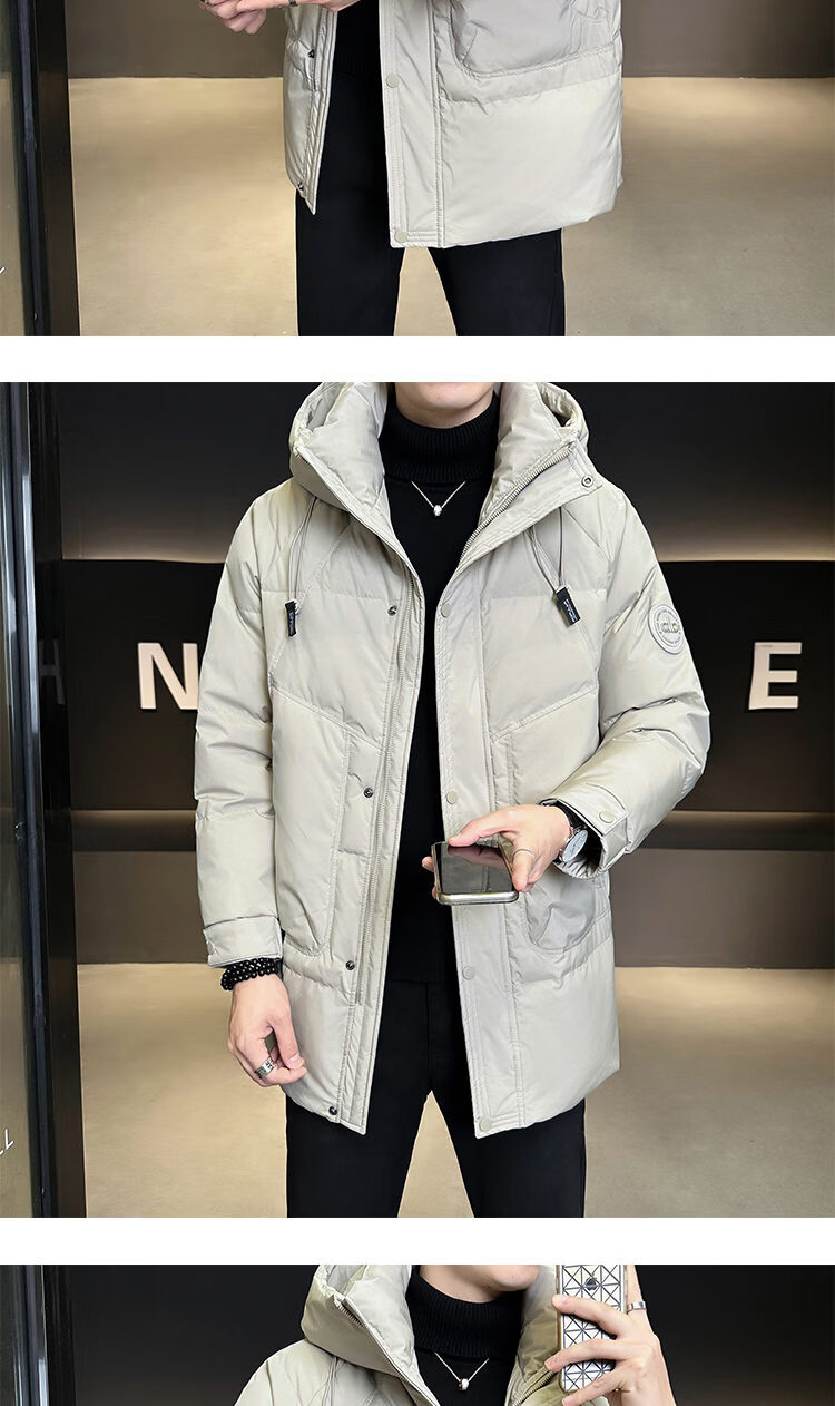 JEEP SPIRIT中长款羽绒服男装冬季2025新款潮牌加厚保暖帅气连帽鸭绒防寒外套 白灰色 XL