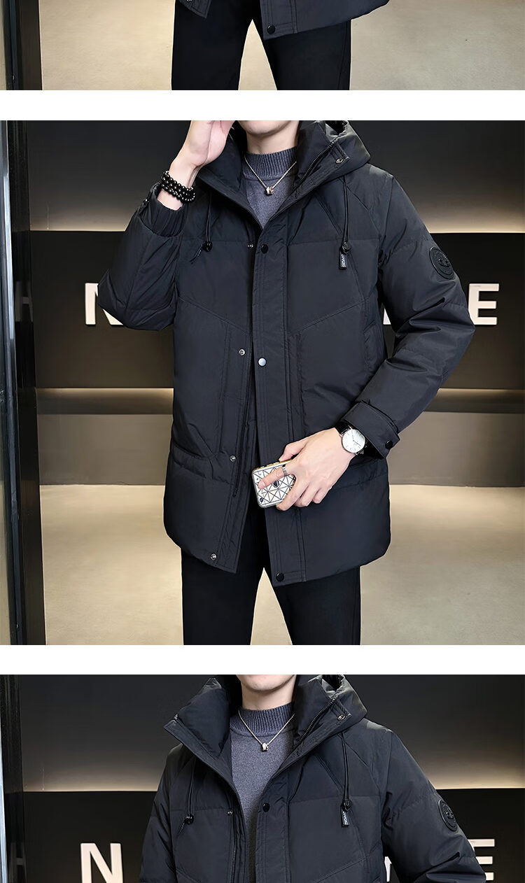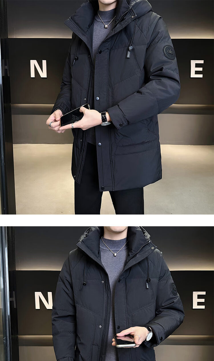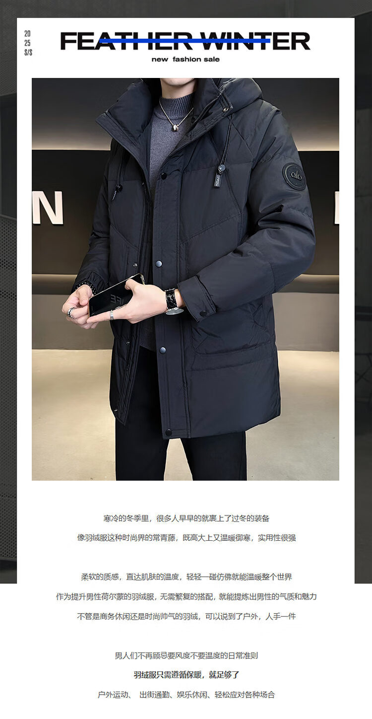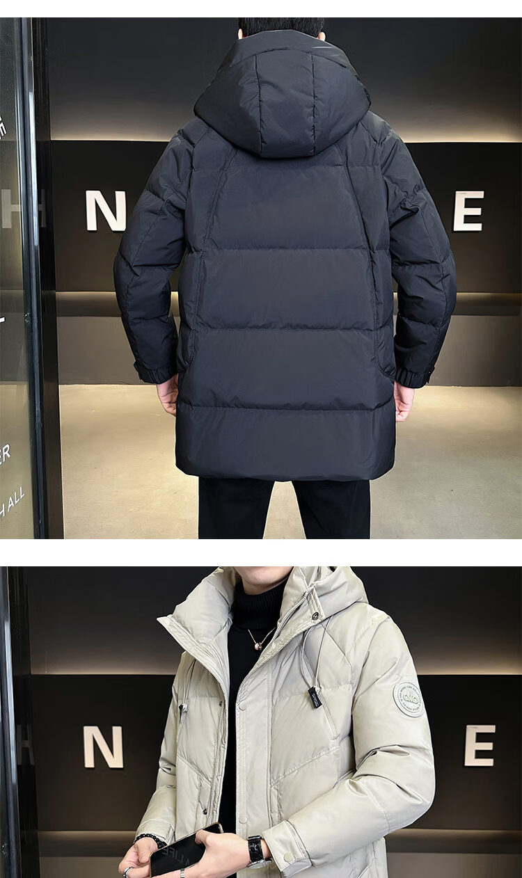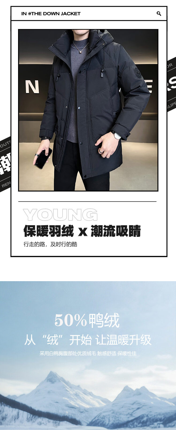 JEEP SPIRIT中长款羽绒服男装冬季2025新款潮牌加厚保暖帅气连帽鸭绒防寒外套 白灰色 XL