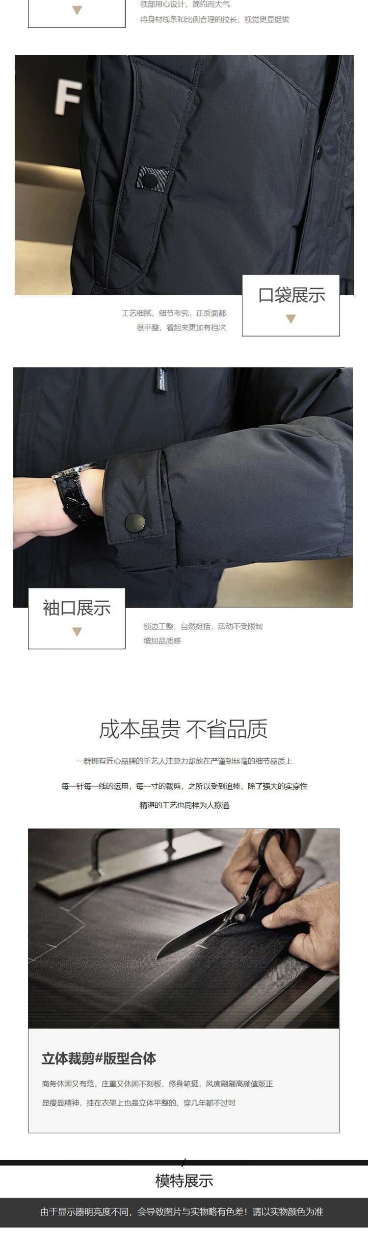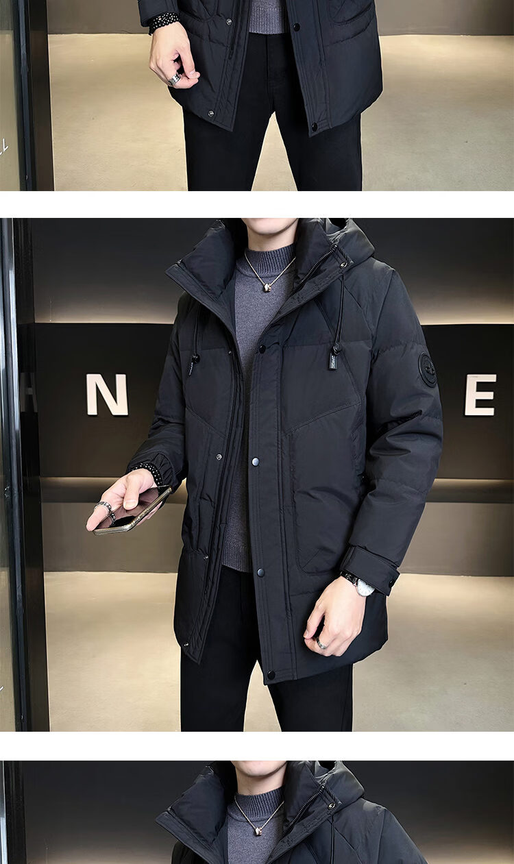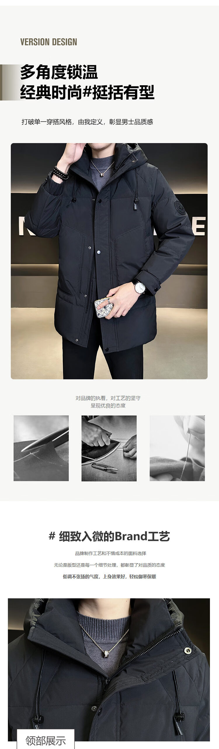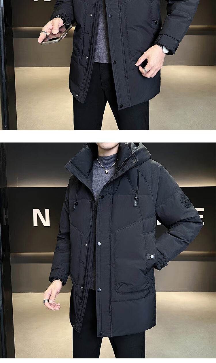 JEEP SPIRIT中长款羽绒服男装冬季2025新款潮牌加厚保暖帅气连帽鸭绒防寒外套 白灰色 XL