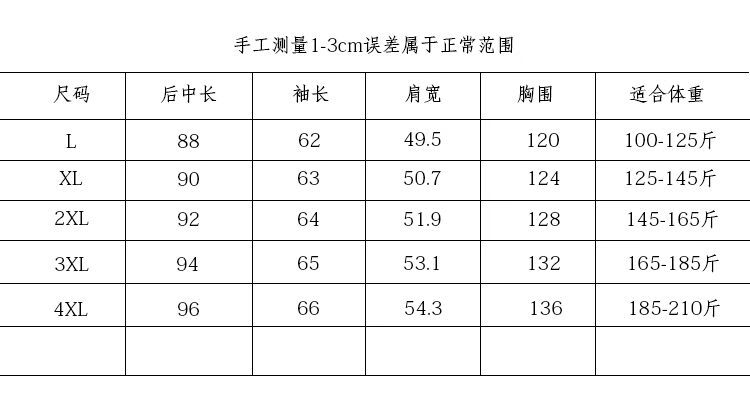 China (cm) 165 / 88-90 170 / 96-98 175 / 108-110 180 / 118-122 185 / 126-130