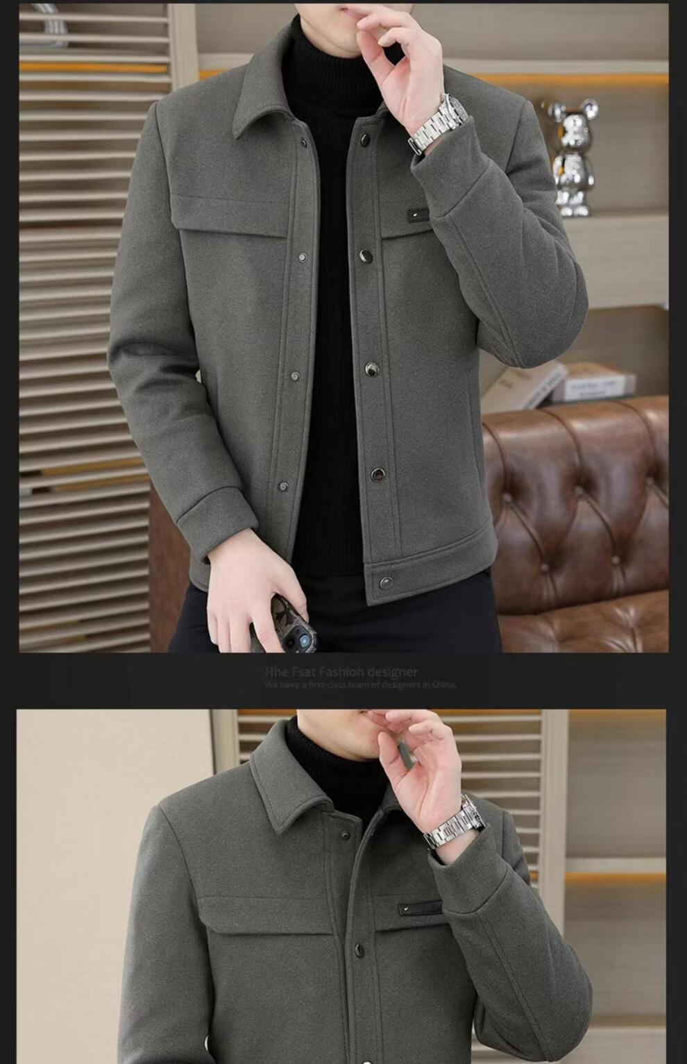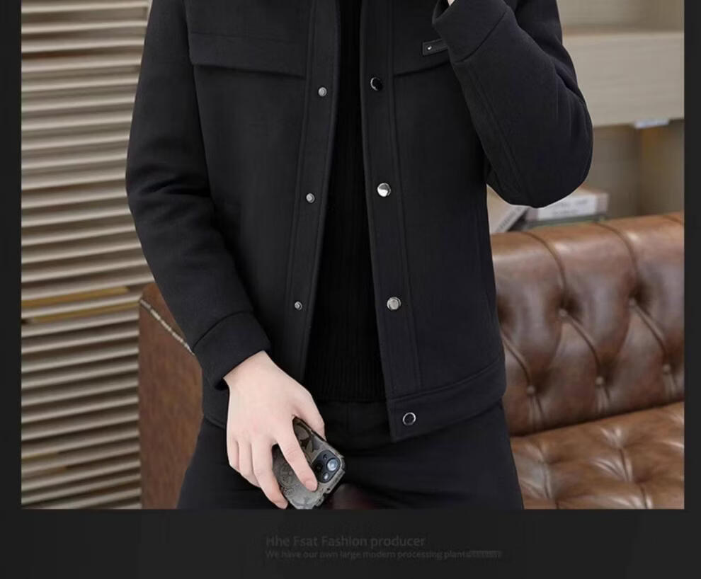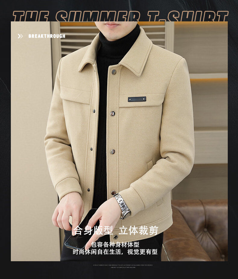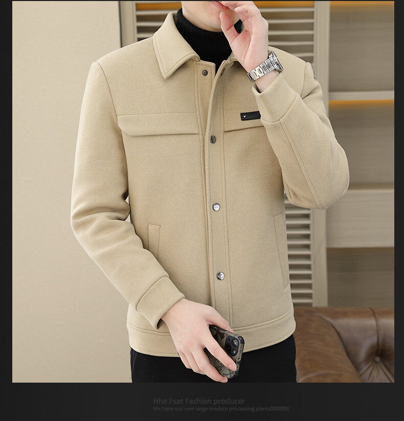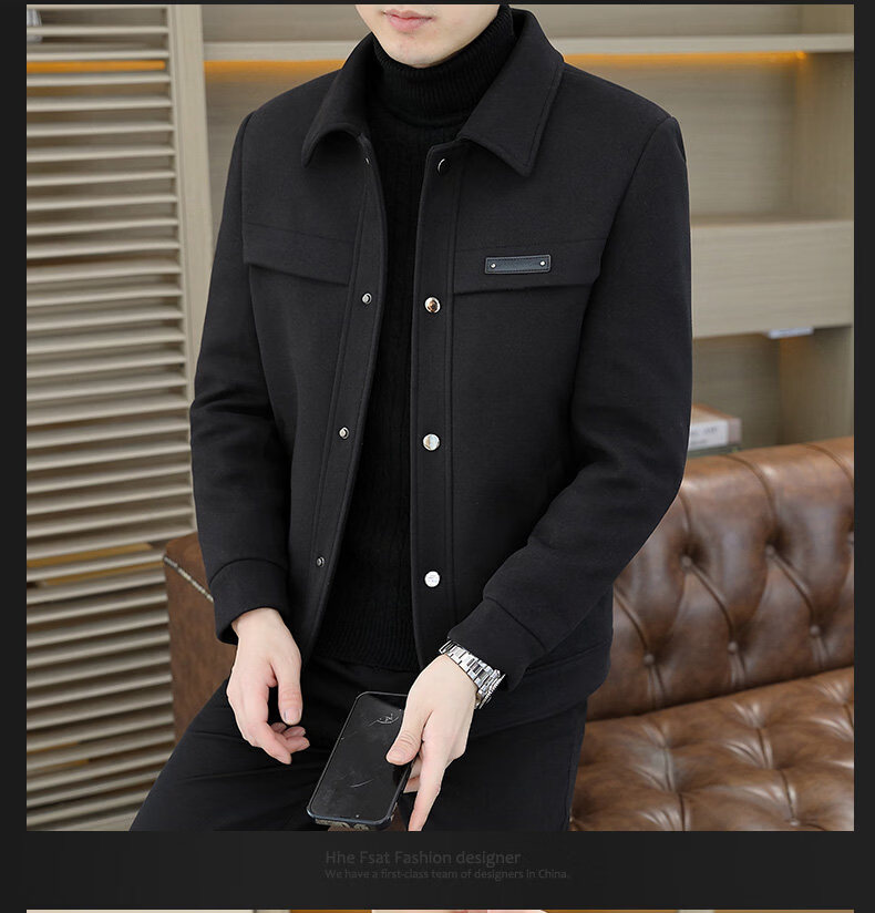 罗蒙(ROMON)羽绒服男款秋冬季2025新款翻领行政夹克男装高端商务休闲毛呢外套 灰色 M