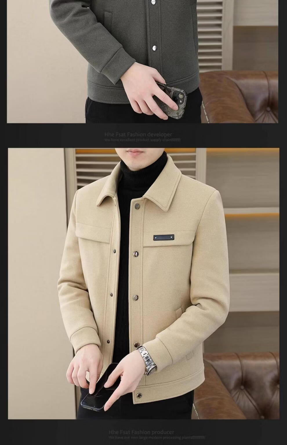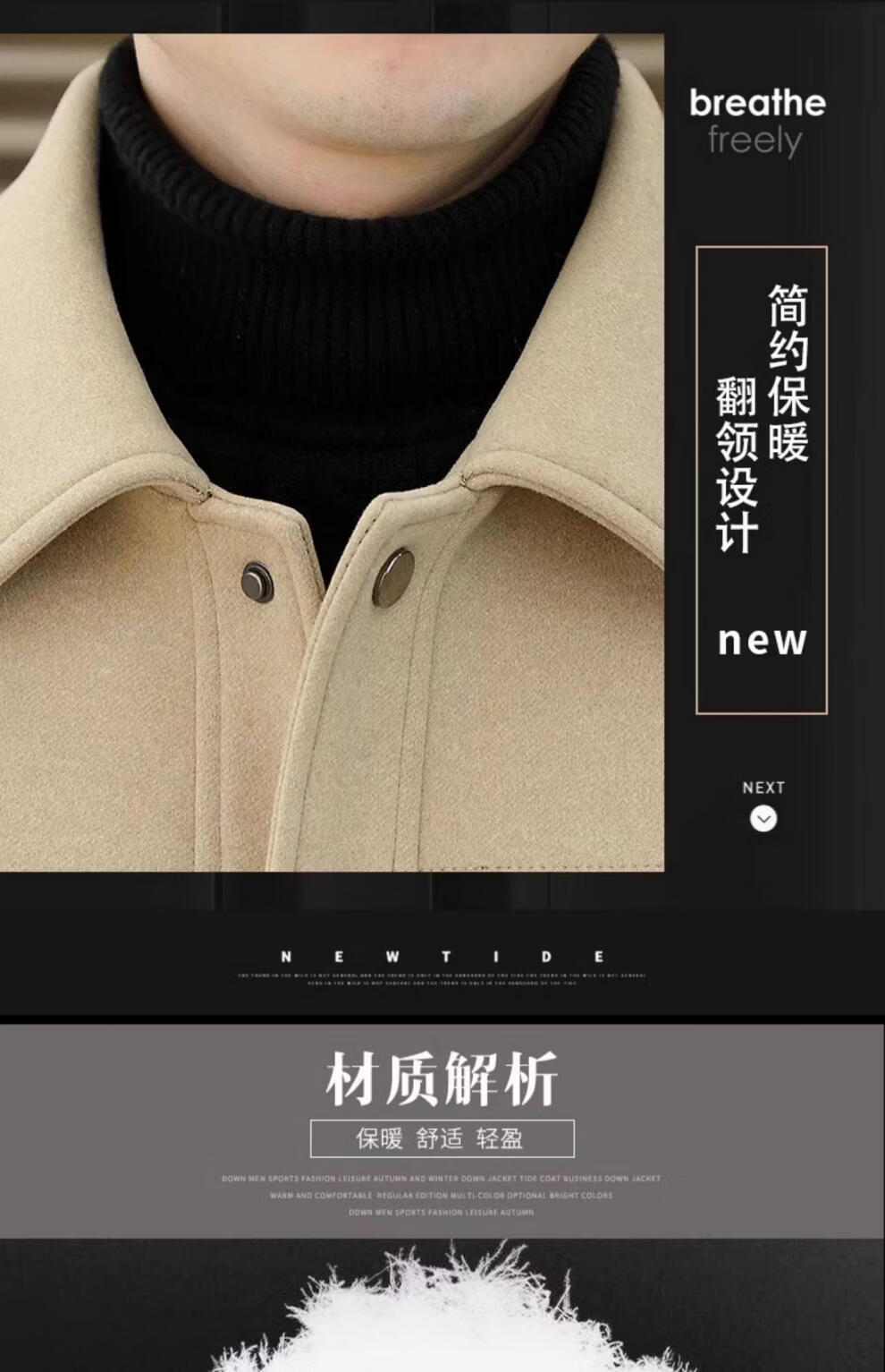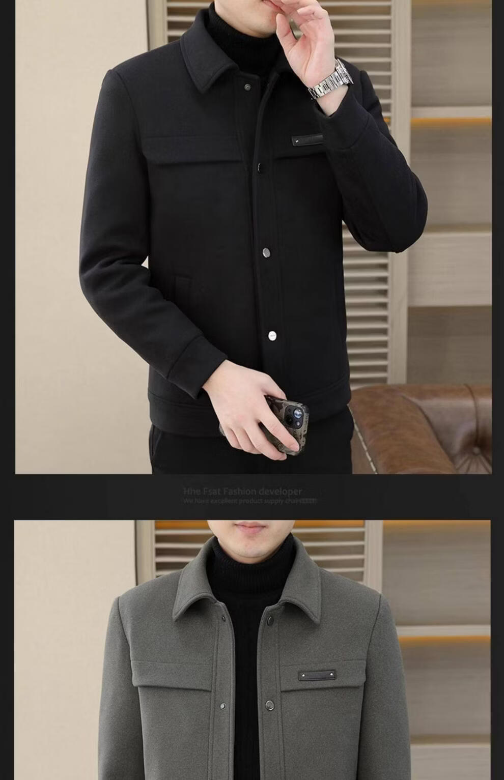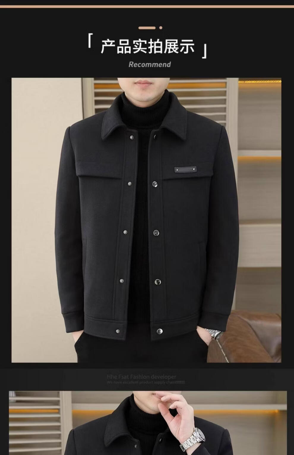 罗蒙(ROMON)羽绒服男款秋冬季2025新款翻领行政夹克男装高端商务休闲毛呢外套 灰色 M
