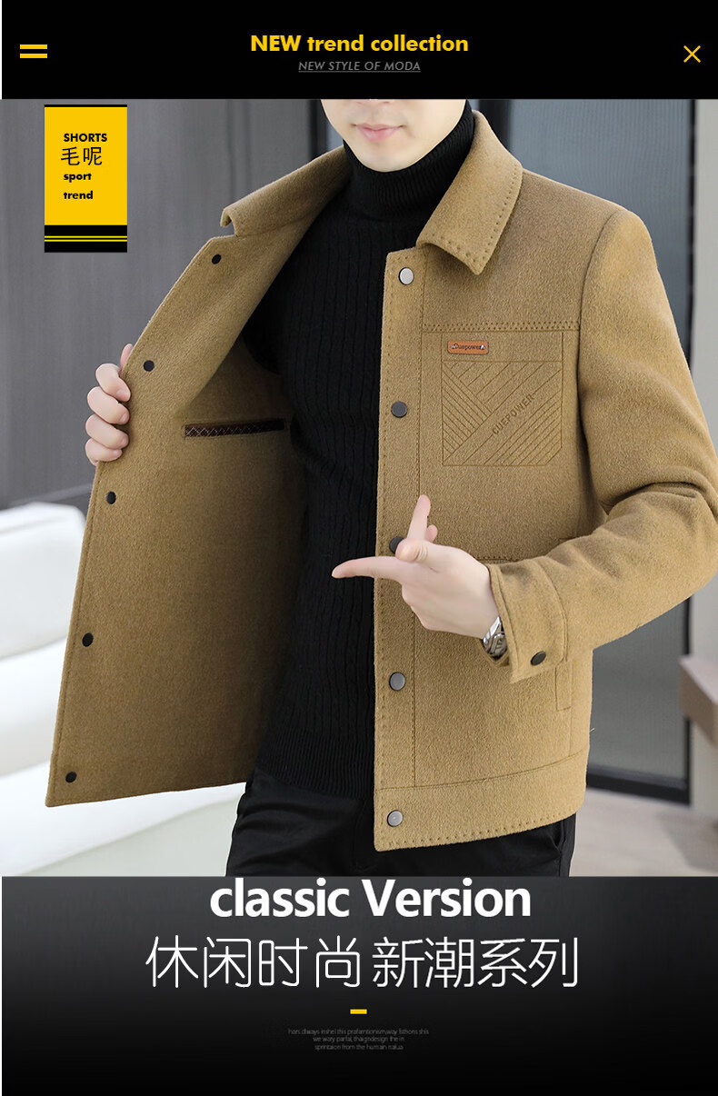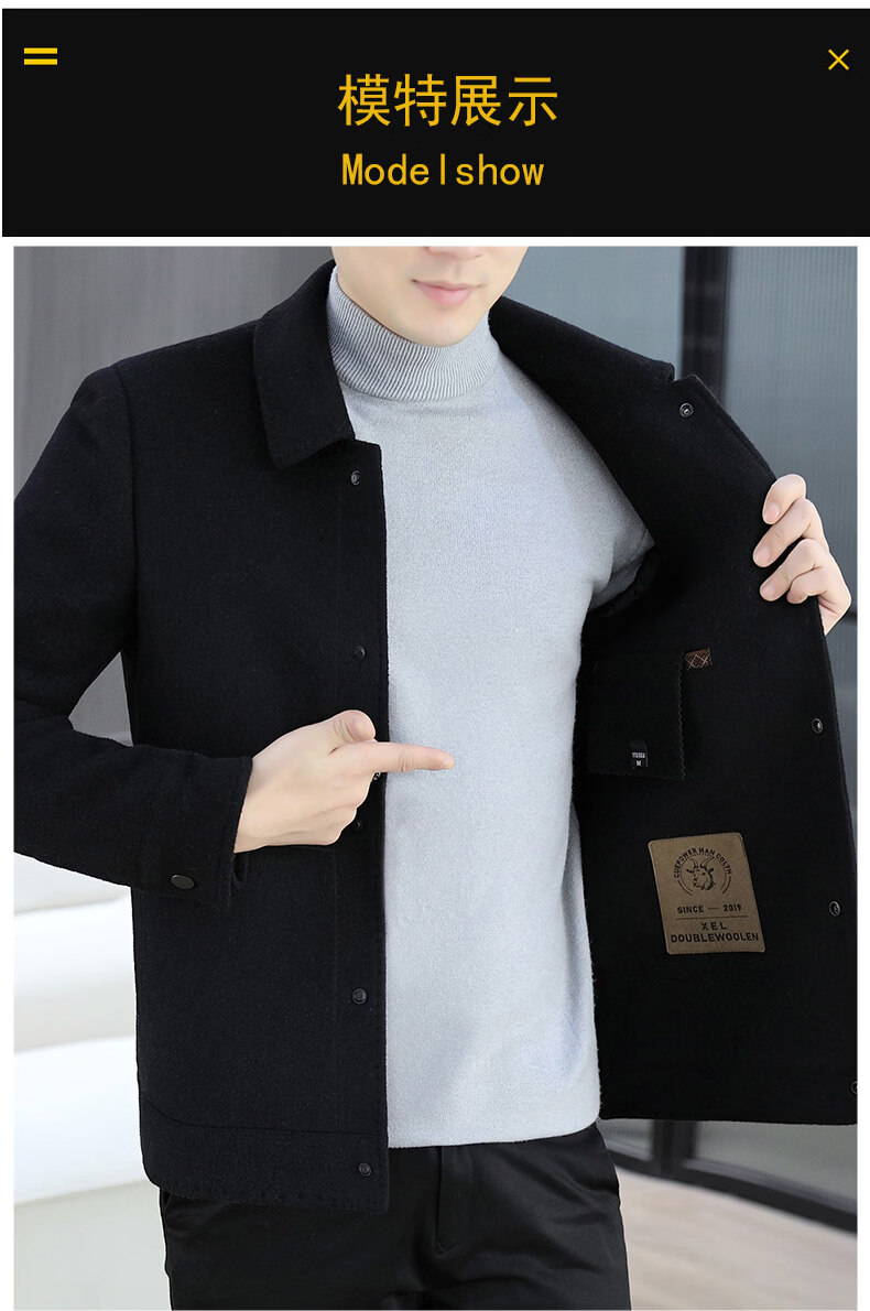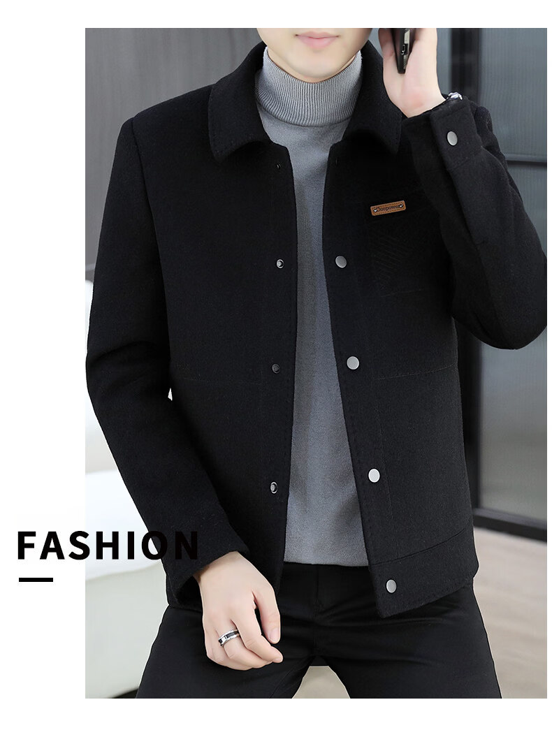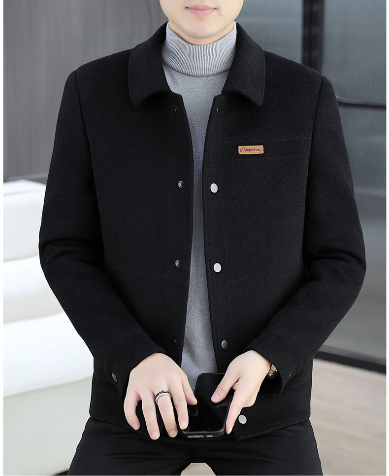 JEEP SPIRIT吉普高端品牌夹克男士外套2025年春秋冬季新款含羊毛呢子大衣短款 黑色802 常规 XL 180 (适合130斤-145斤穿)