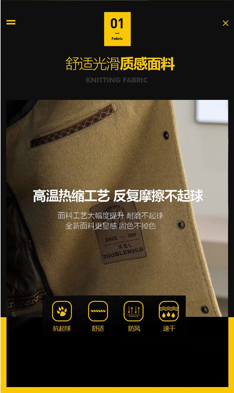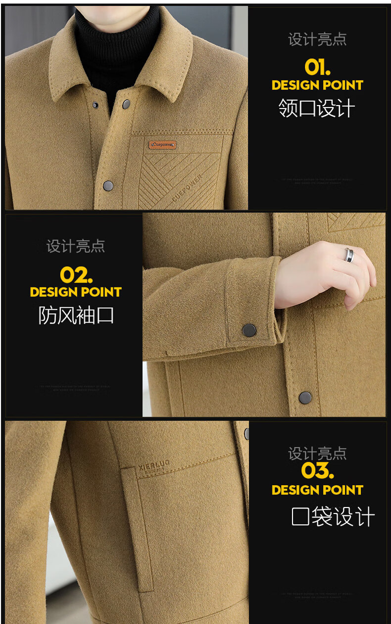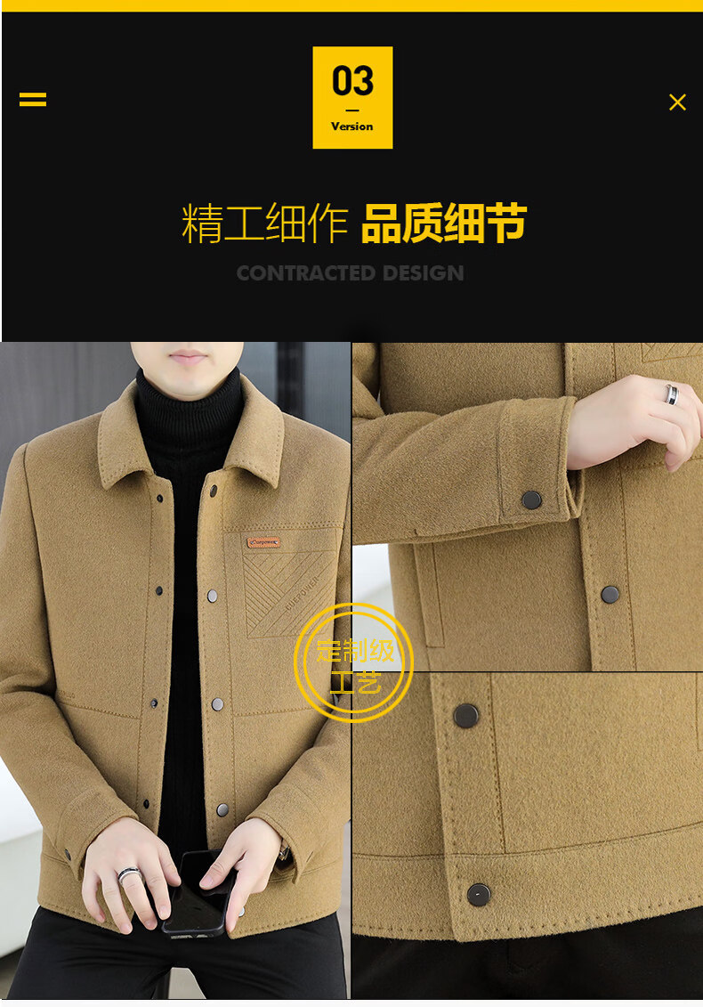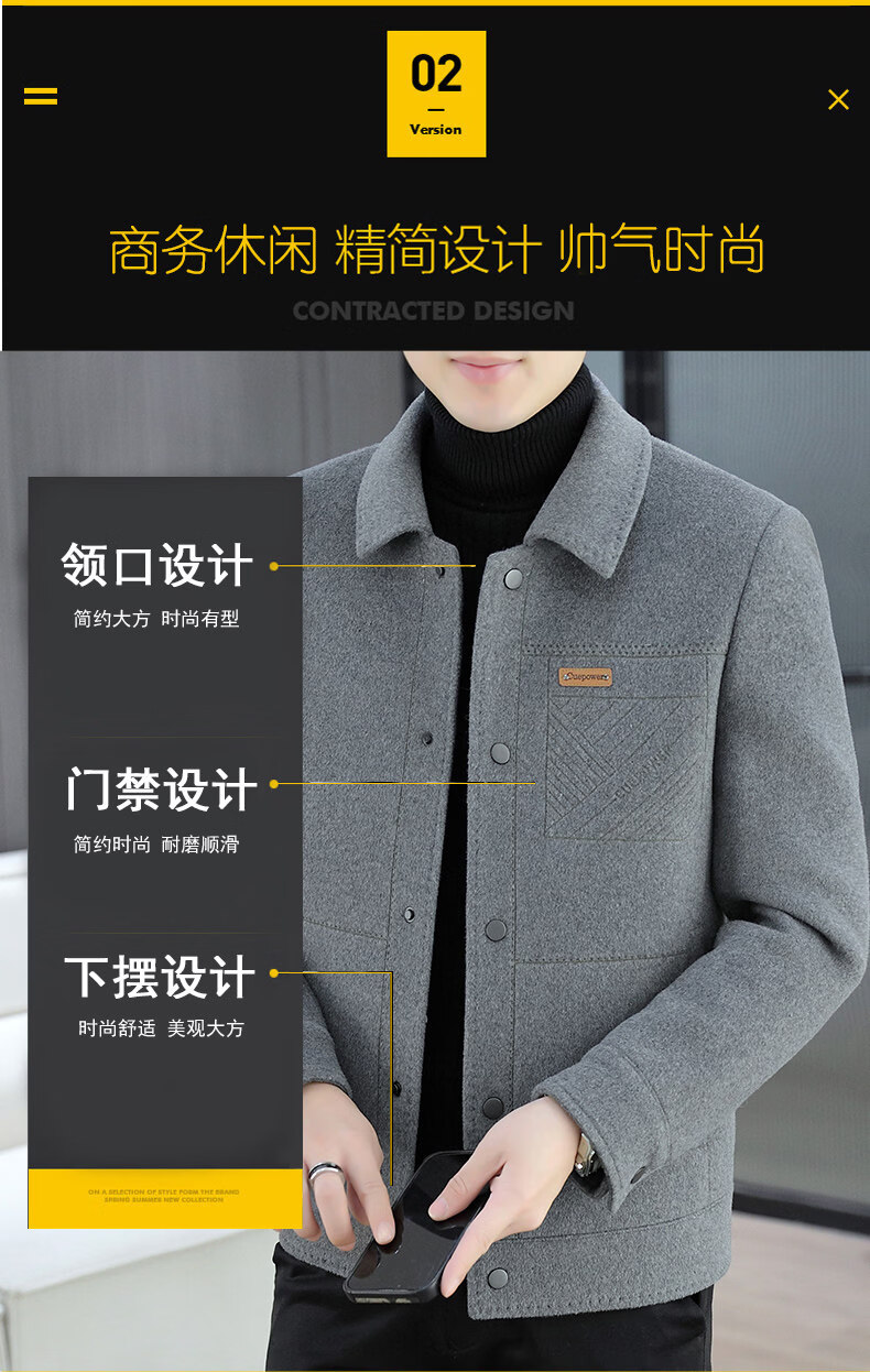 JEEP SPIRIT吉普高端品牌夹克男士外套2025年春秋冬季新款含羊毛呢子大衣短款 黑色802 常规 XL 180 (适合130斤-145斤穿)