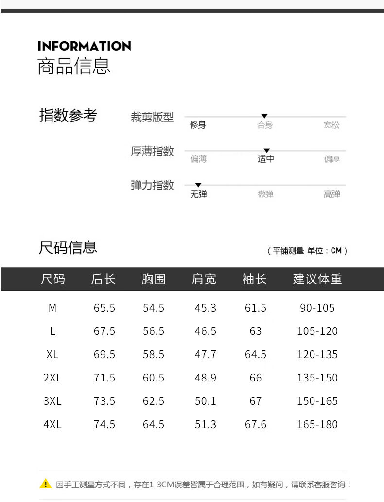 China (cm) 165 / 88-90 170 / 96-98 175 / 108-110 180 / 118-122 185 / 126-130