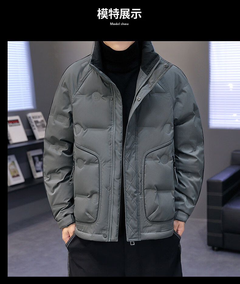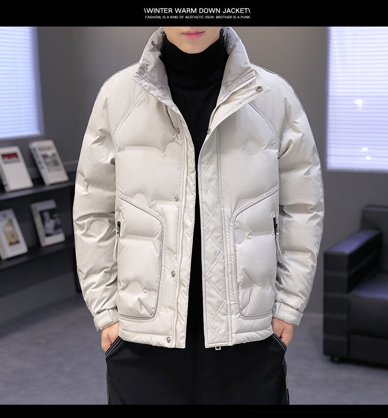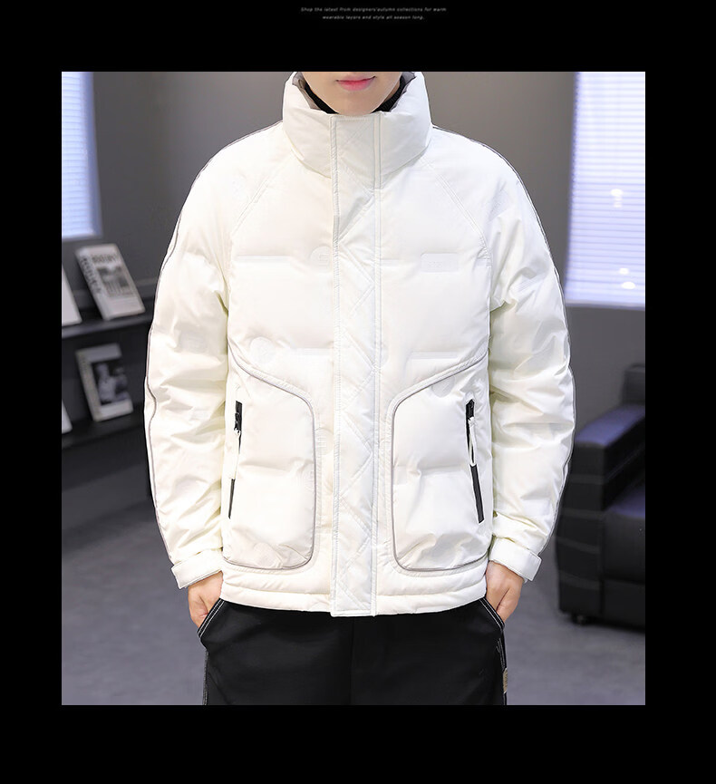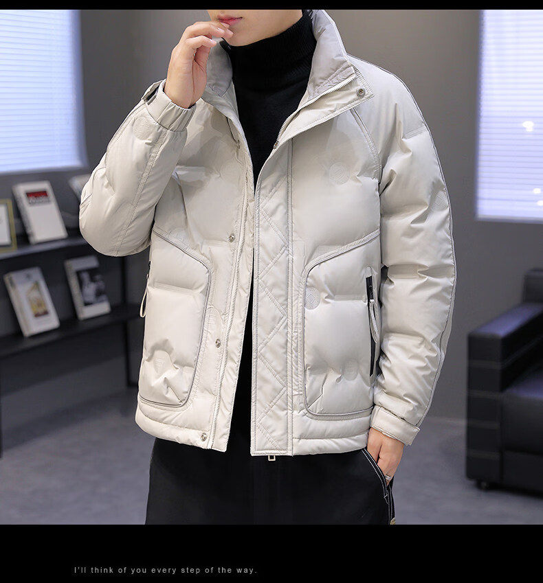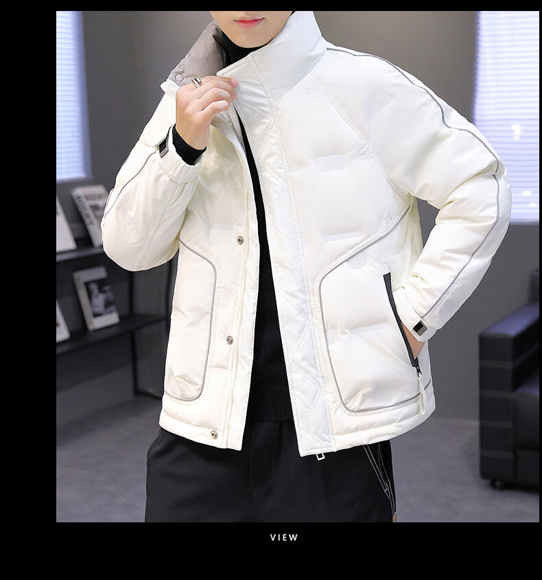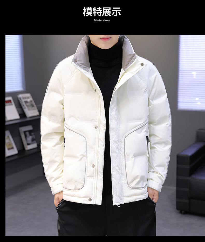 罗蒙(ROMON)白色羽绒服男士冬季新款轻薄保暖立领冬装加厚休闲短款外套 白色 M (90-110斤)
