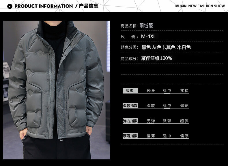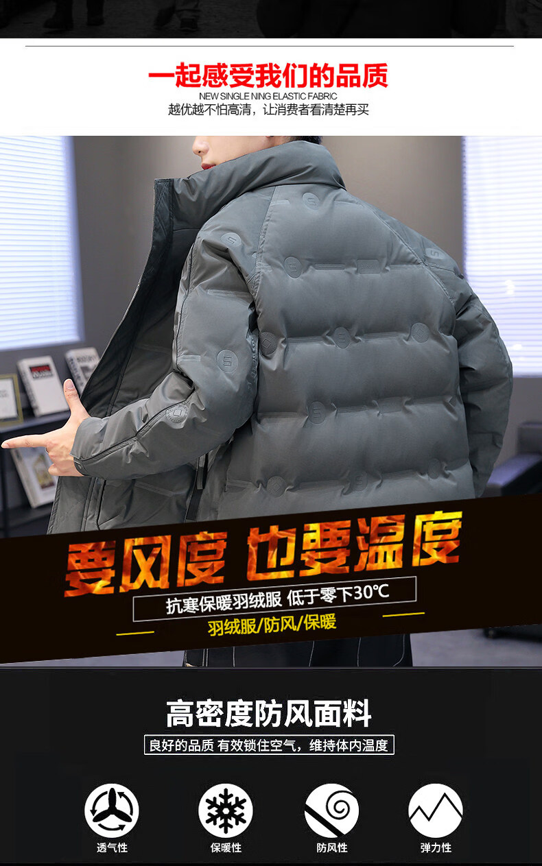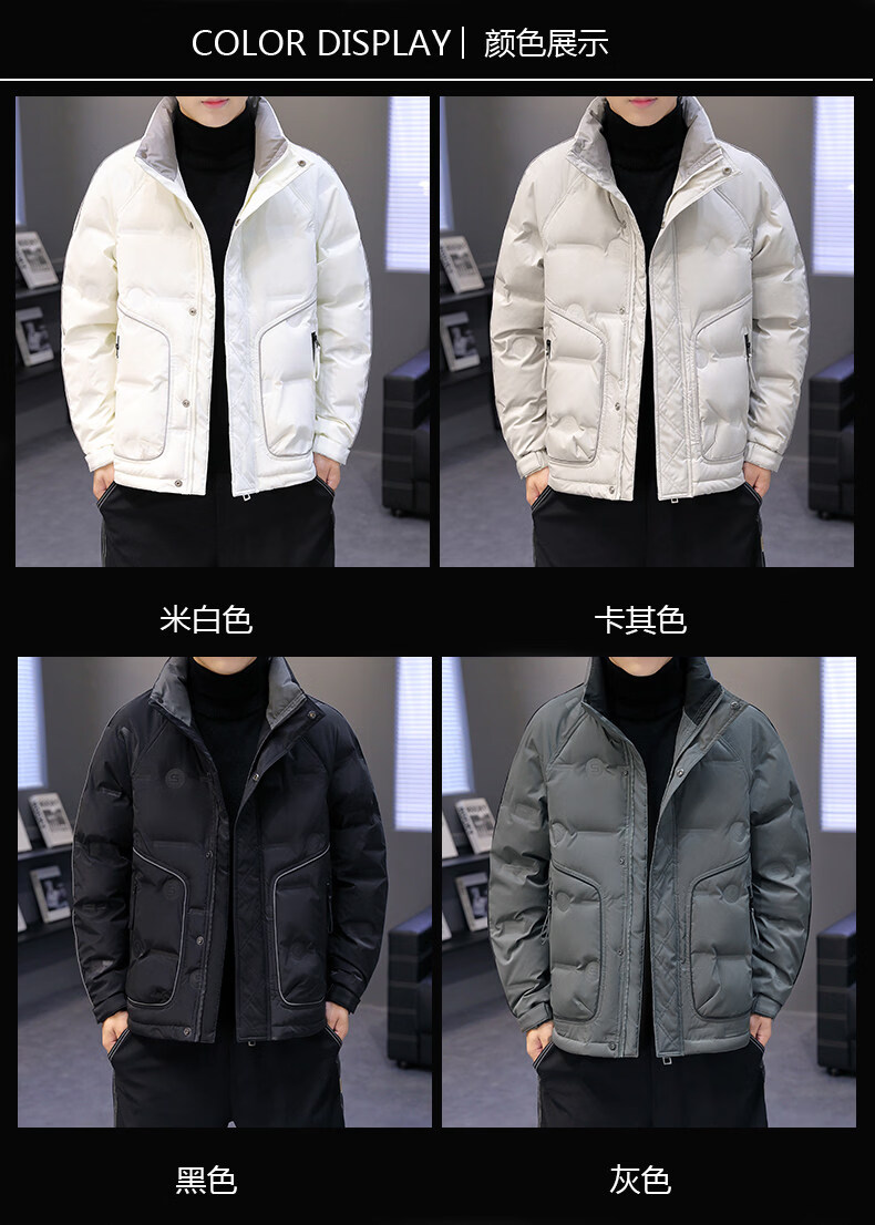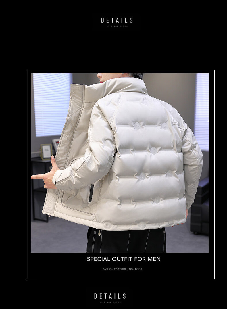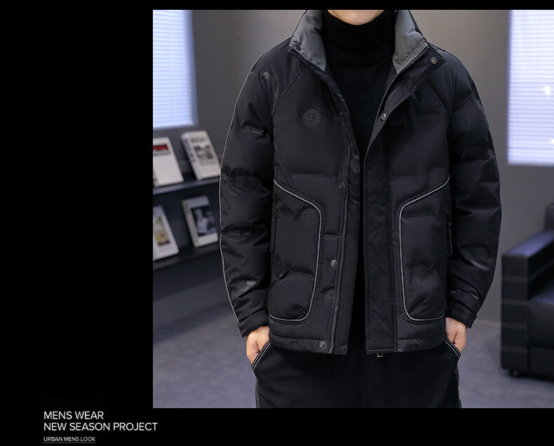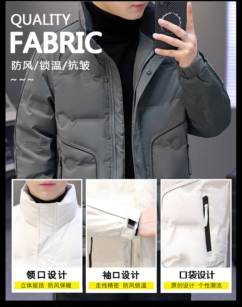 罗蒙(ROMON)白色羽绒服男士冬季新款轻薄保暖立领冬装加厚休闲短款外套 白色 M (90-110斤)