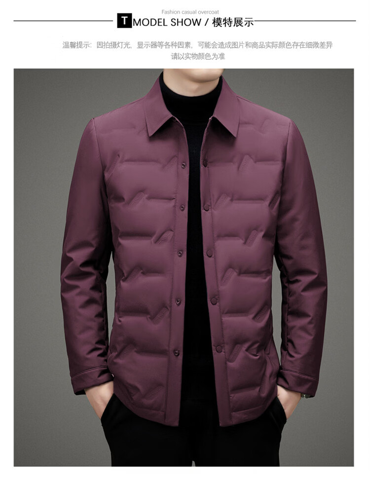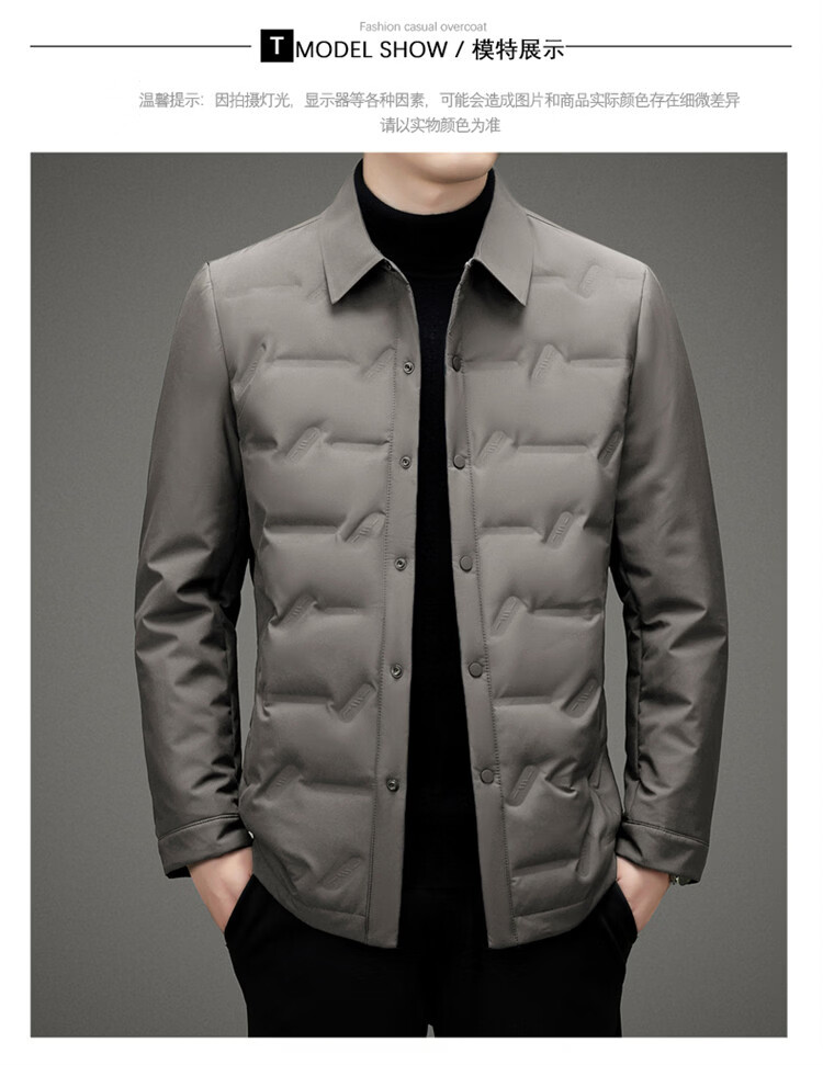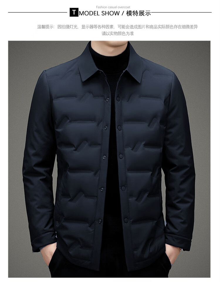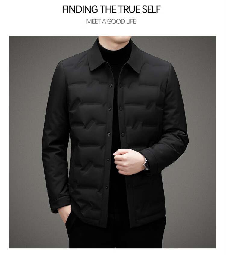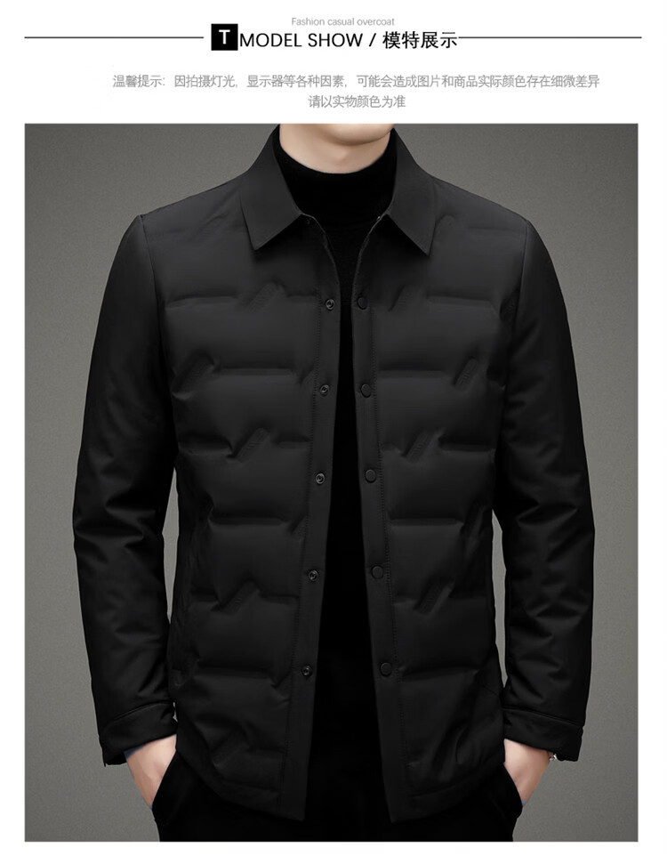 恒源祥轻奢羽绒服男短款秋冬新款商务休闲中年男士轻薄翻领白鸭绒外套 DY8013 黑色 L 175