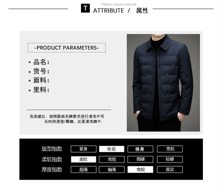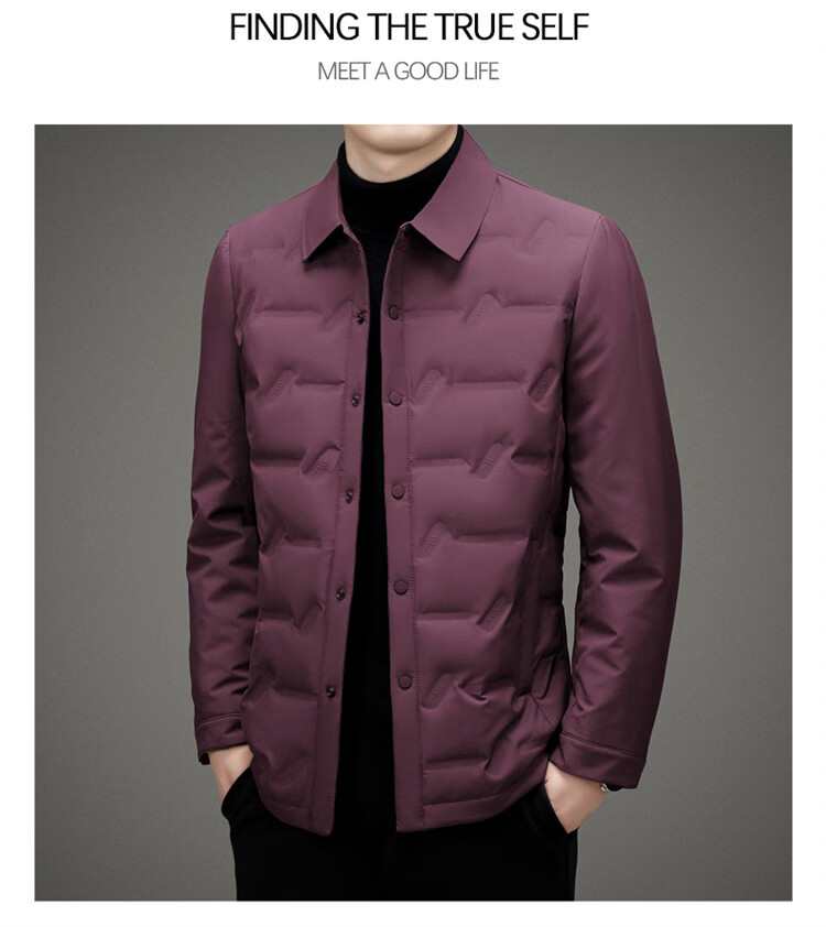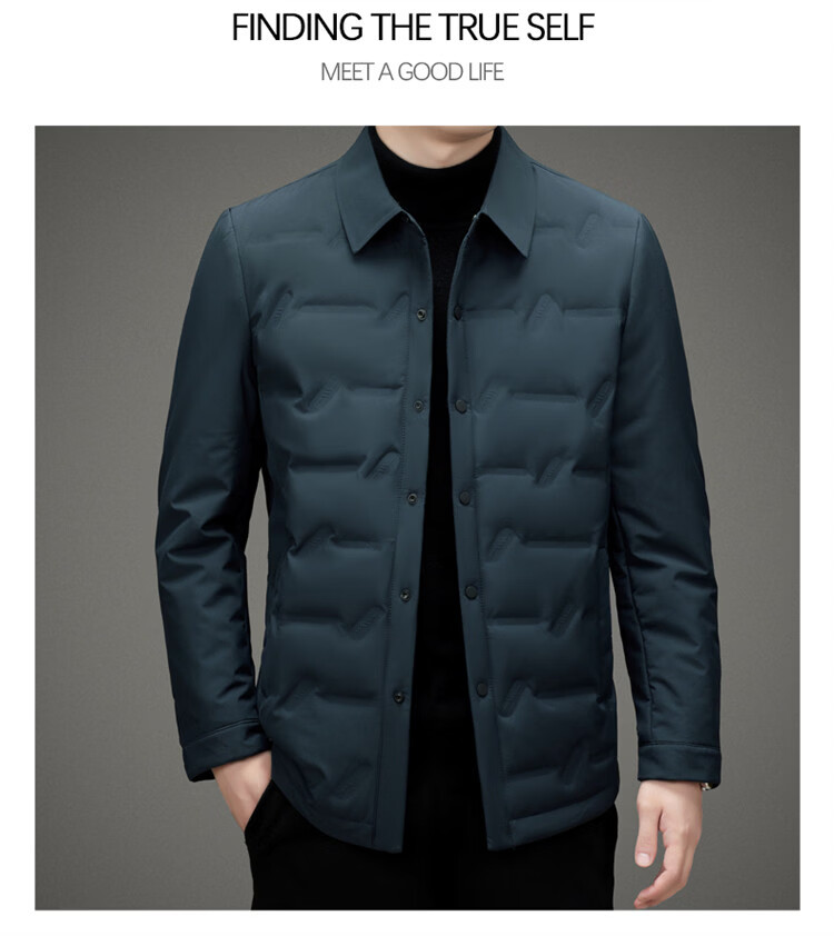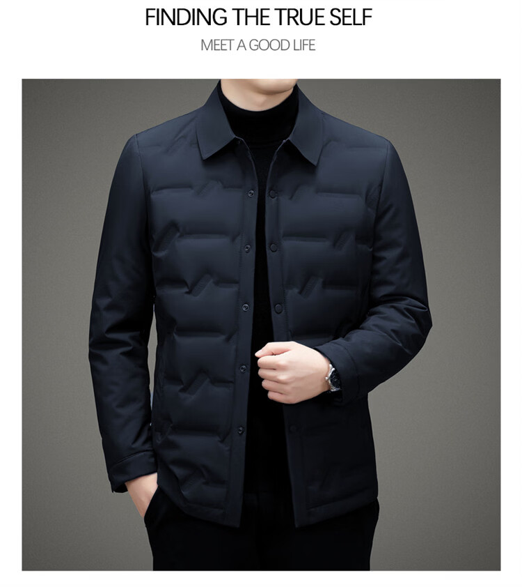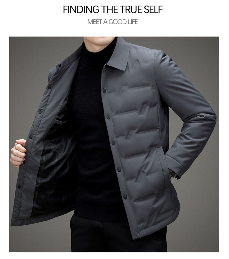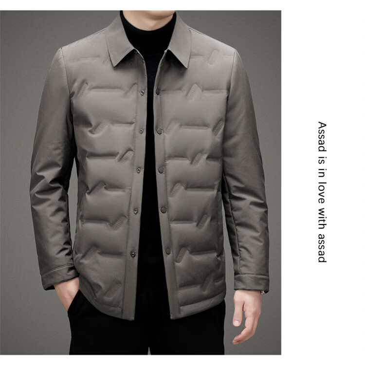恒源祥轻奢羽绒服男短款秋冬新款商务休闲中年男士轻薄翻领白鸭绒外套 DY8013 黑色 L 175