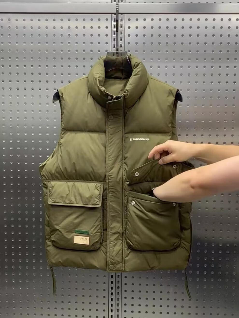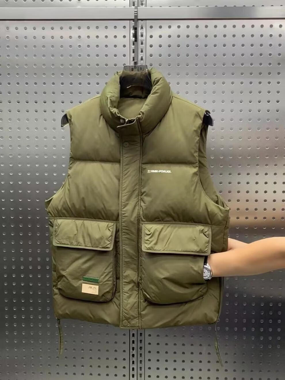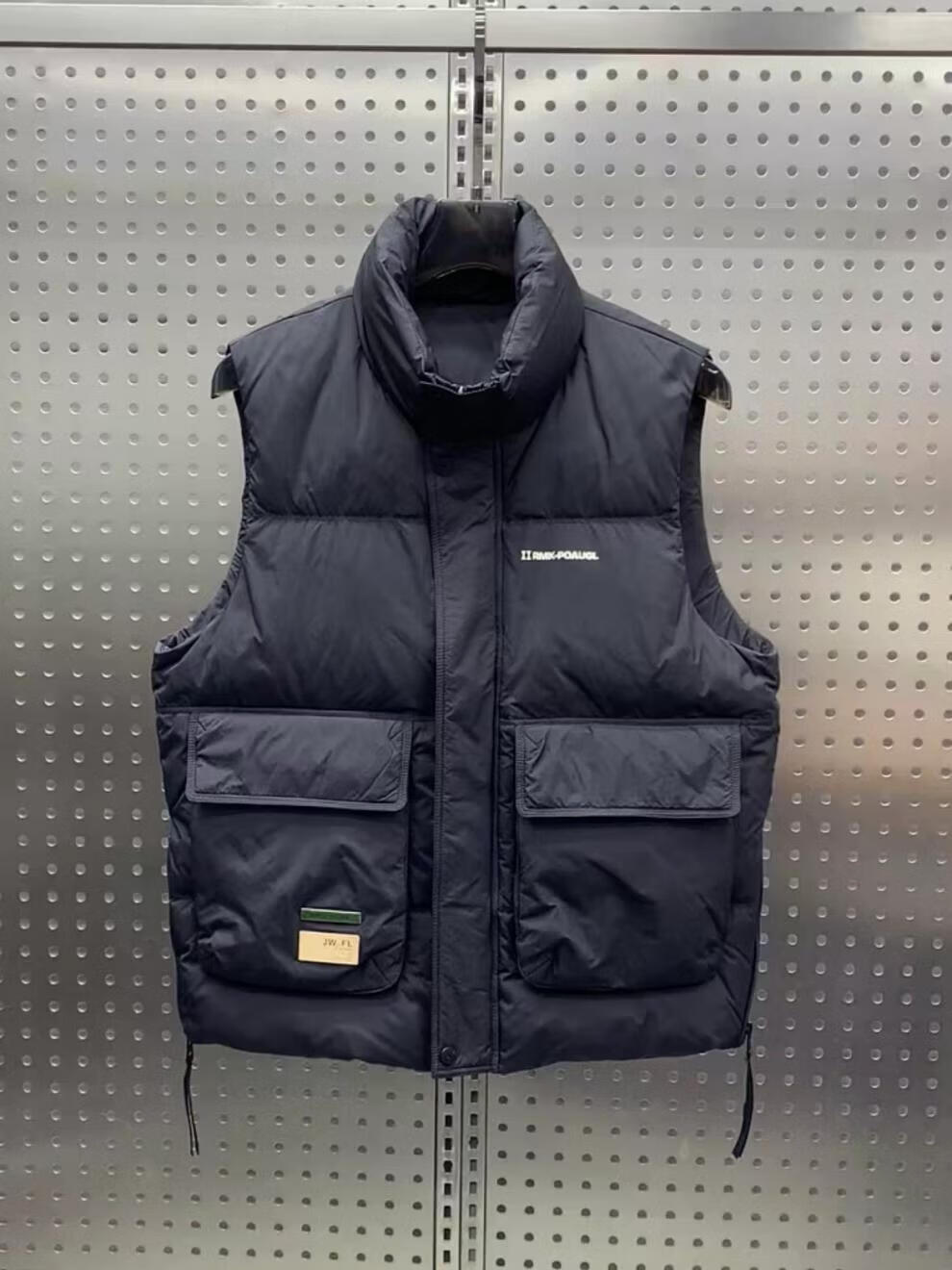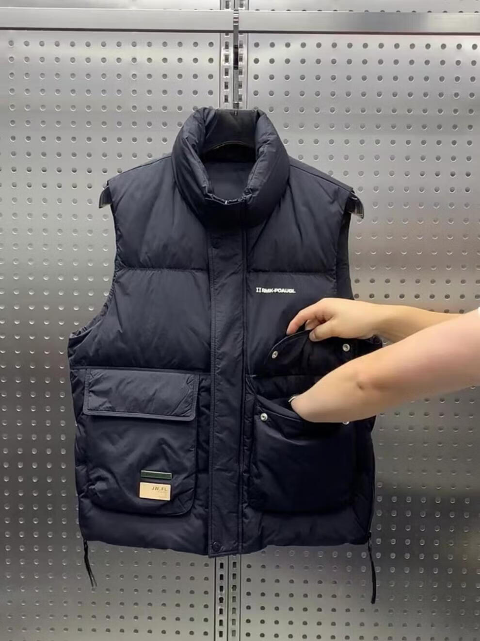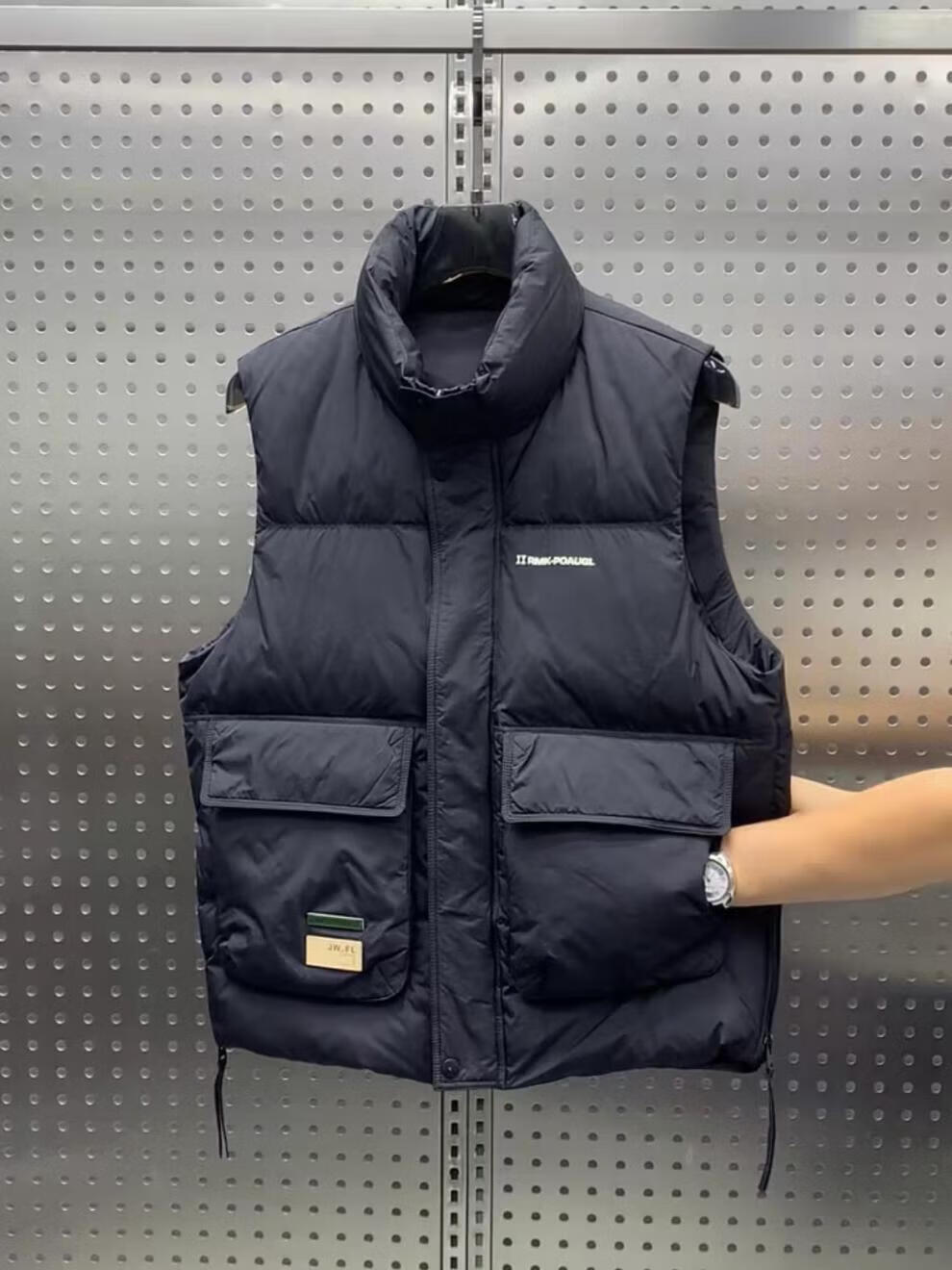 雅鹿冬季新款工装羽绒马甲男青年宽松休闲简约白鸭绒背心加厚无袖外套 黑色 M 建议100-130斤