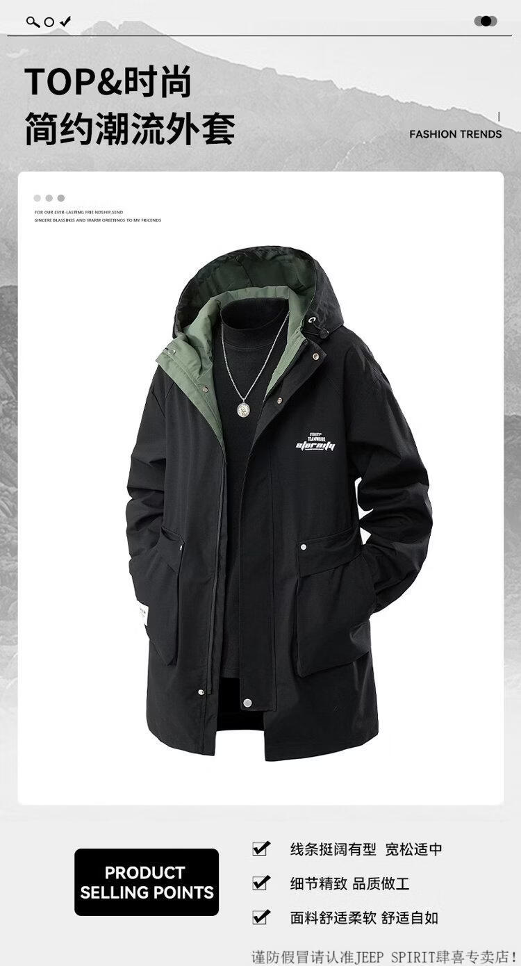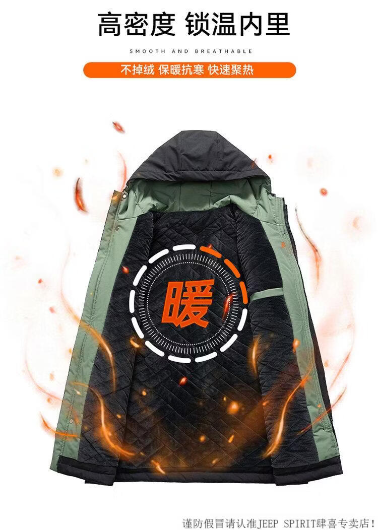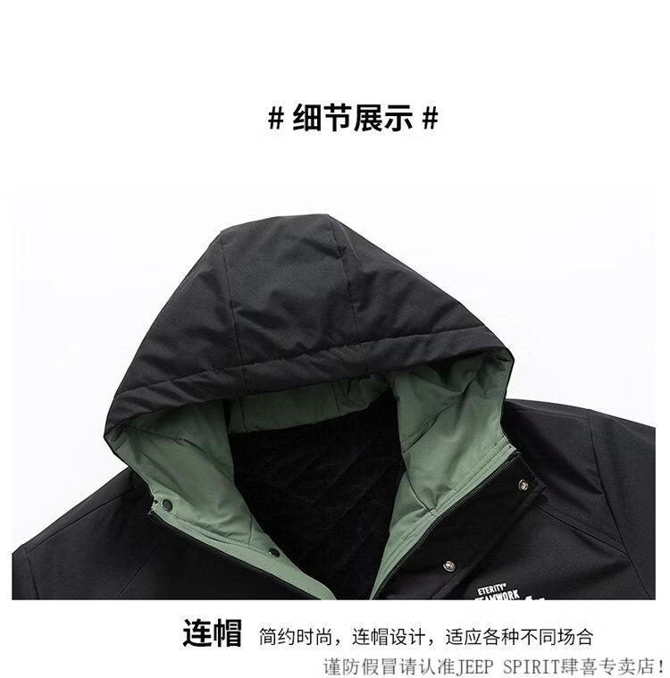 JEEP SPIRIT autumn and winter windbreaker men's mid-length plus fat plus velvet extra large quilted second cotton windproof plus cotton jacket 6851 black (spring and autumn style without velvet) L