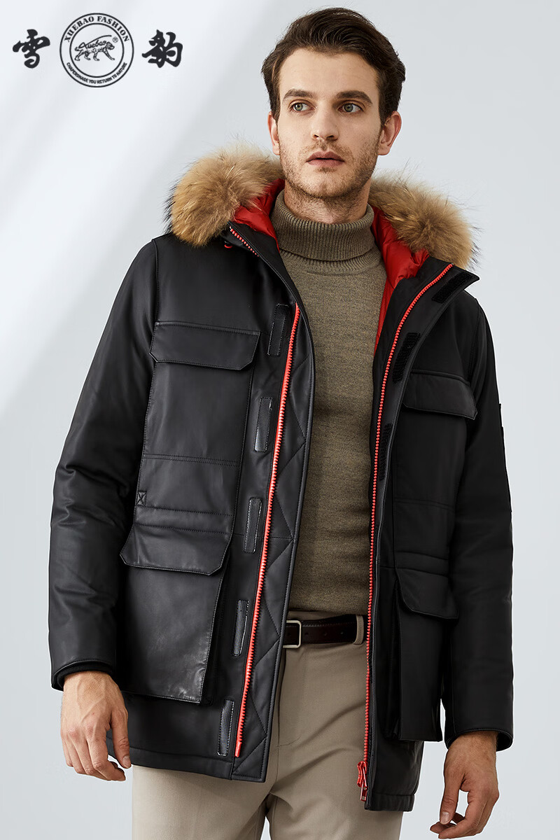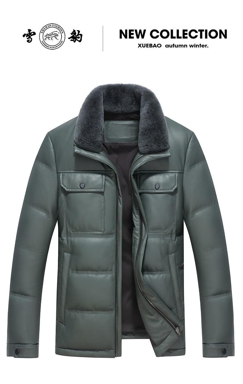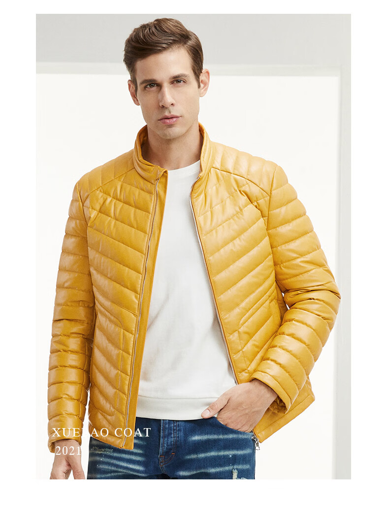 雪豹真皮皮衣男 秋冬绵羊皮白鹅绒羽绒内胆男士保暖夹克外套 黄色 88985 2XL /52(180/100A)