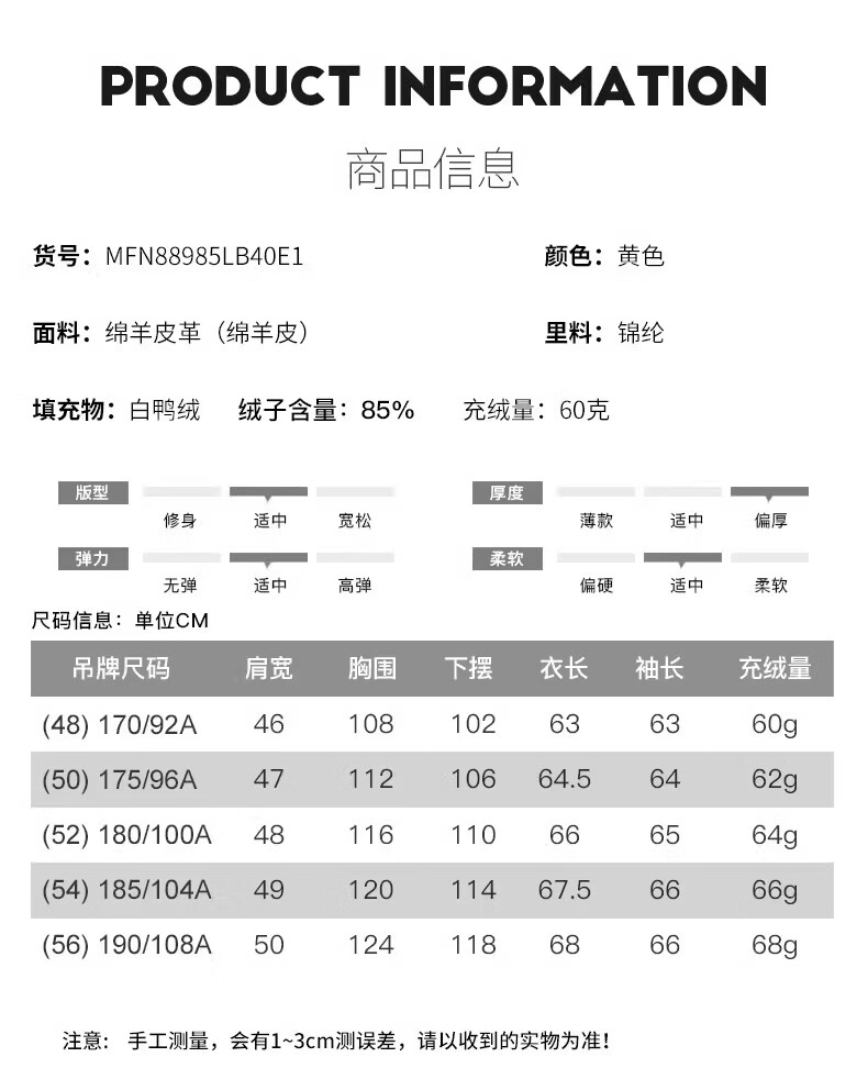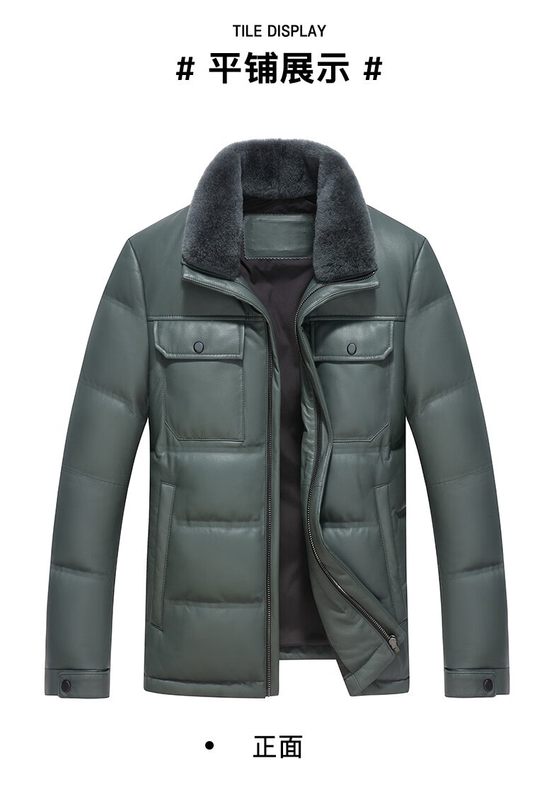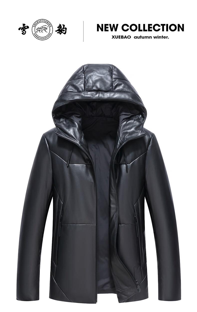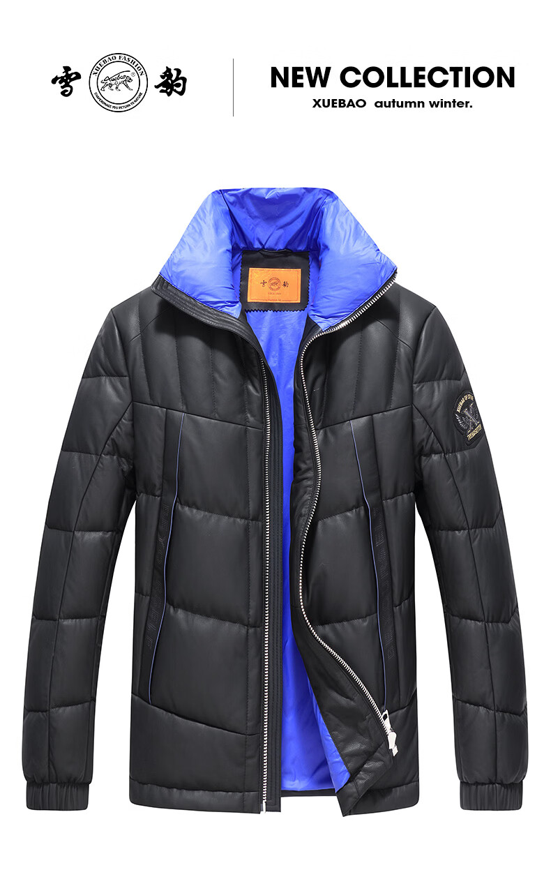 雪豹真皮皮衣男 秋冬绵羊皮白鹅绒羽绒内胆男士保暖夹克外套 黄色 88985 2XL /52(180/100A)