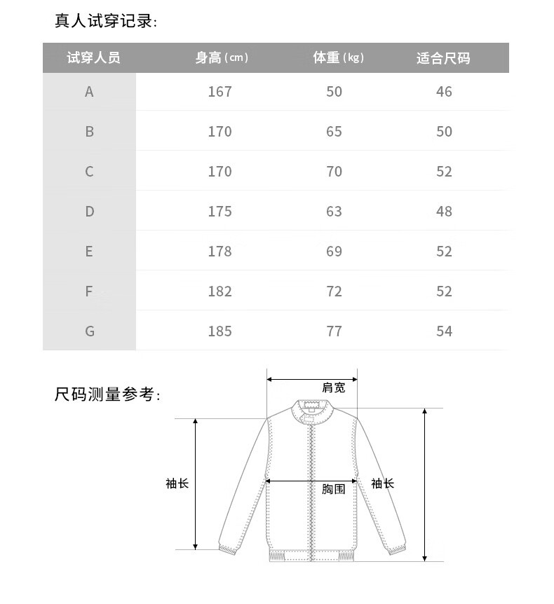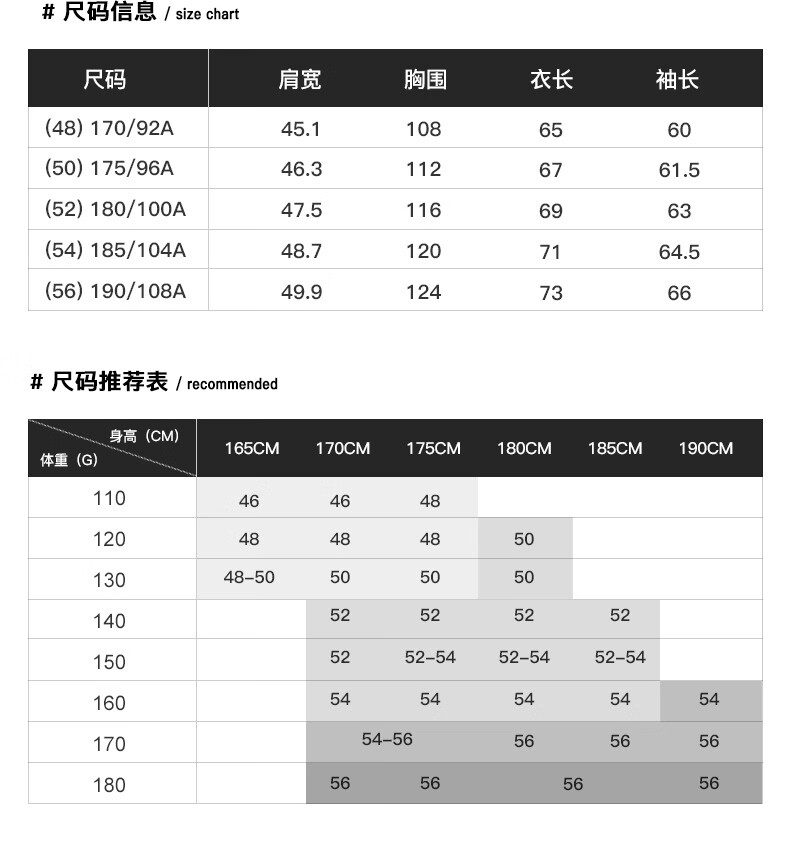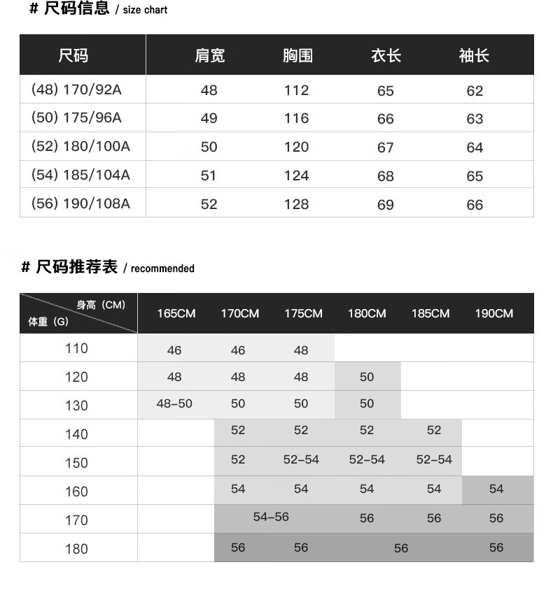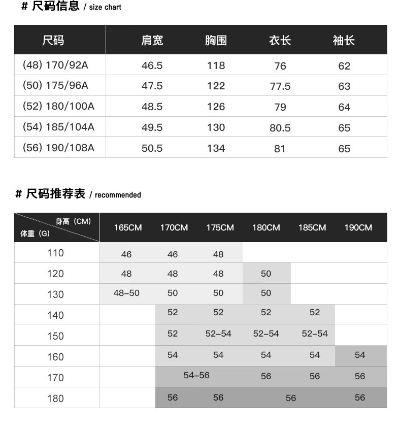 China (cm) 160-165/84-86 165-170 / 88-90 167-172 / 92-96 168-173 / 98-102 170-176 / 106-110