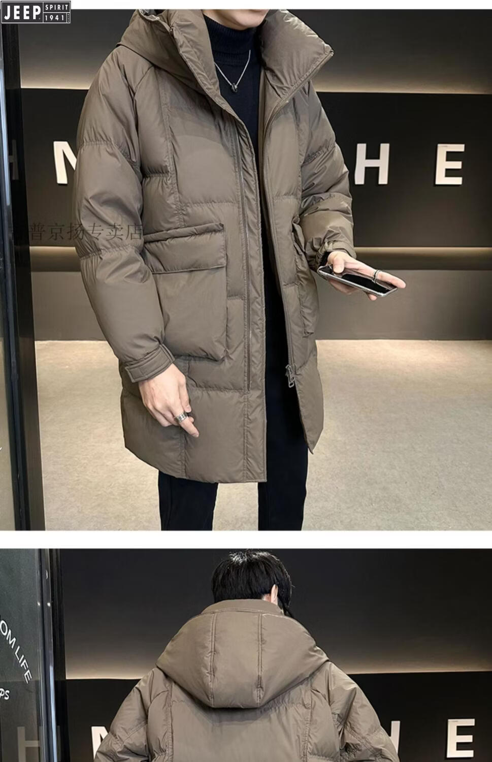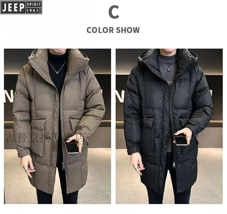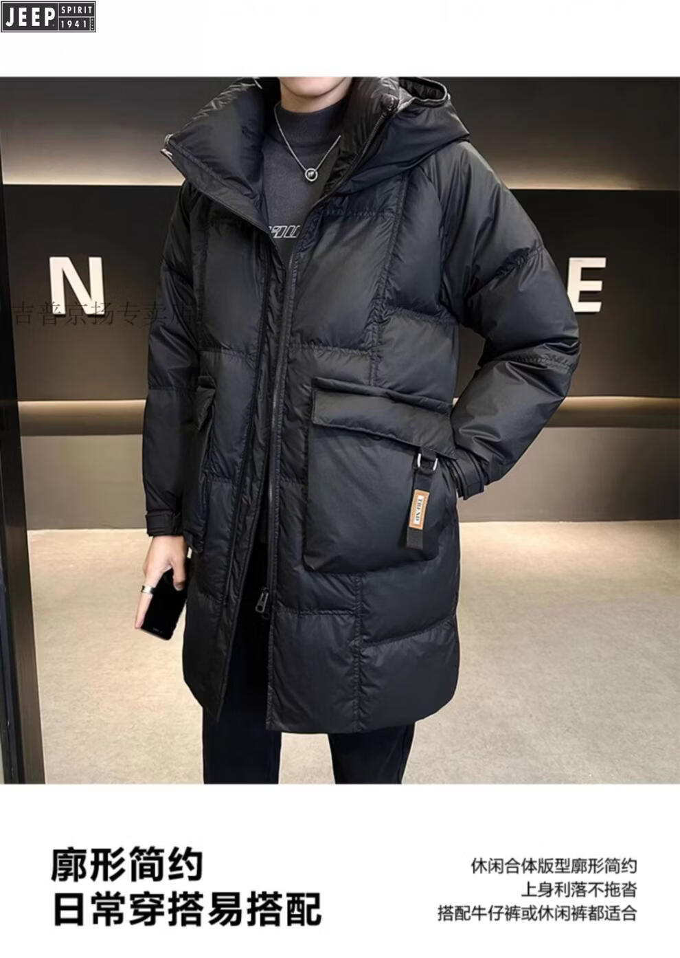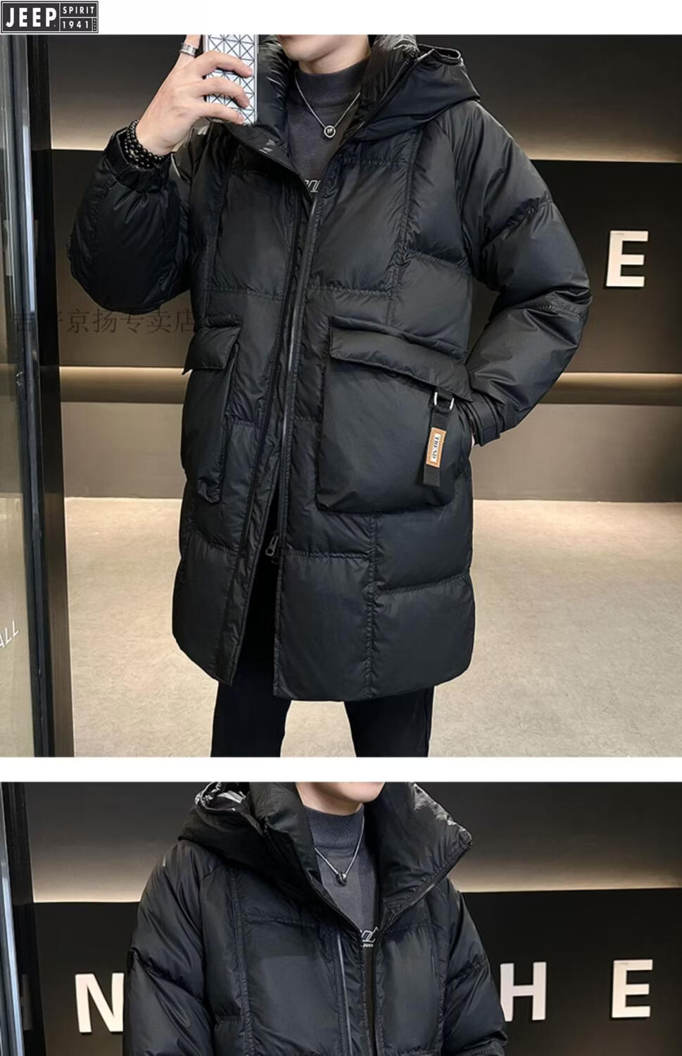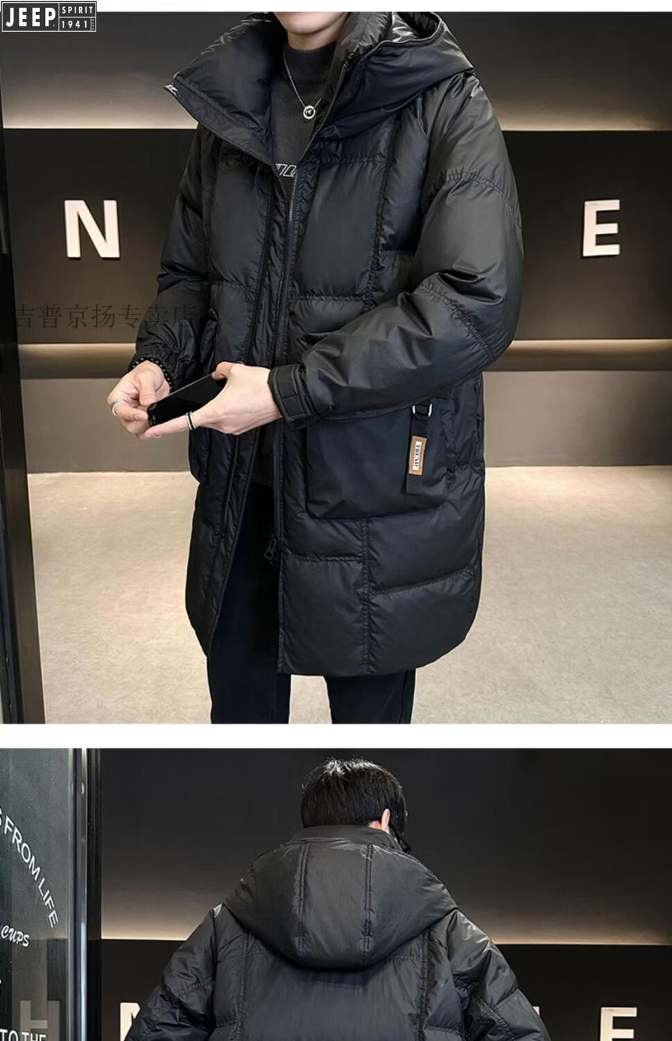 JEEP吉普国际品牌中长款羽绒服男士冬季2025新款连帽加厚宽松休闲外套 黑色 M 推荐105-125斤