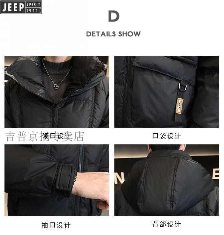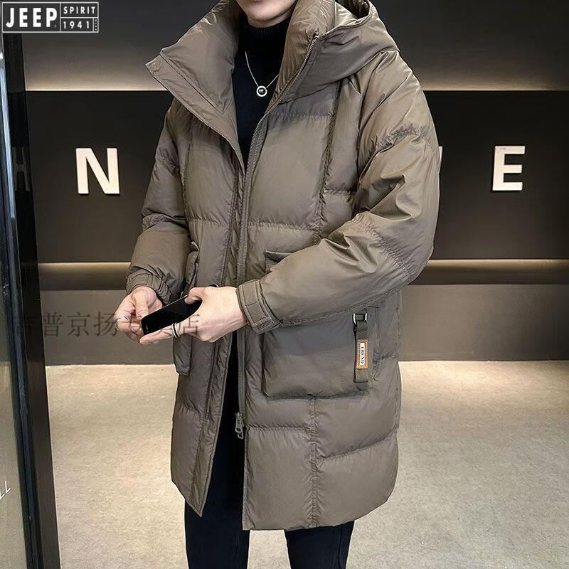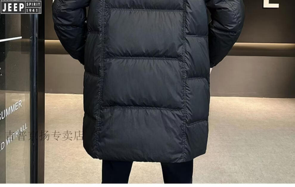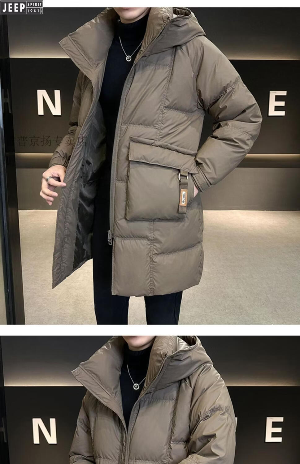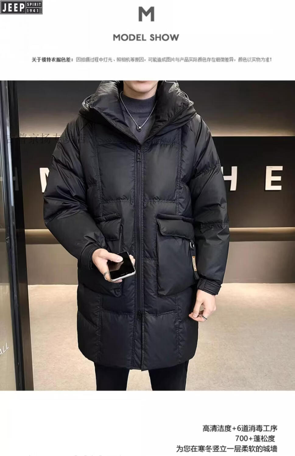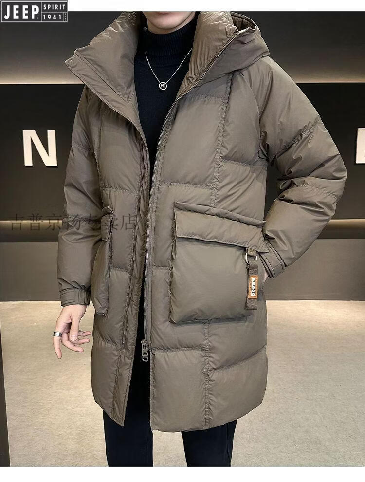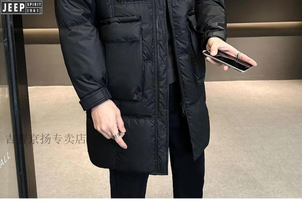 JEEP吉普国际品牌中长款羽绒服男士冬季2025新款连帽加厚宽松休闲外套 黑色 M 推荐105-125斤