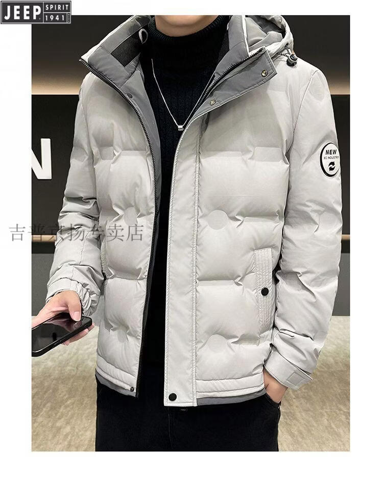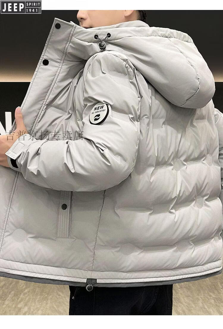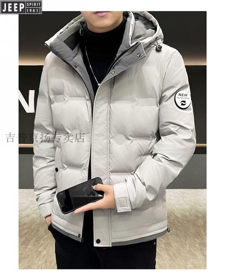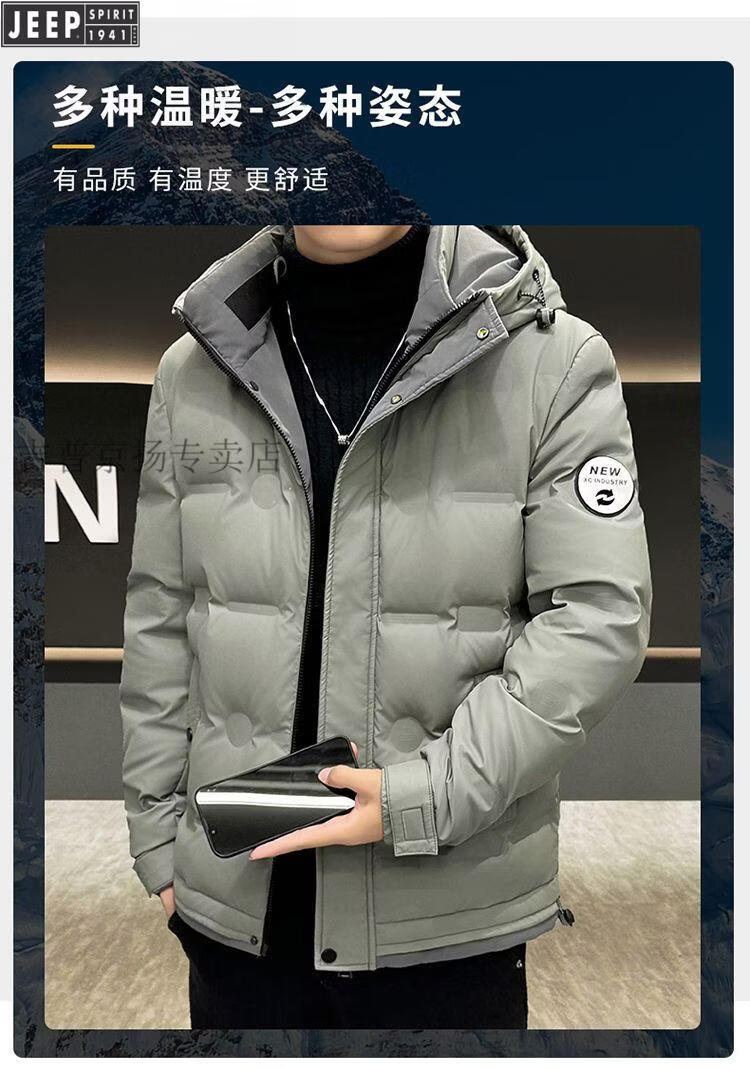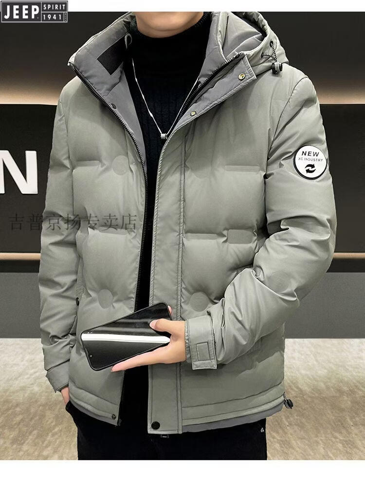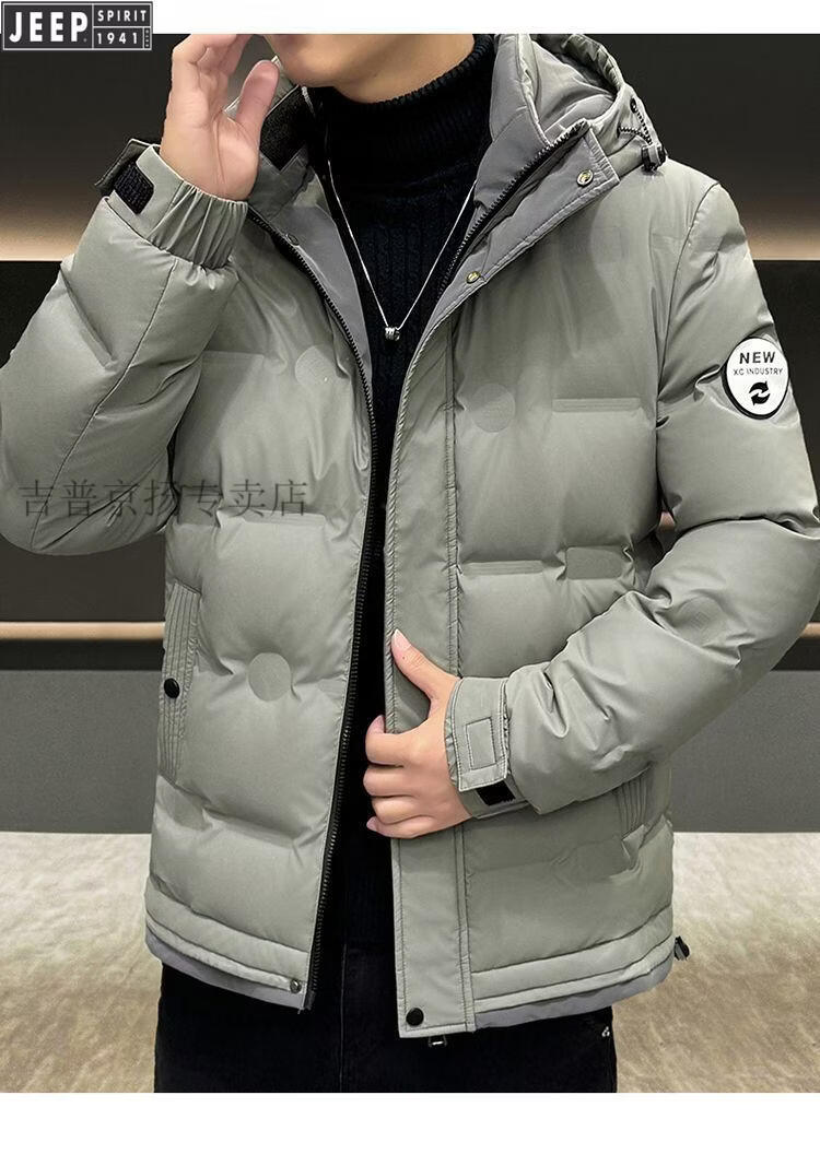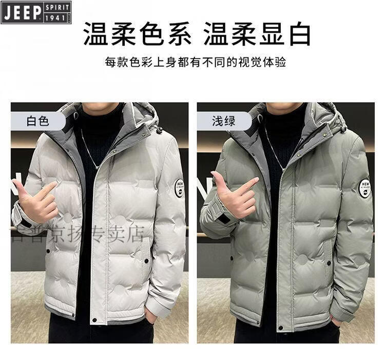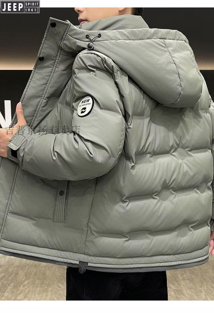 JEEP International Brand Winter Down Jacket Men's 2025 New Thickened Short Duck Down Hooded Warm Casual Jacket Bean Green 927 L 90-110Jin Jin equals 0.5 kg