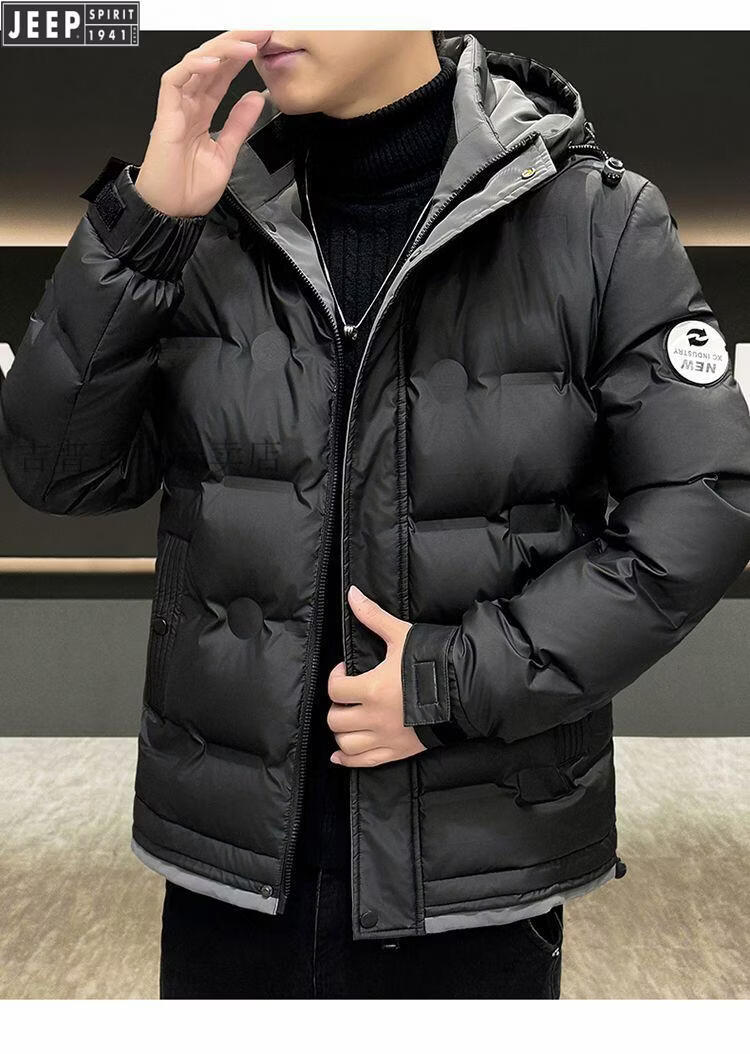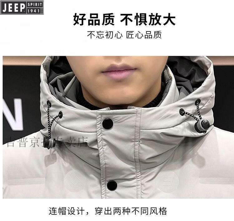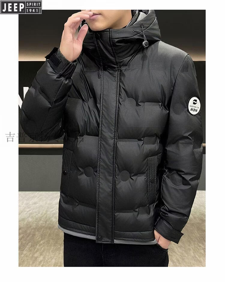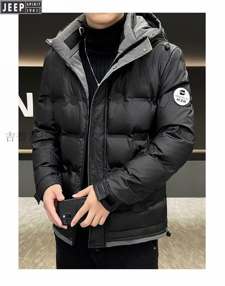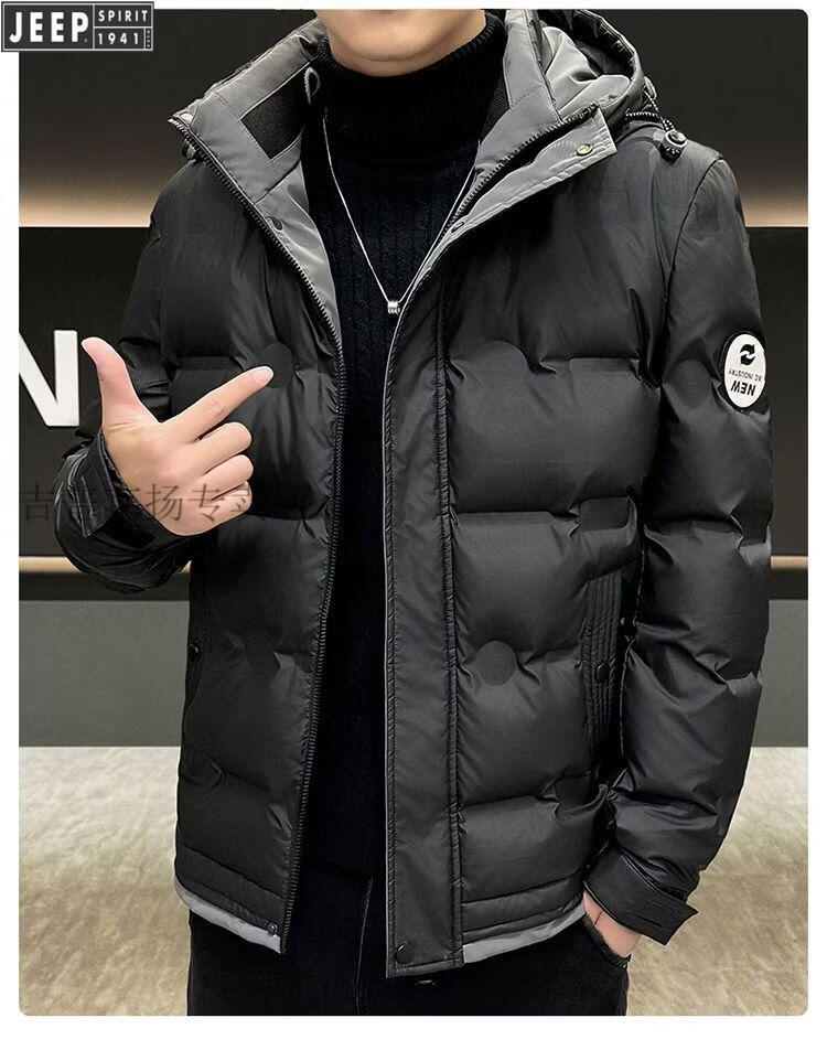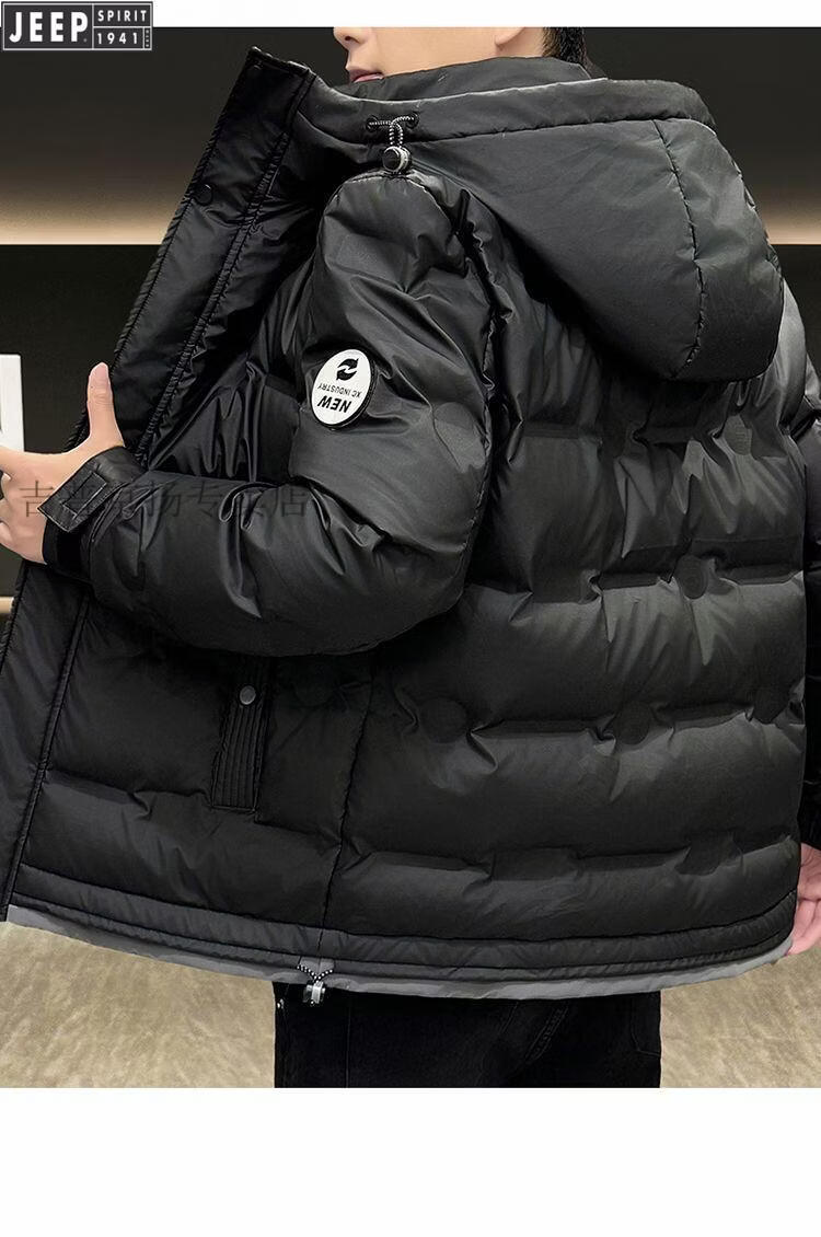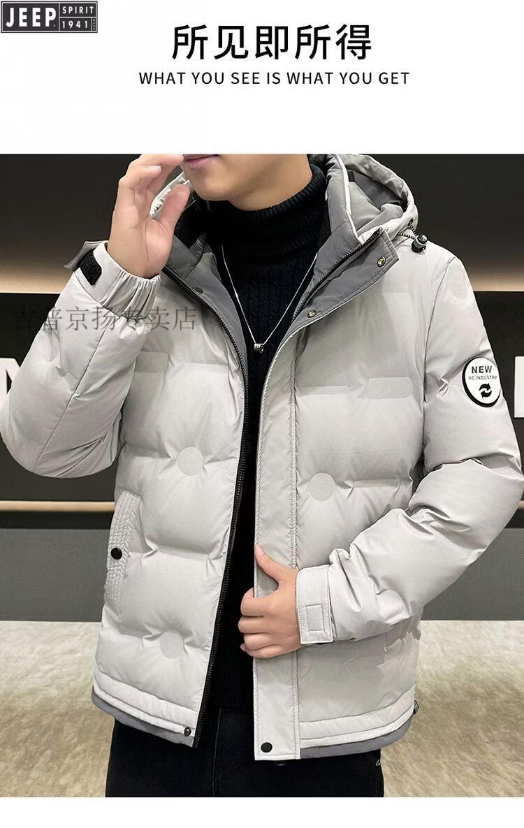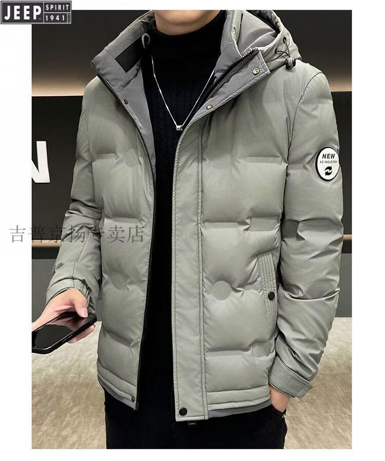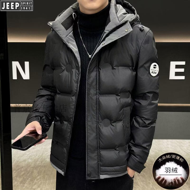 JEEP International Brand Winter Down Jacket Men's 2025 New Thickened Short Duck Down Hooded Warm Casual Jacket Bean Green 927 L 90-110Jin Jin equals 0.5 kg