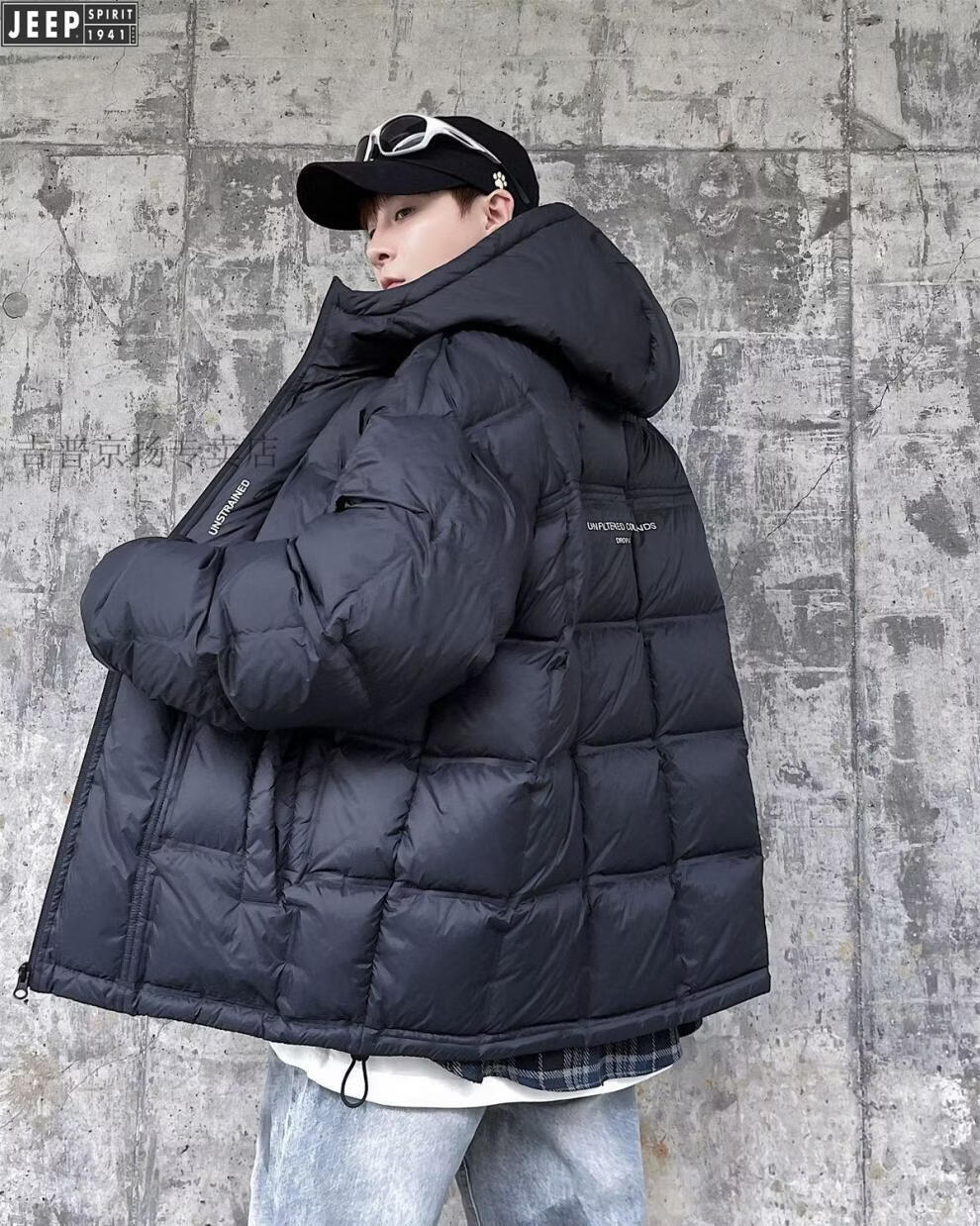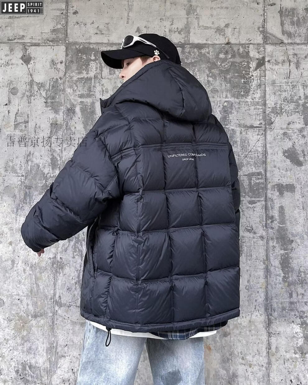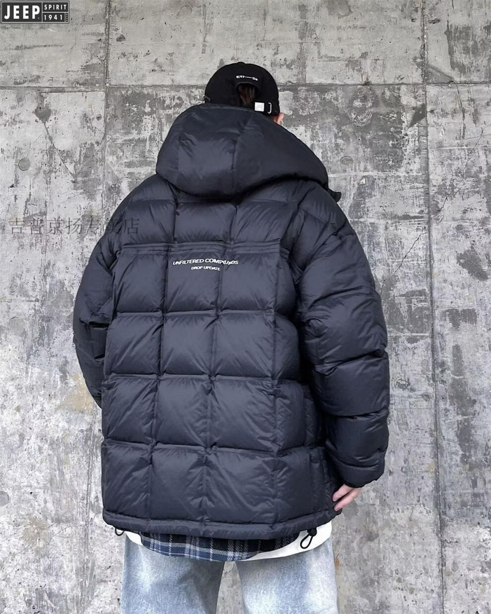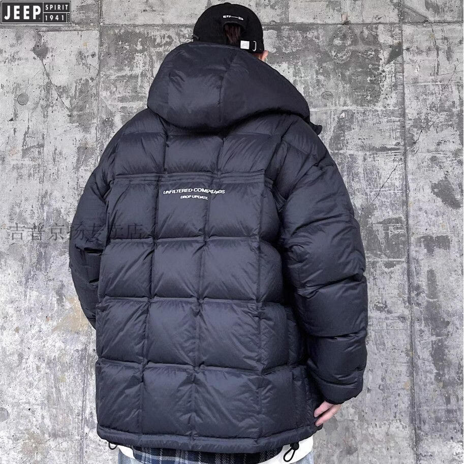 JEEP международный бренд, зимний белый утиный пух с капюшоном, мужская свободная повседневная куртка больших размеров, черная 6XL 250-275Jin Jin, вес 0,5 кг