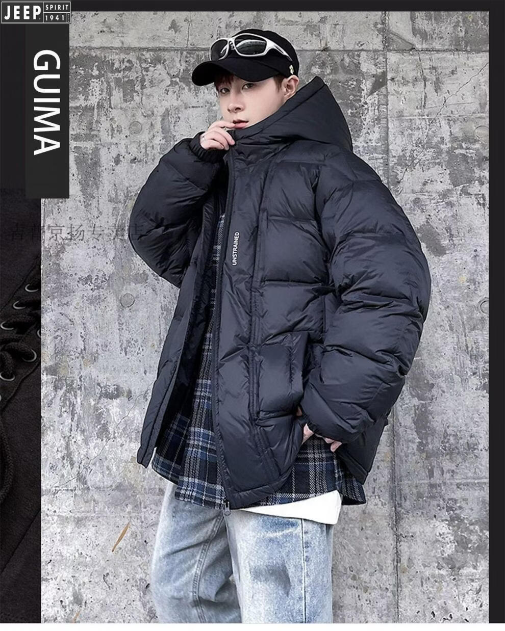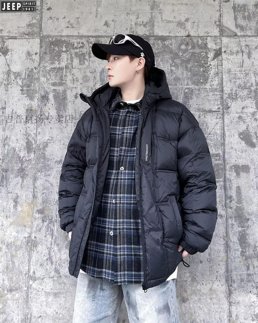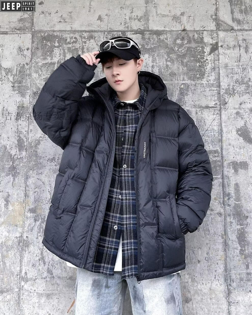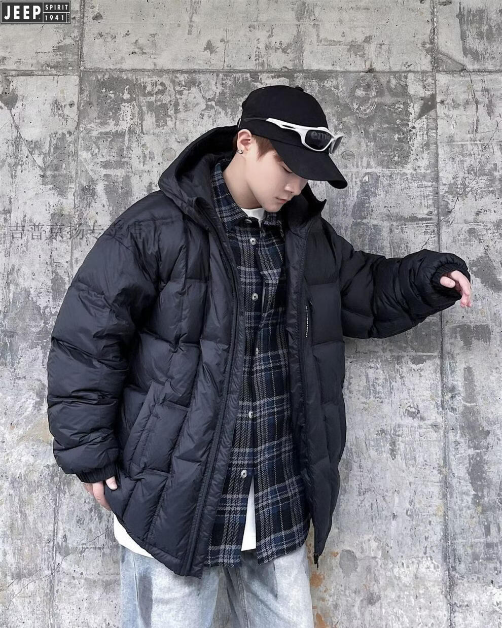 JEEP международный бренд, зимний белый утиный пух с капюшоном, мужская свободная повседневная куртка больших размеров, черная 6XL 250-275Jin Jin, вес 0,5 кг